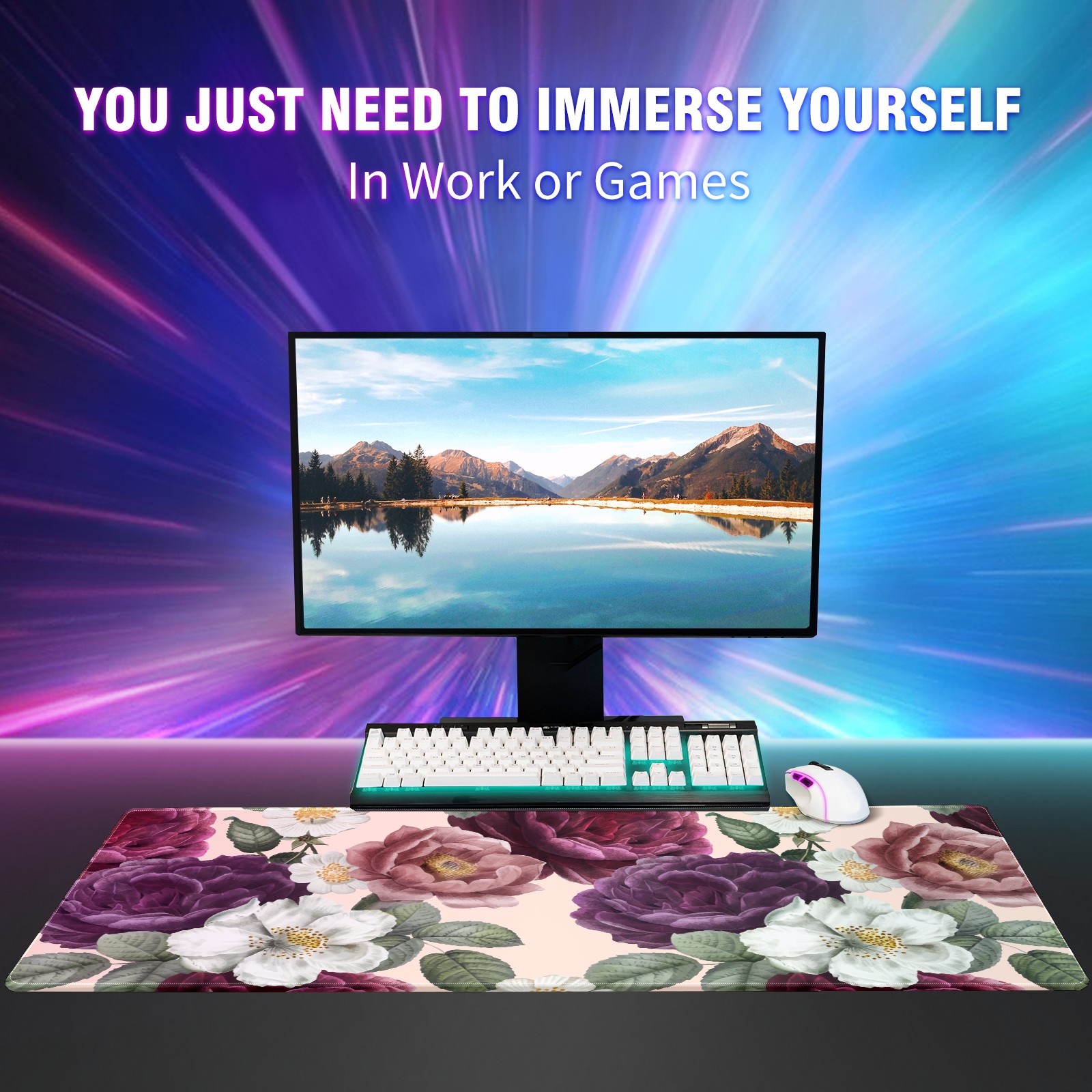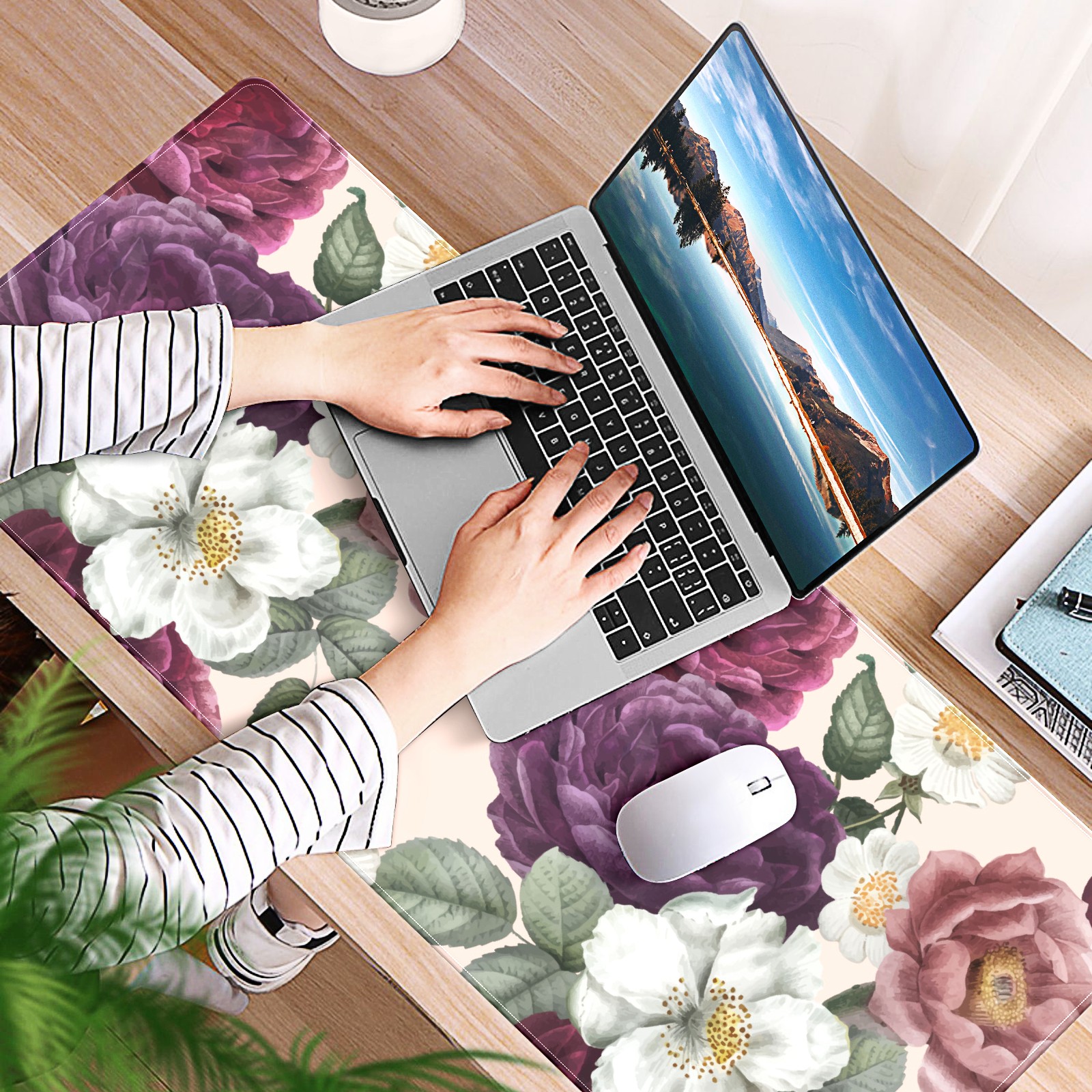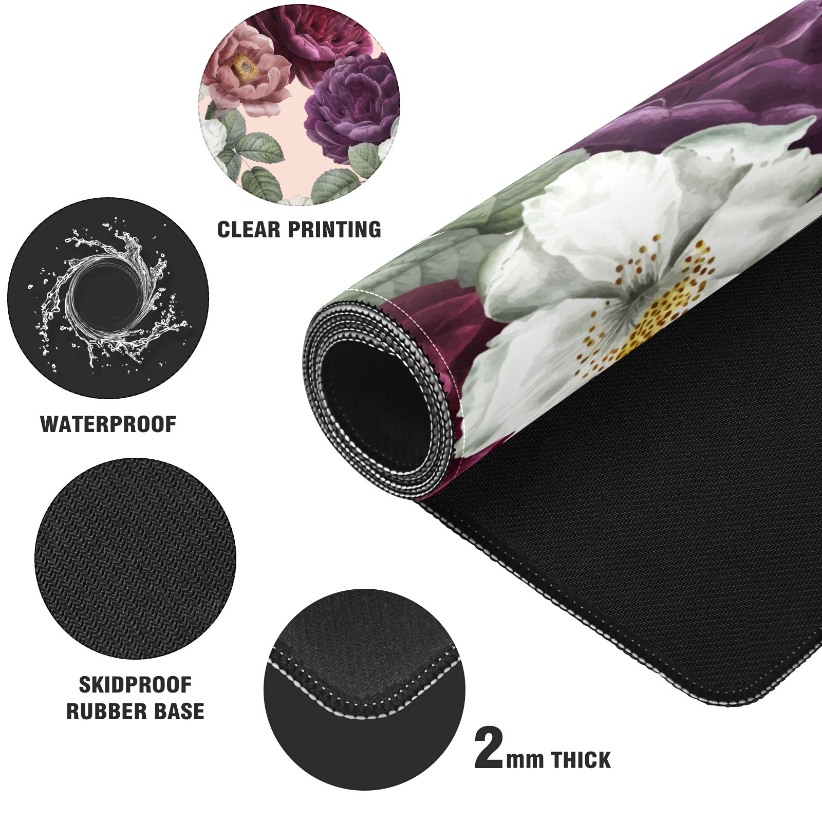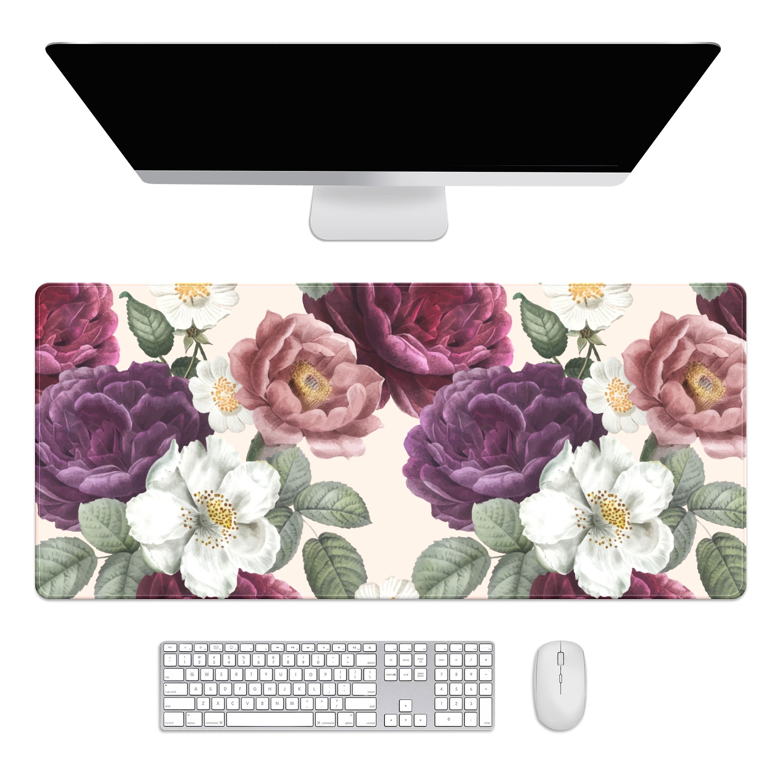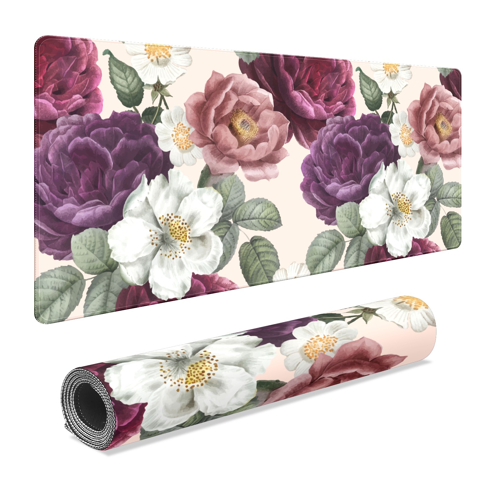 Large Mouse Pad for Desktop, Cute Desk Mat Pad Protector for Work & Gaming, Aesthetic Pretty Anti-Slip Laptop Blotter Cover for Office School Home Supplies, Color Flowers , 35.4inx15.7in