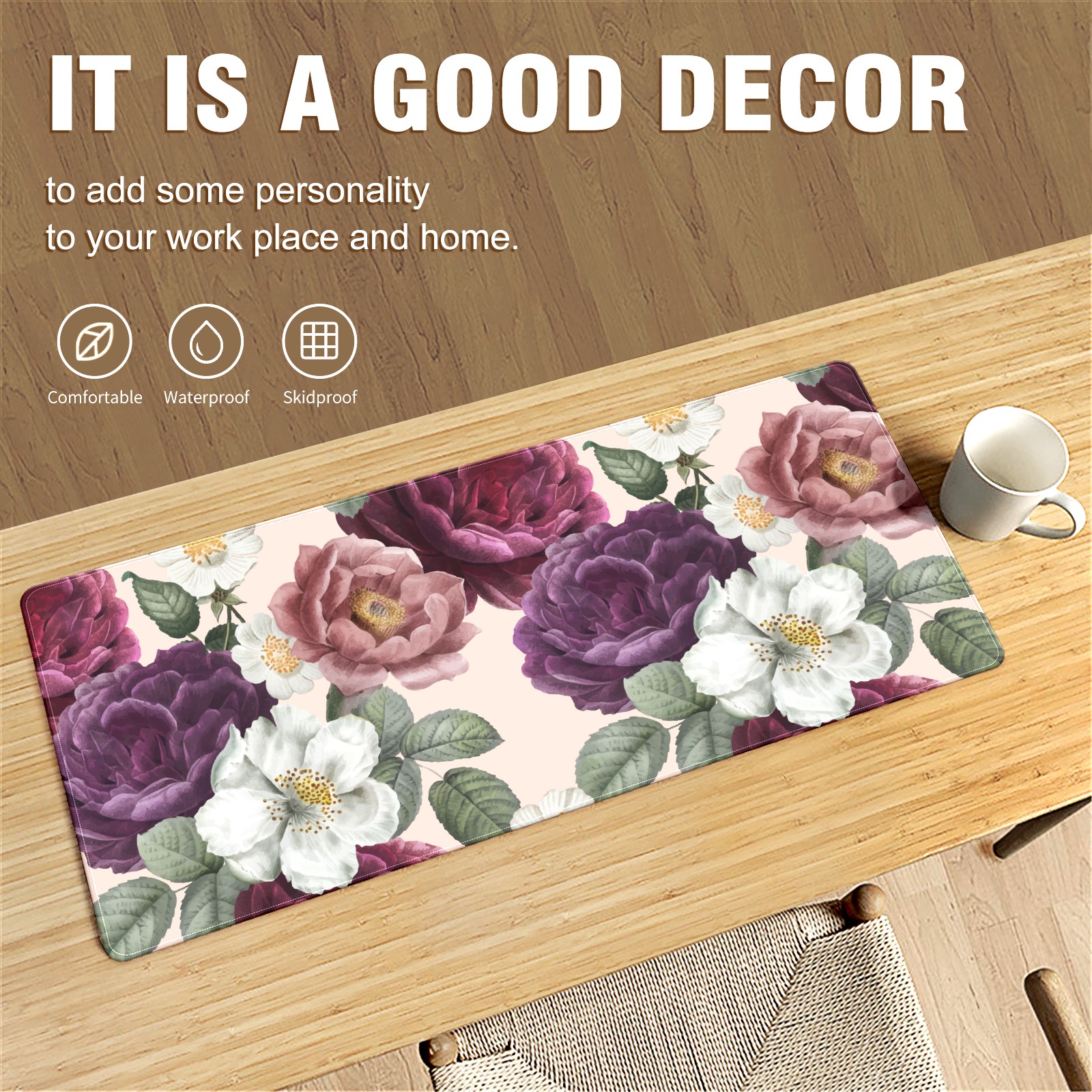 • <p>This 35.4” × 15.7” extended desk mat offers ample space for your keyboard, mouse and essentials, working as a smooth work/writing pad while protecting your desktop from scratches.</p><p>With stylish artistic patterns, it adds personality to your home office, study or gaming setup. The high-density woven surface ensures precise, smooth mouse tracking for work and gaming.</p><p>Featuring an anti-slip natural rubber base for firm grip and stability, the mat is soft, elastic and odorless. Reinforced stitched edges prevent fraying and curling for long-lasting durability.</p>