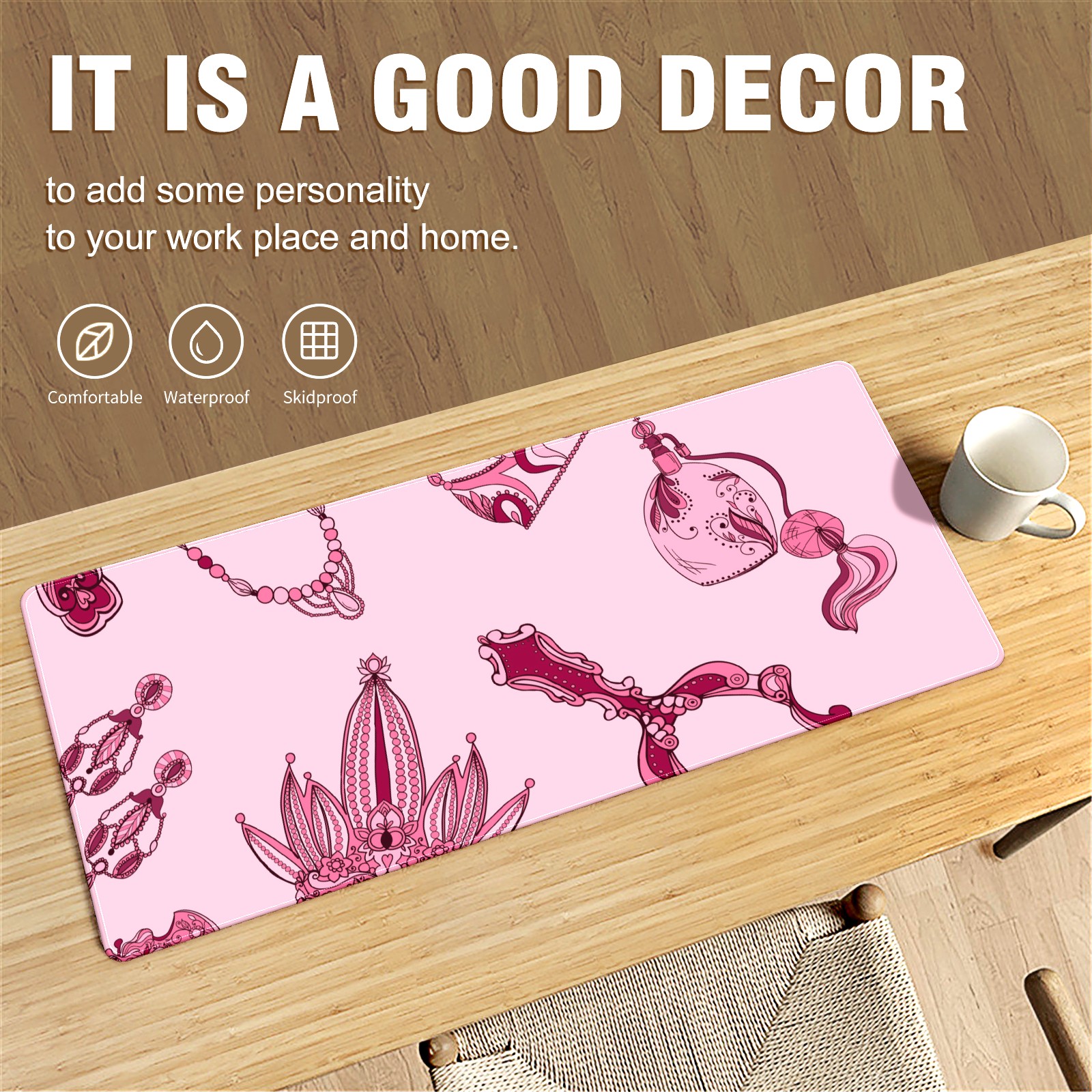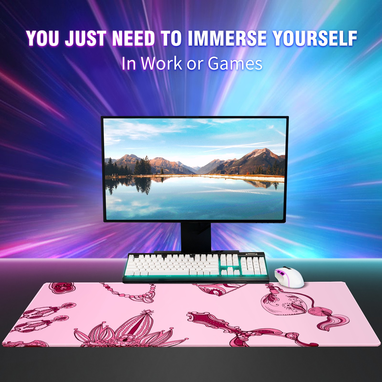 <p>This 35.4” × 15.7” extended desk mat offers ample space for your keyboard, mouse and essentials, working as a smooth work/writing pad while protecting your desktop from scratches.</p><p>With stylish artistic patterns, it adds personality to your home office, study or gaming setup. The high-density woven surface ensures precise, smooth mouse tracking for work and gaming.</p><p>Featuring an anti-slip natural rubber base for firm grip and stability, the mat is soft, elastic and odorless. Reinforced stitched edges prevent fraying and curling for long-lasting durability.</p>