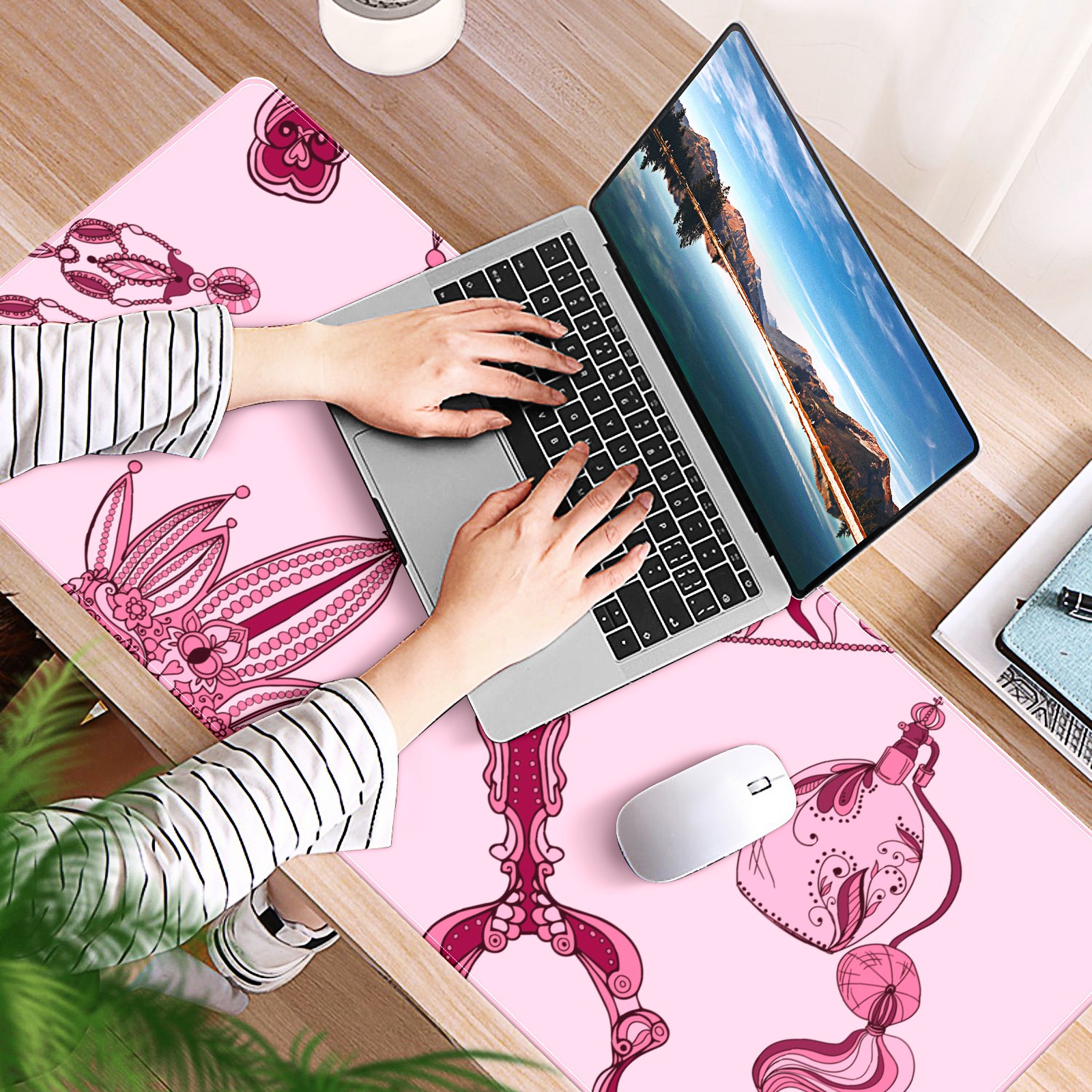 Large Mouse Pad for Desktop, Cute Desk Mat Pad Protector for Work & Gaming, Aesthetic Pretty Anti-Slip Laptop Blotter Cover for Office School Home Supplies, Magic Mirror , 35.4inx15.7in