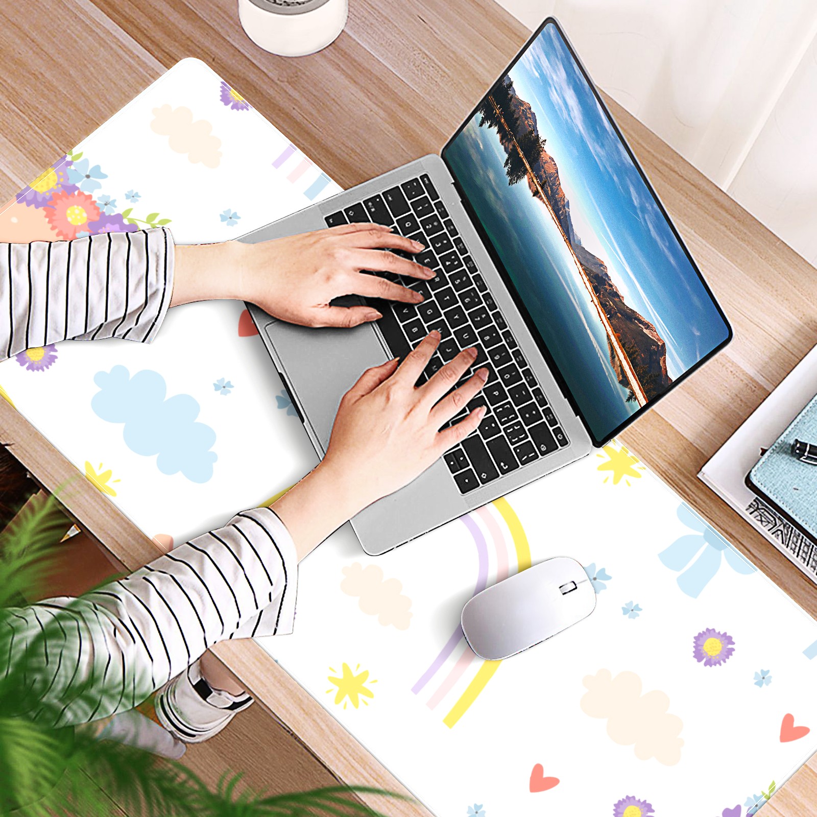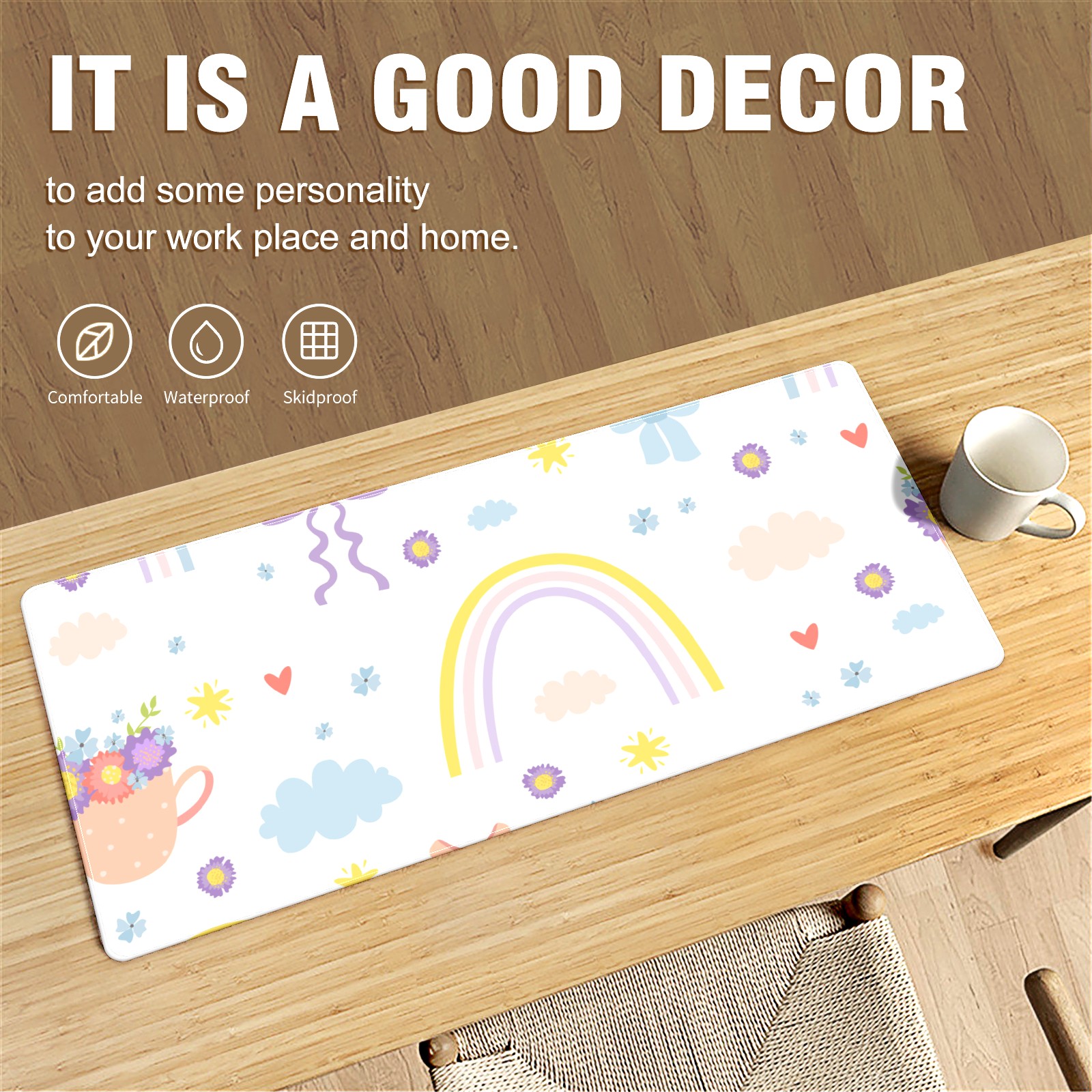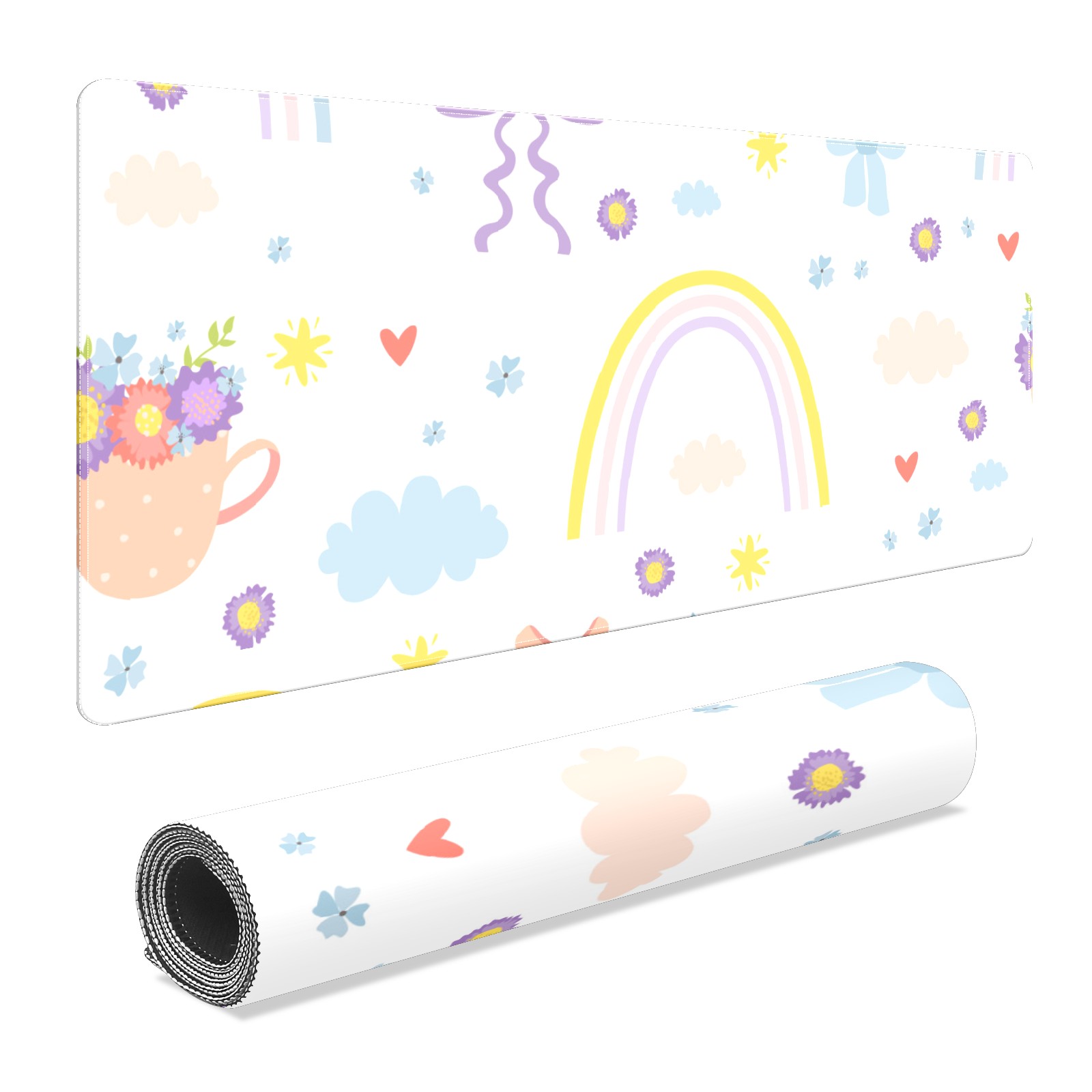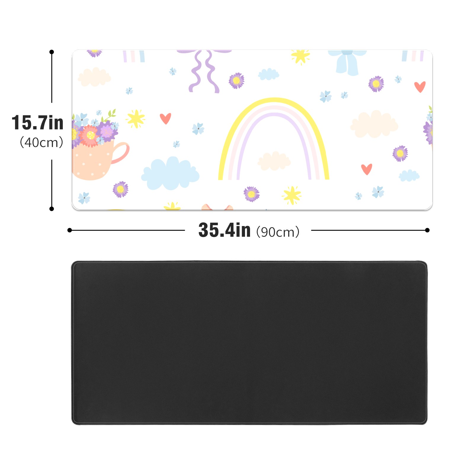 Large Mouse Pad for Desktop, Cute Desk Mat Pad Protector for Work & Gaming, Aesthetic Pretty Anti-Slip Laptop Blotter Cover for Office School Home Supplies, Cartoon Rainbow , 35.4inx15.7in