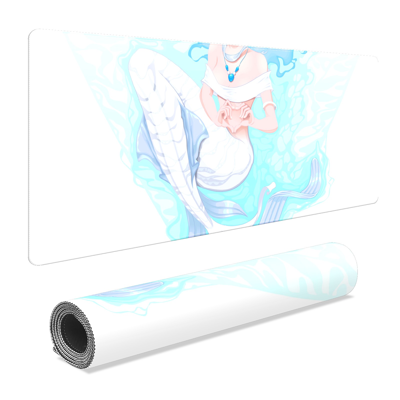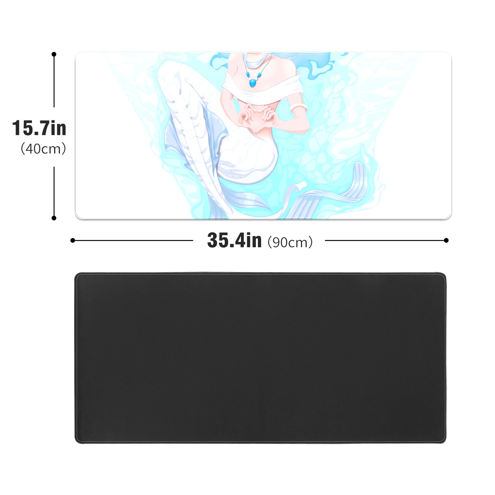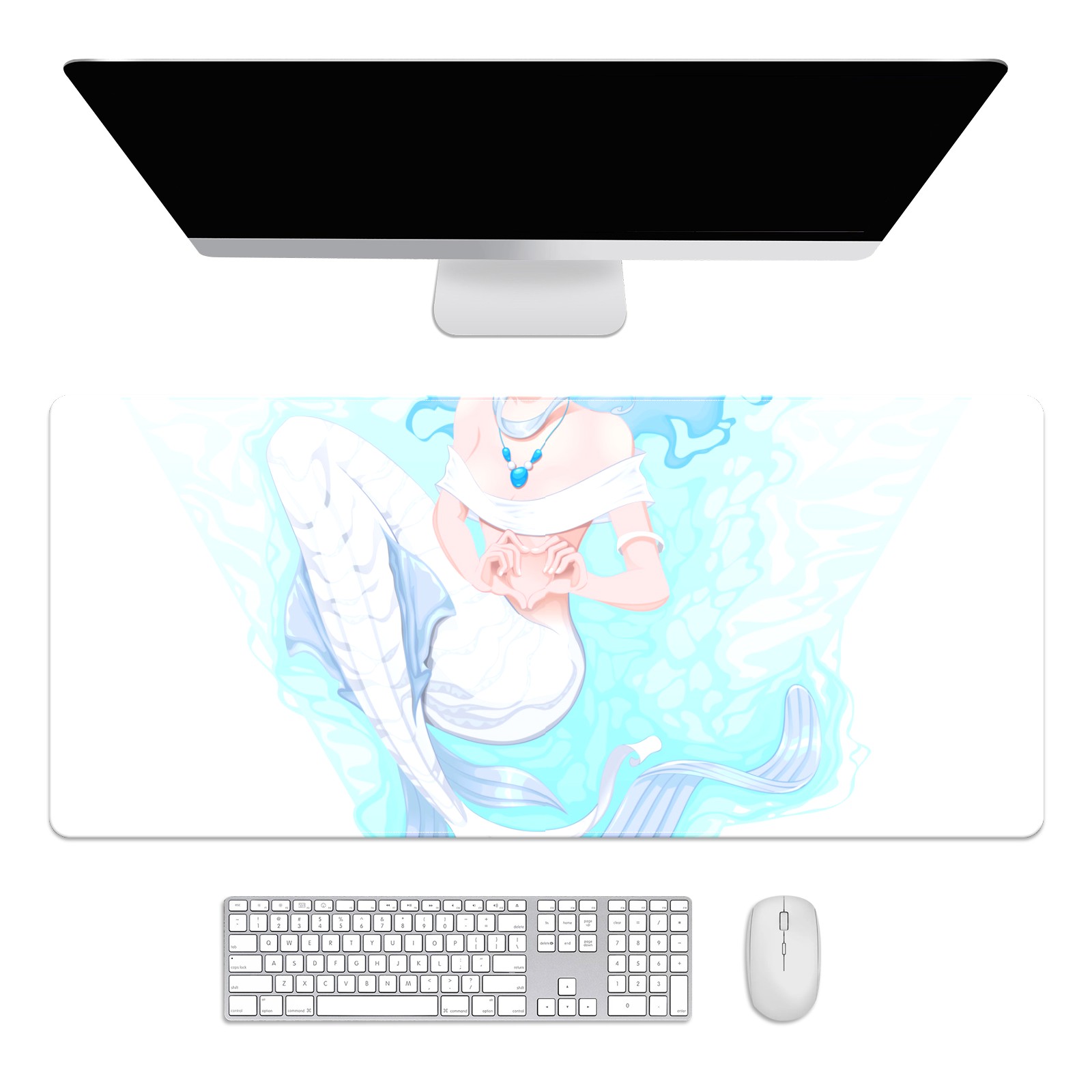 Large Mouse Pad for Desktop, Cute Desk Mat Pad Protector for Work & Gaming, Aesthetic Pretty Anti-Slip Laptop Blotter Cover for Office School Home Supplies, White Mermaid , 35.4inx15.7in