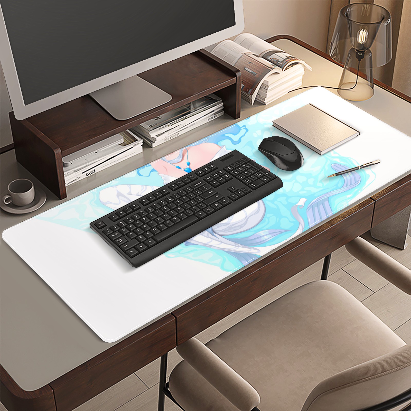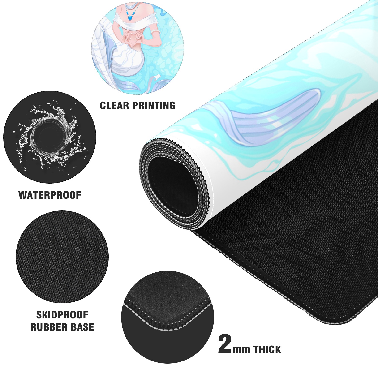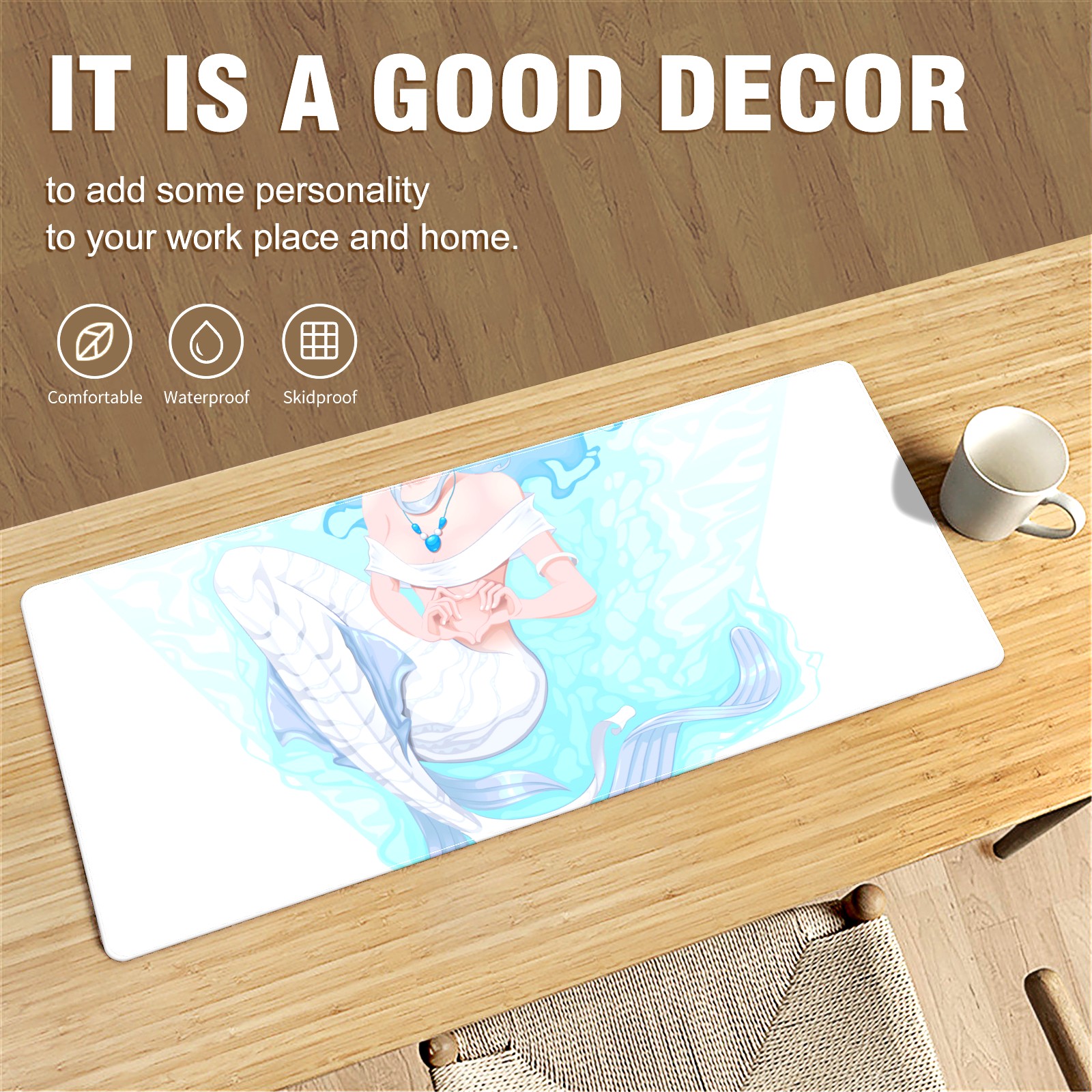 Large Mouse Pad for Desktop, Cute Desk Mat Pad Protector for Work & Gaming, Aesthetic Pretty Anti-Slip Laptop Blotter Cover for Office School Home Supplies, White Mermaid , 35.4inx15.7in