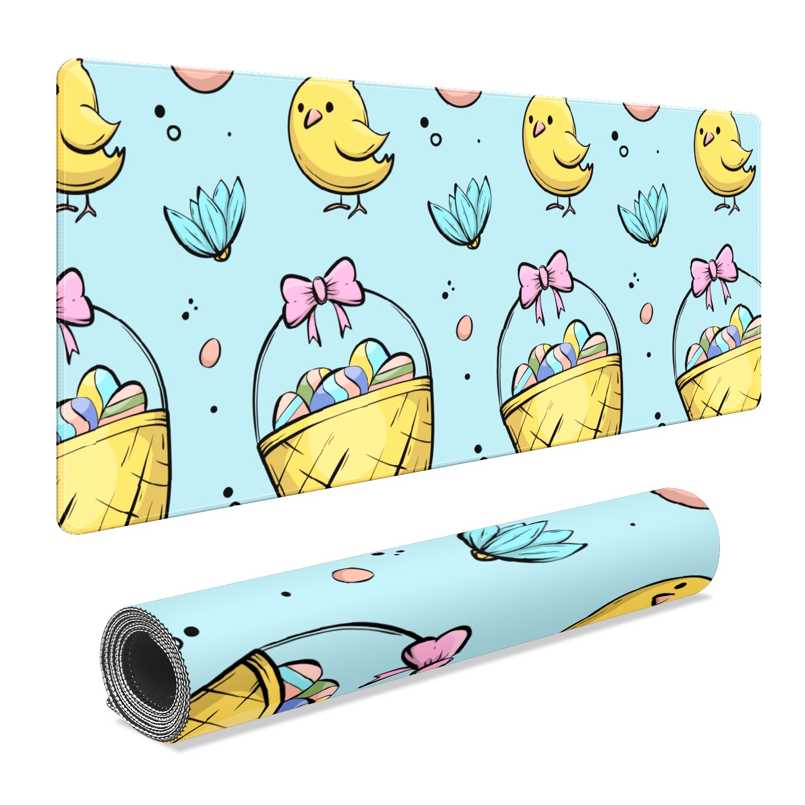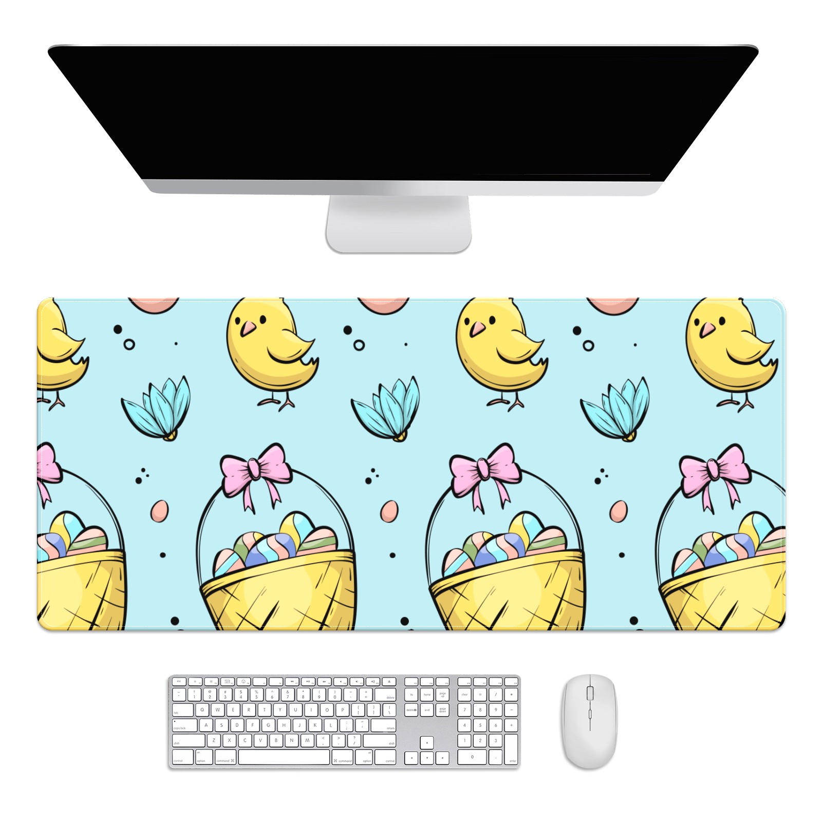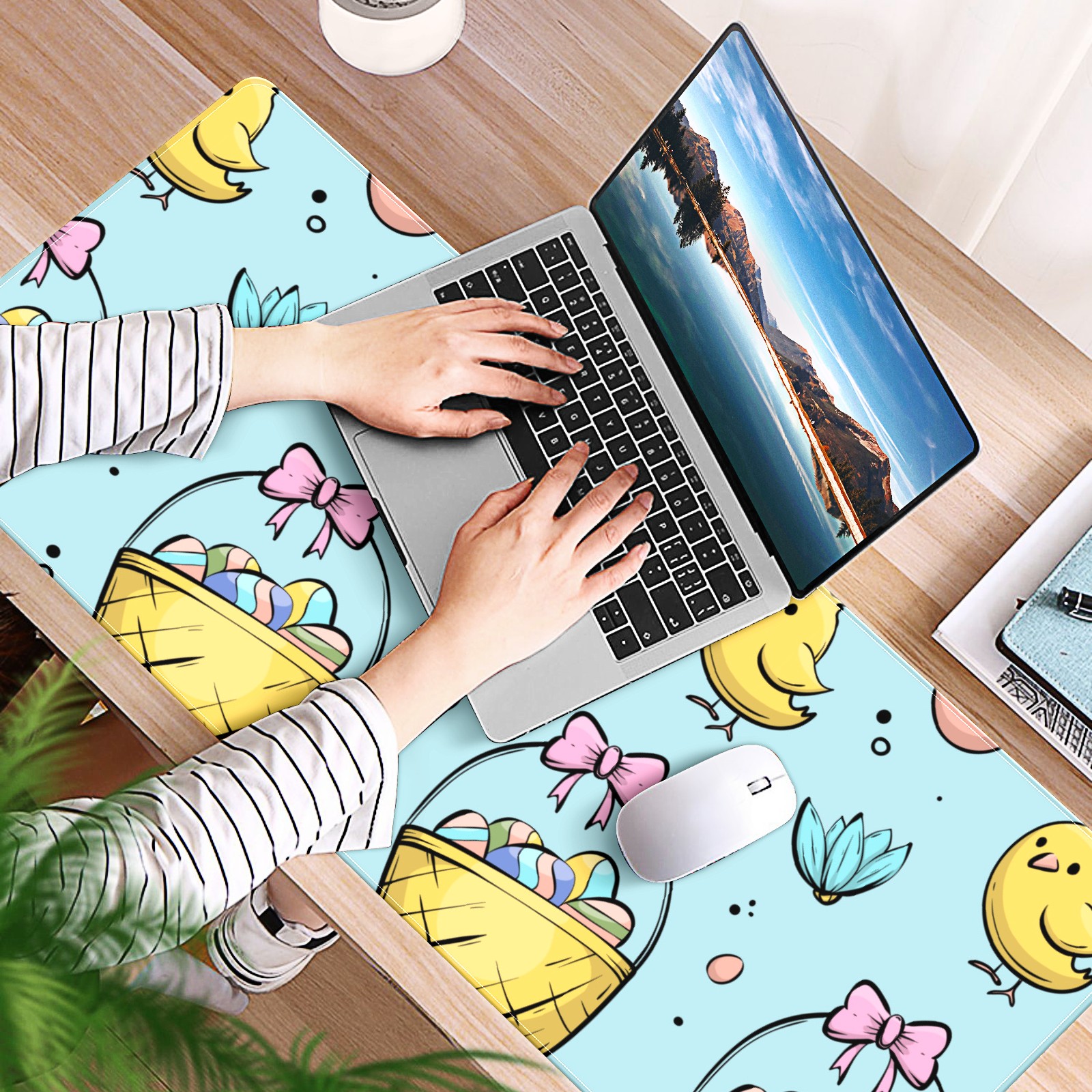 Large Mouse Pad for Desktop, Cute Desk Mat Pad Protector for Work & Gaming, Aesthetic Pretty Anti-Slip Laptop Blotter Cover for Office School Home Supplies, Yellow Chick , 35.4inx15.7in