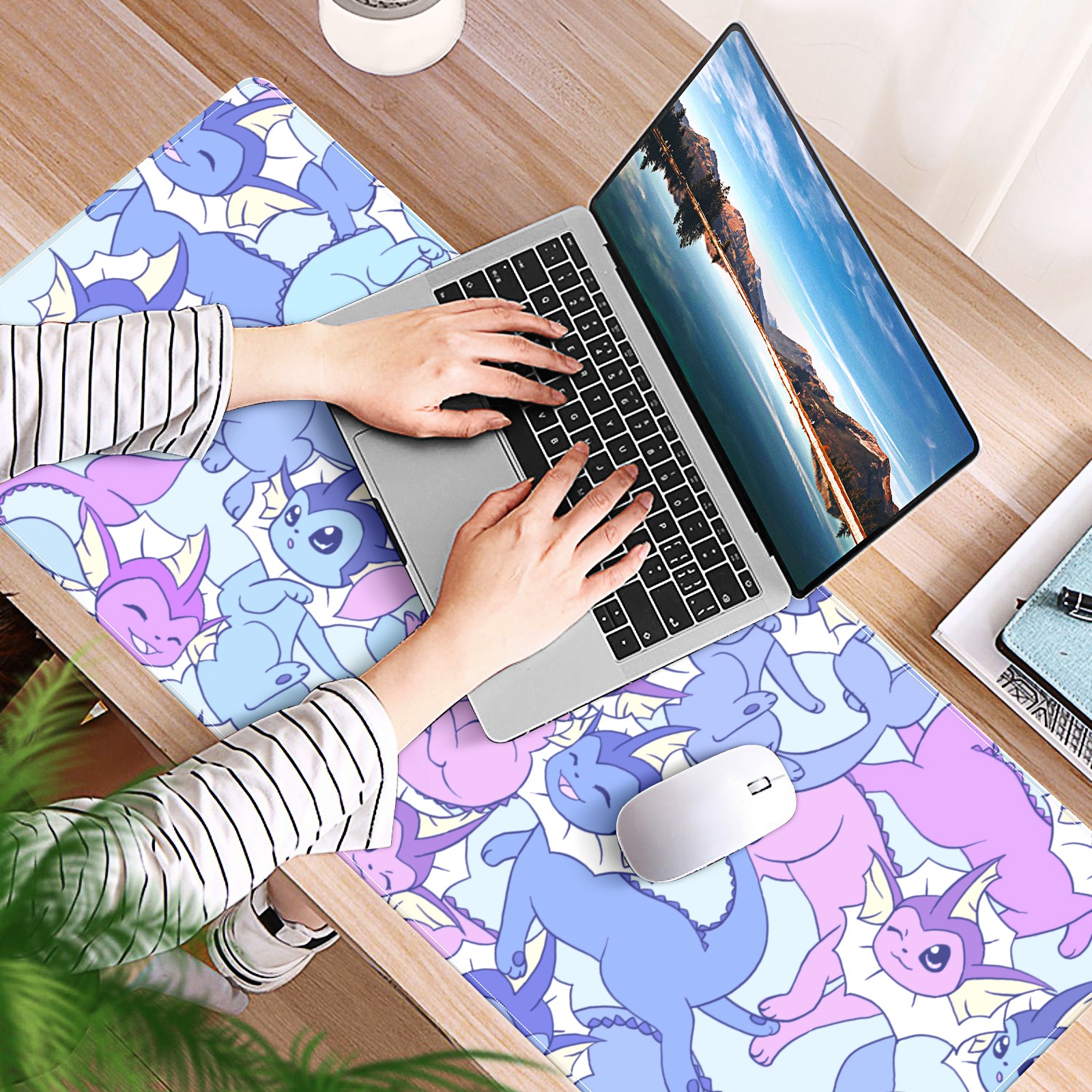 Large Mouse Pad for Desktop, Cute Desk Mat Pad Protector for Work & Gaming, Aesthetic Pretty Anti-Slip Laptop Blotter Cover for Office School Home Supplies, Cartoon Dinosaur , 35.4inx15.7in