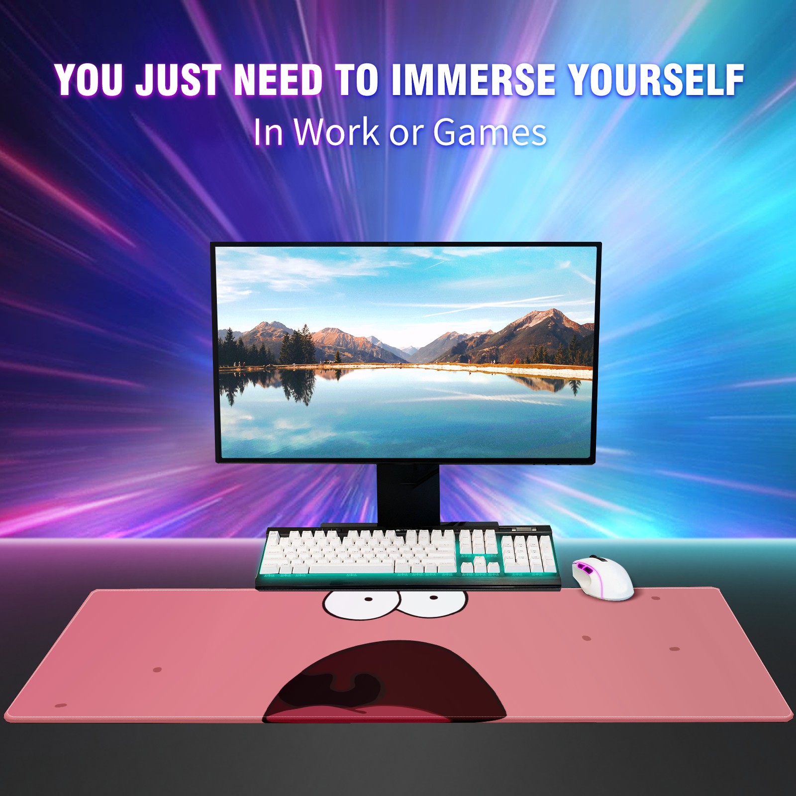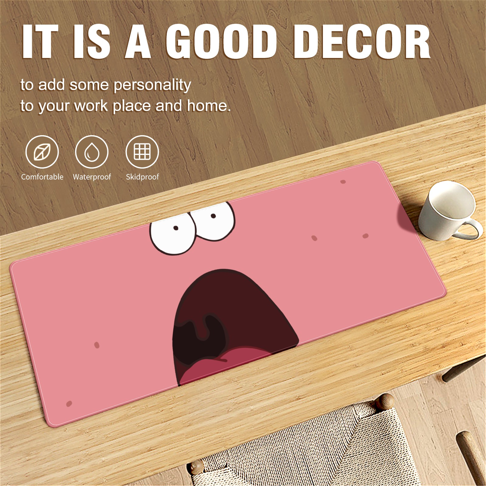 Large Mouse Pad for Desktop, Cute Desk Mat Pad Protector for Work & Gaming, Aesthetic Pretty Anti-Slip Laptop Blotter Cover for Office School Home Supplies, Surprised Face , 35.4inx15.7in