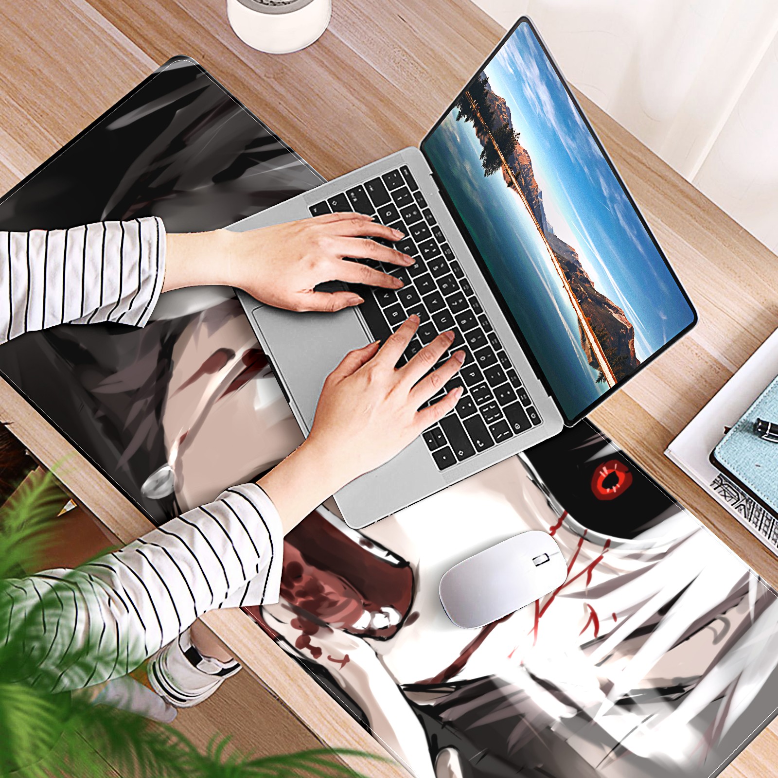 Large Mouse Pad for Desktop, Cute Desk Mat Pad Protector for Work & Gaming, Aesthetic Pretty Anti-Slip Laptop Blotter Cover for Office School Home Supplies, Tearful Boy , 35.4inx15.7in