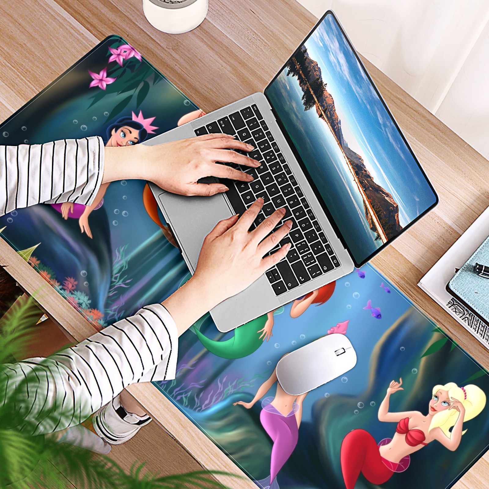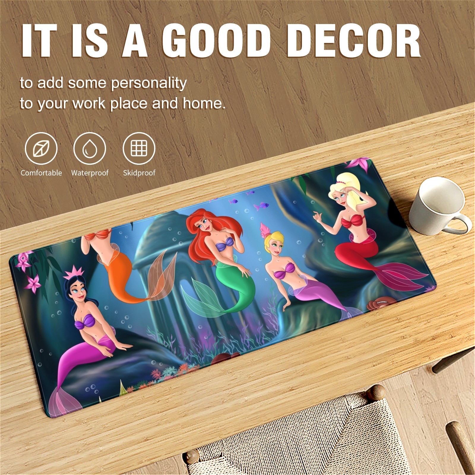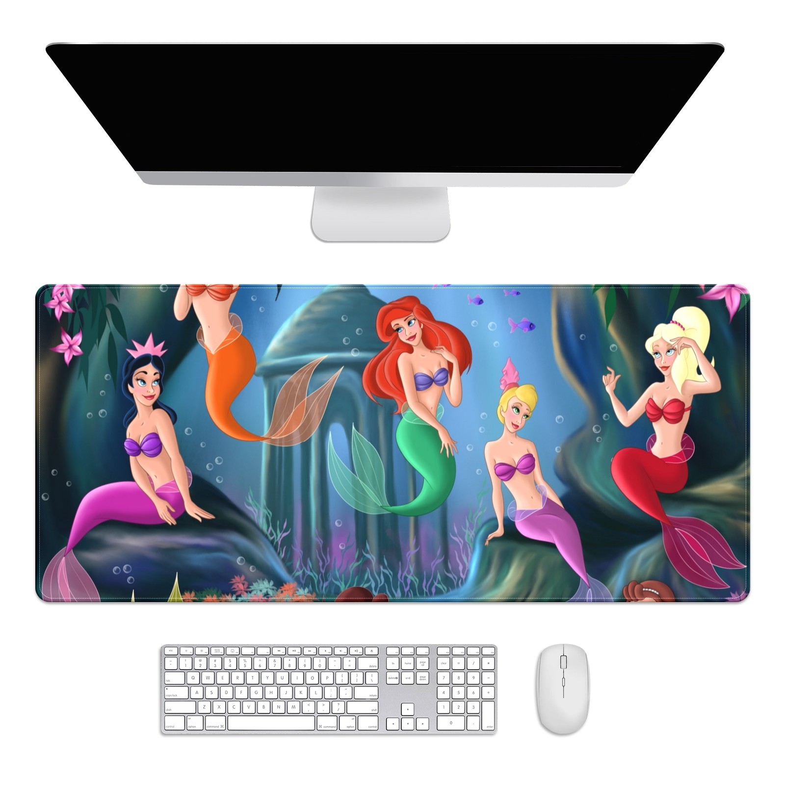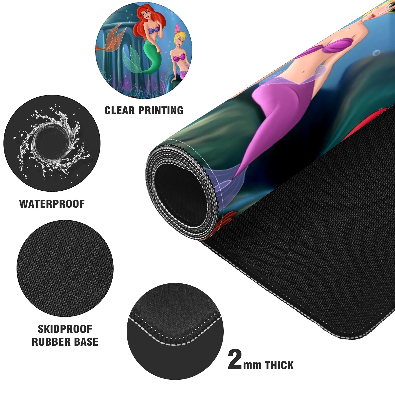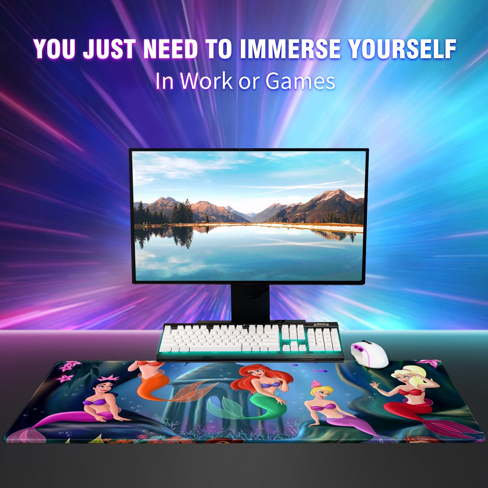 Large Mouse Pad for Desktop, Cute Desk Mat Pad Protector for Work & Gaming, Aesthetic Pretty Anti-Slip Laptop Blotter Cover for Office School Home Supplies, Sea Mermaid , 35.4inx15.7in