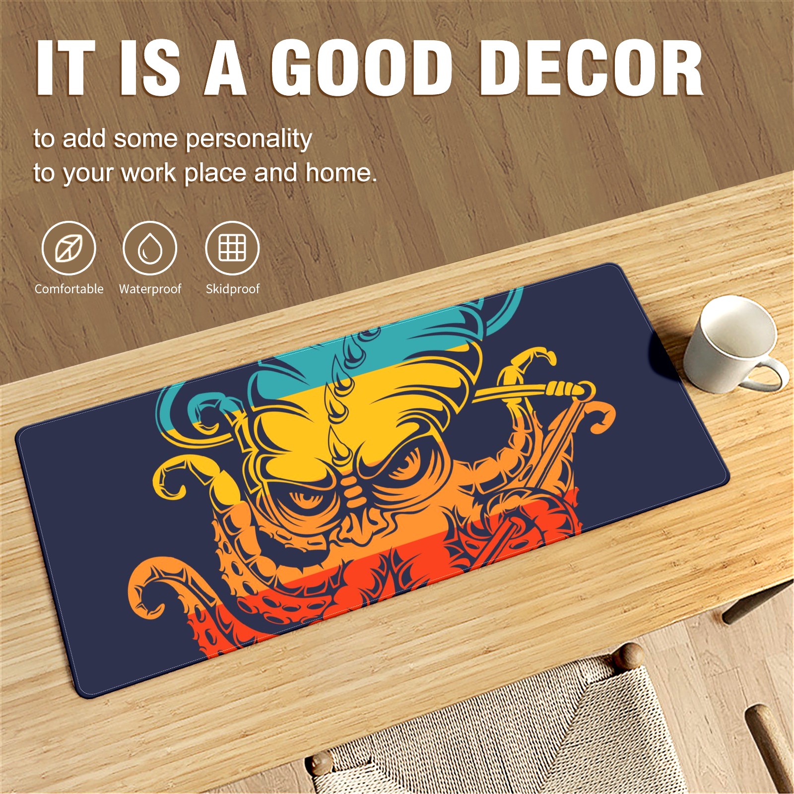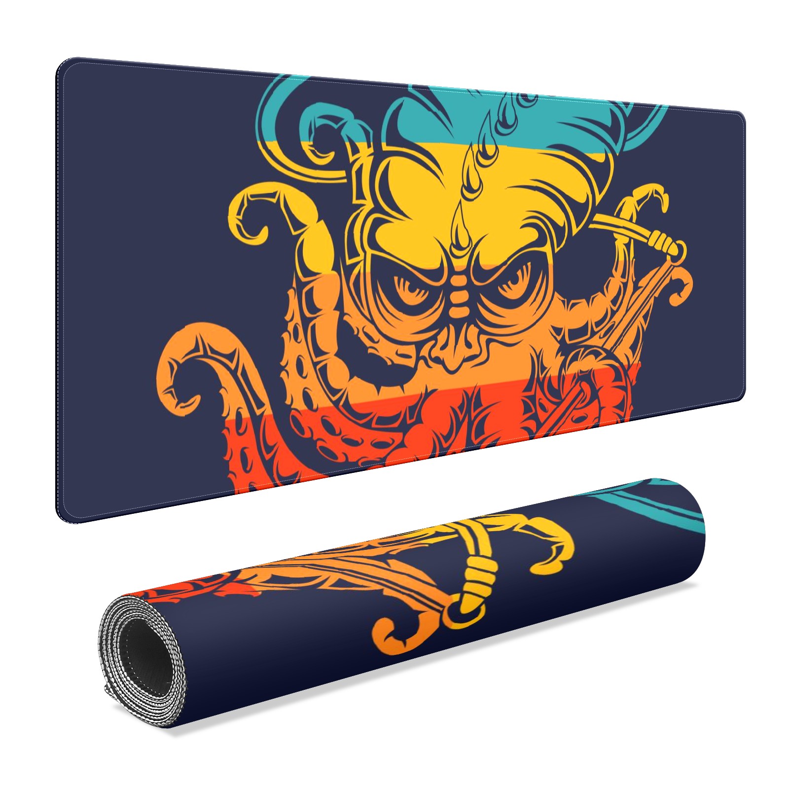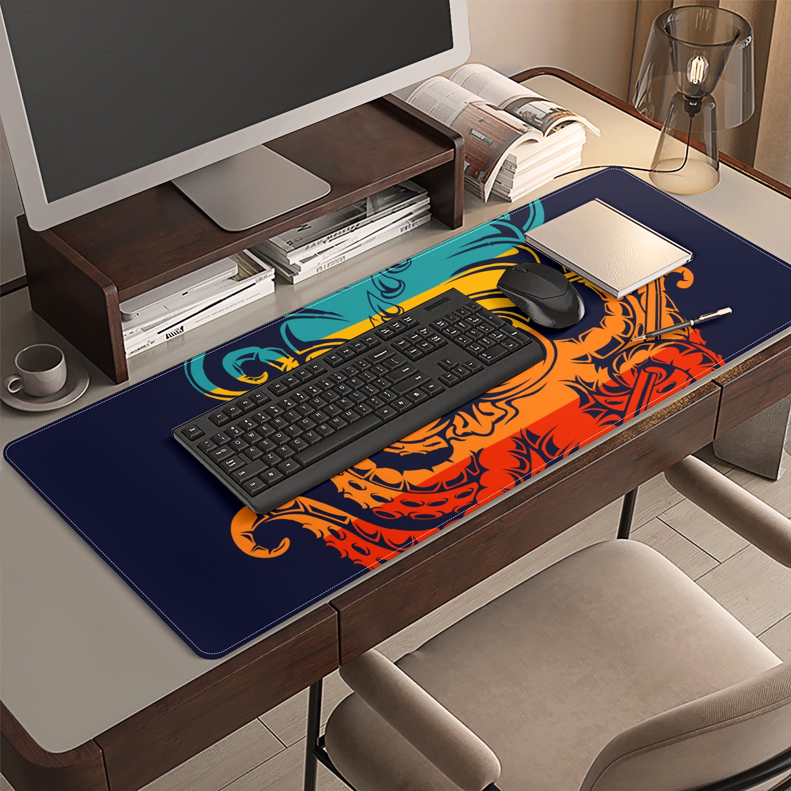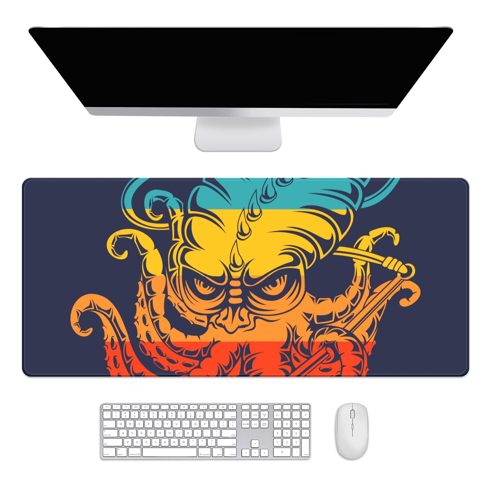 Large Mouse Pad for Desktop, Cute Desk Mat Pad Protector for Work & Gaming, Aesthetic Pretty Anti-Slip Laptop Blotter Cover for Office School Home Supplies, Monster Kraken Colorful , 35.4inx15.7in