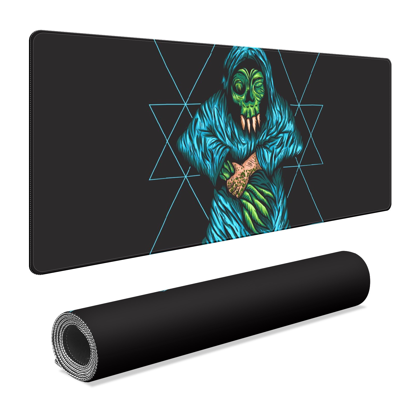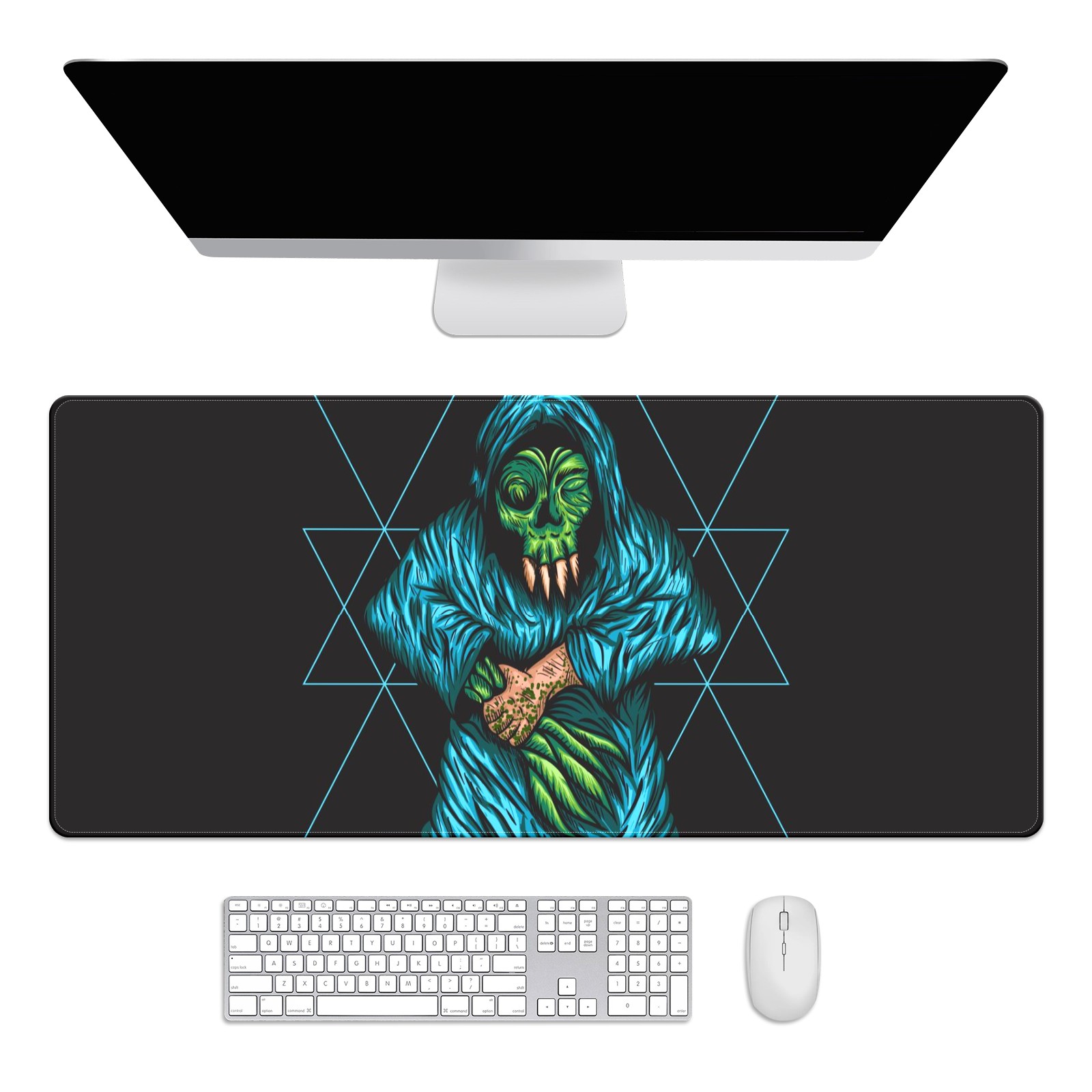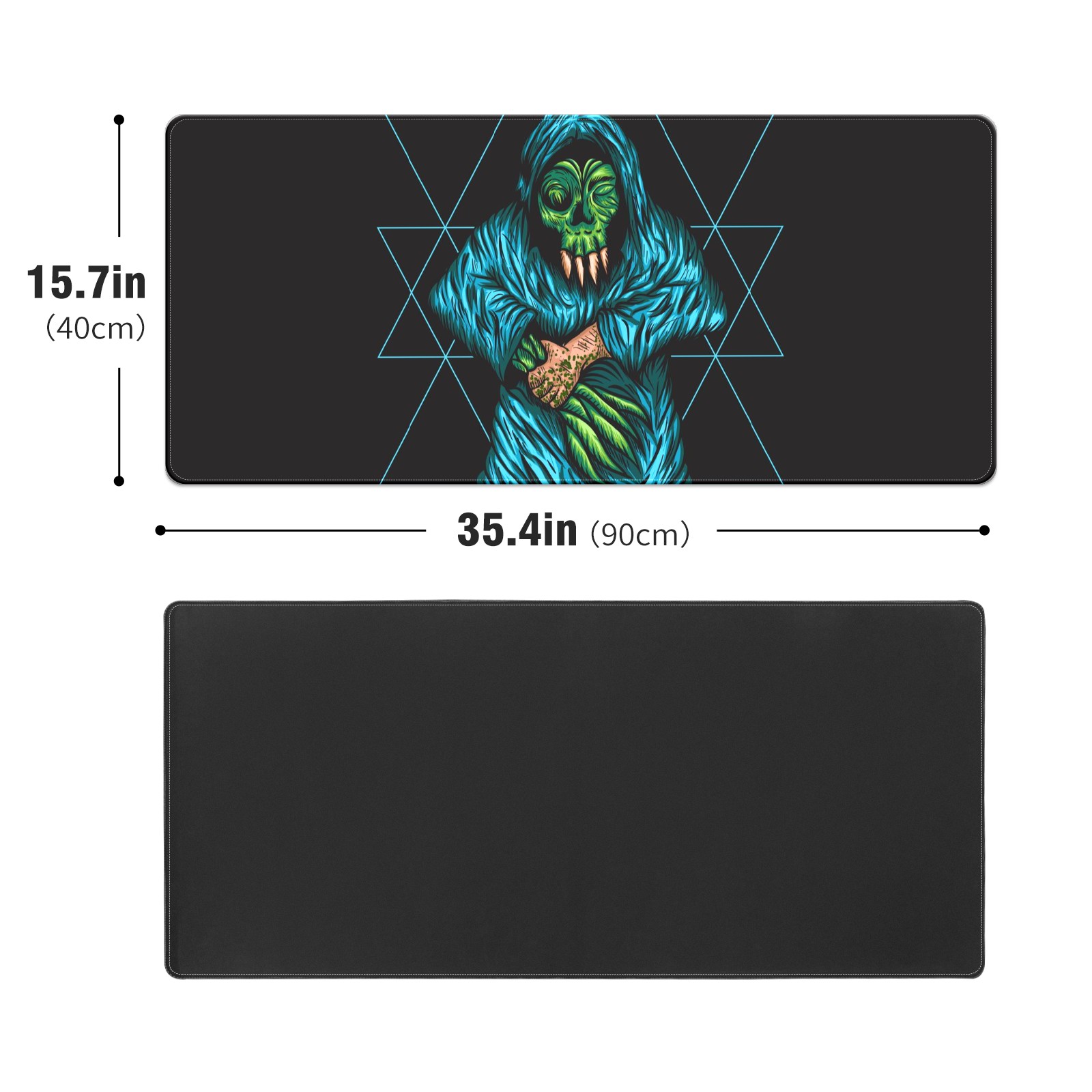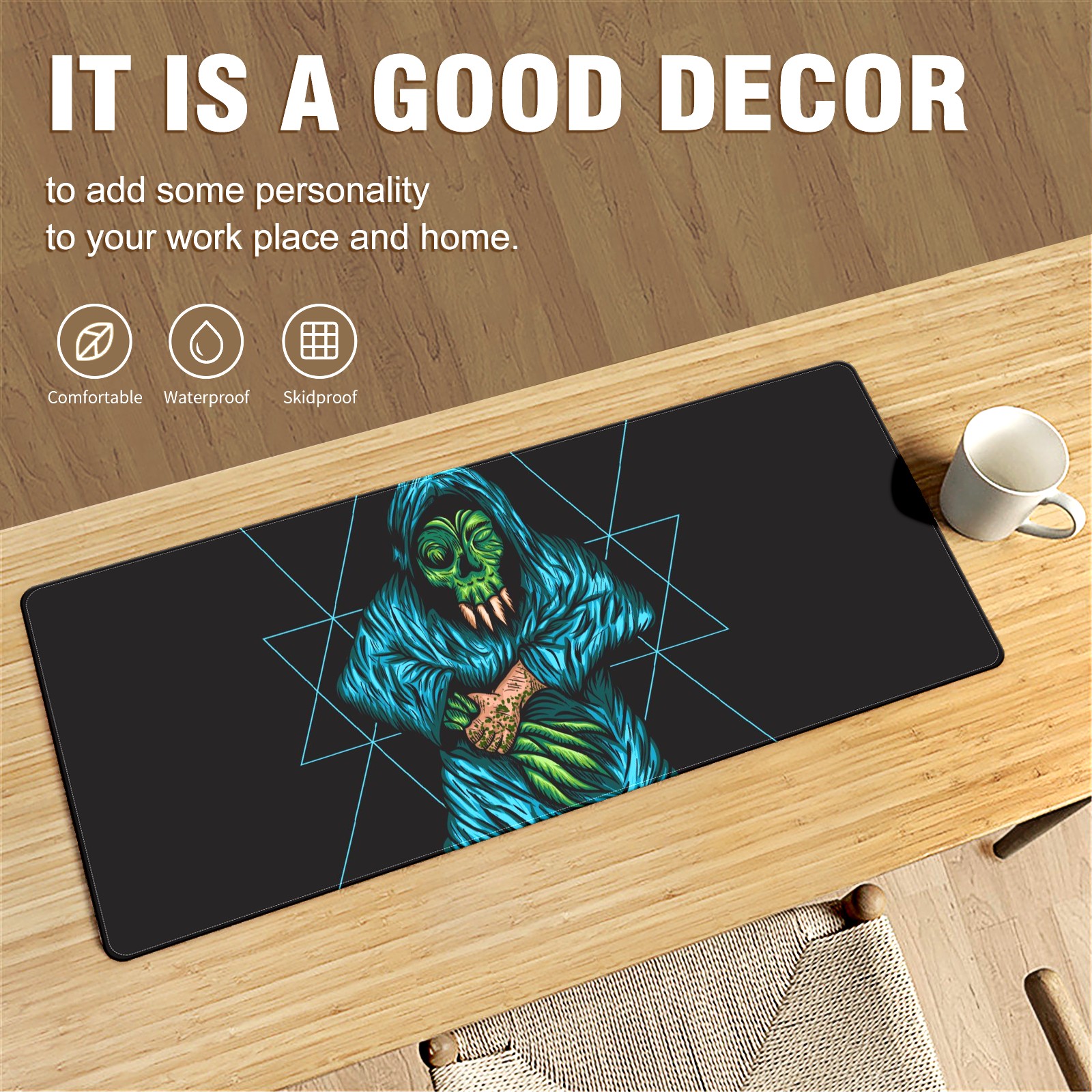 Large Mouse Pad for Desktop, Cute Desk Mat Pad Protector for Work & Gaming, Aesthetic Pretty Anti-Slip Laptop Blotter Cover for Office School Home Supplies, Human Monster Wood , 35.4inx15.7in