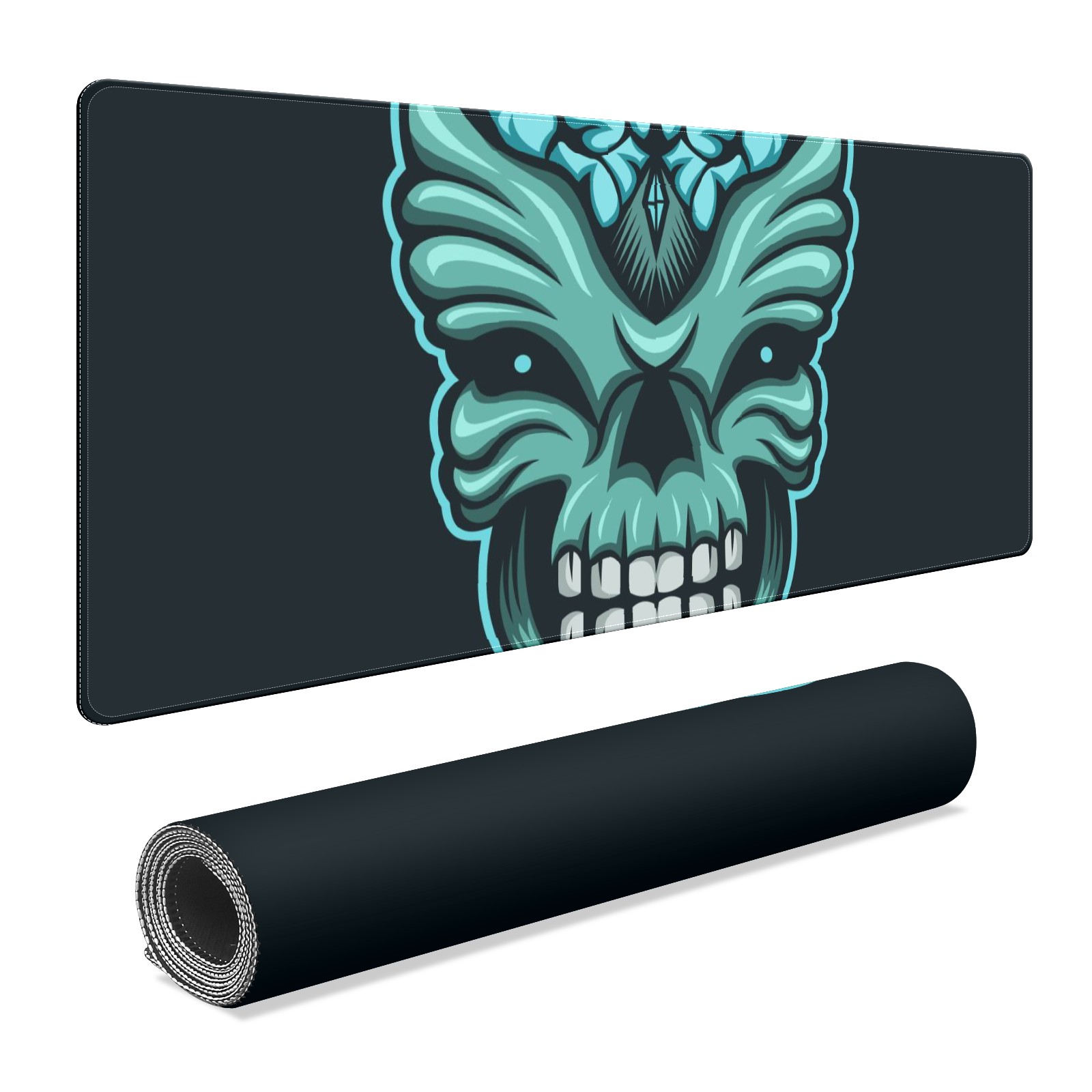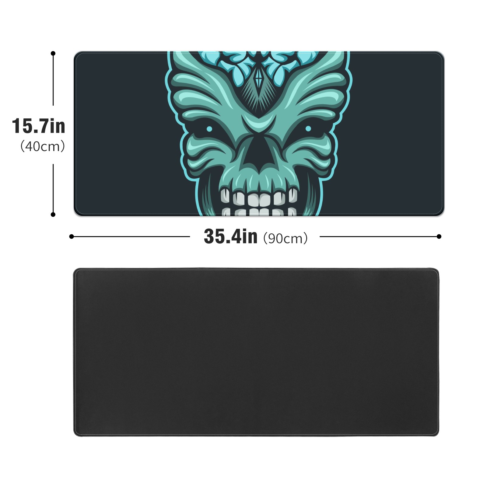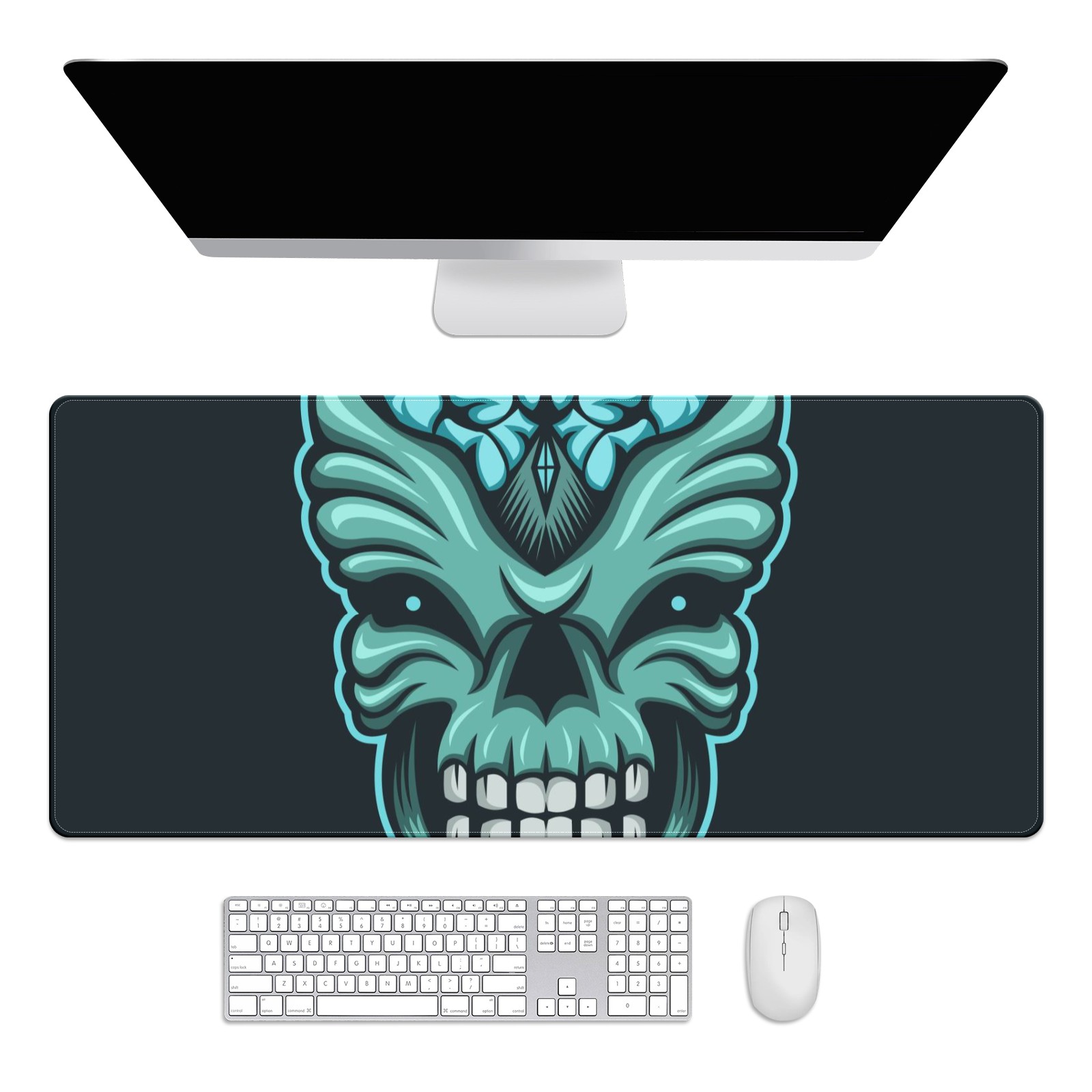 Large Mouse Pad for Desktop, Cute Desk Mat Pad Protector for Work & Gaming, Aesthetic Pretty Anti-Slip Laptop Blotter Cover for Office School Home Supplies, Monster Alien Skull , 35.4inx15.7in