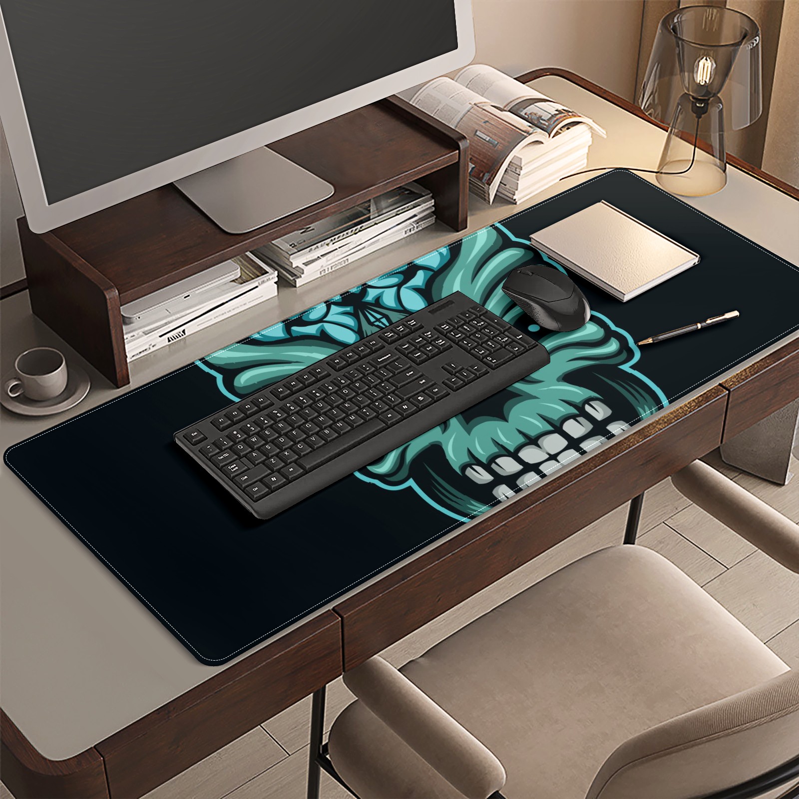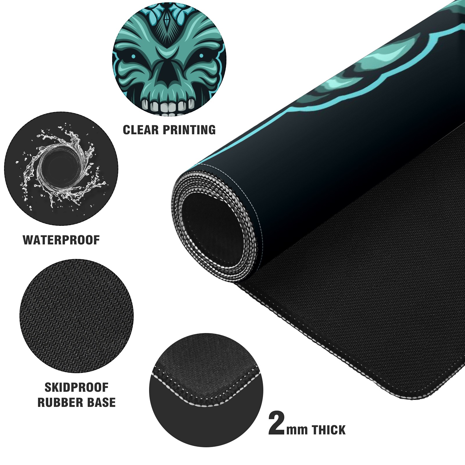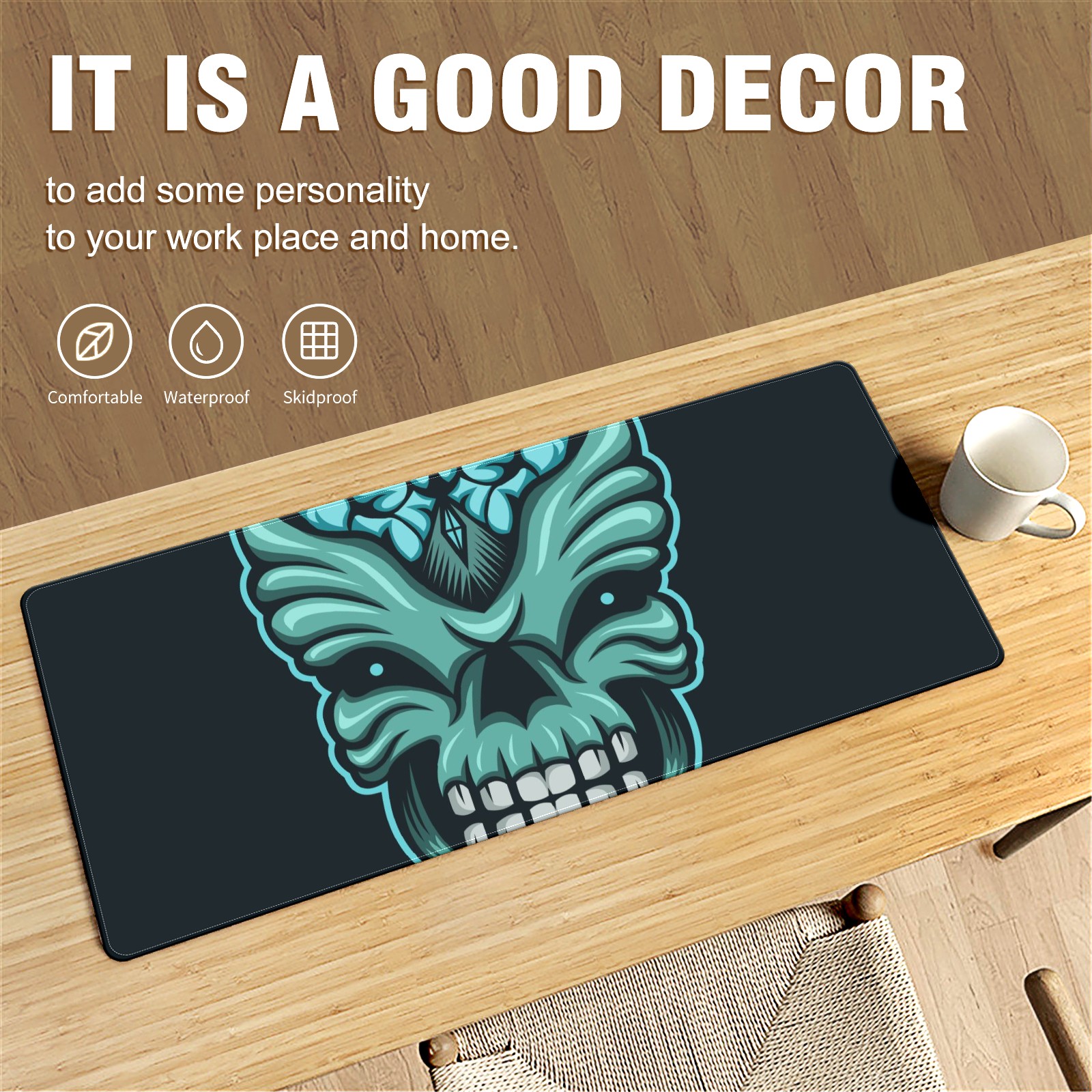 Large Mouse Pad for Desktop, Cute Desk Mat Pad Protector for Work & Gaming, Aesthetic Pretty Anti-Slip Laptop Blotter Cover for Office School Home Supplies, Monster Alien Skull , 35.4inx15.7in