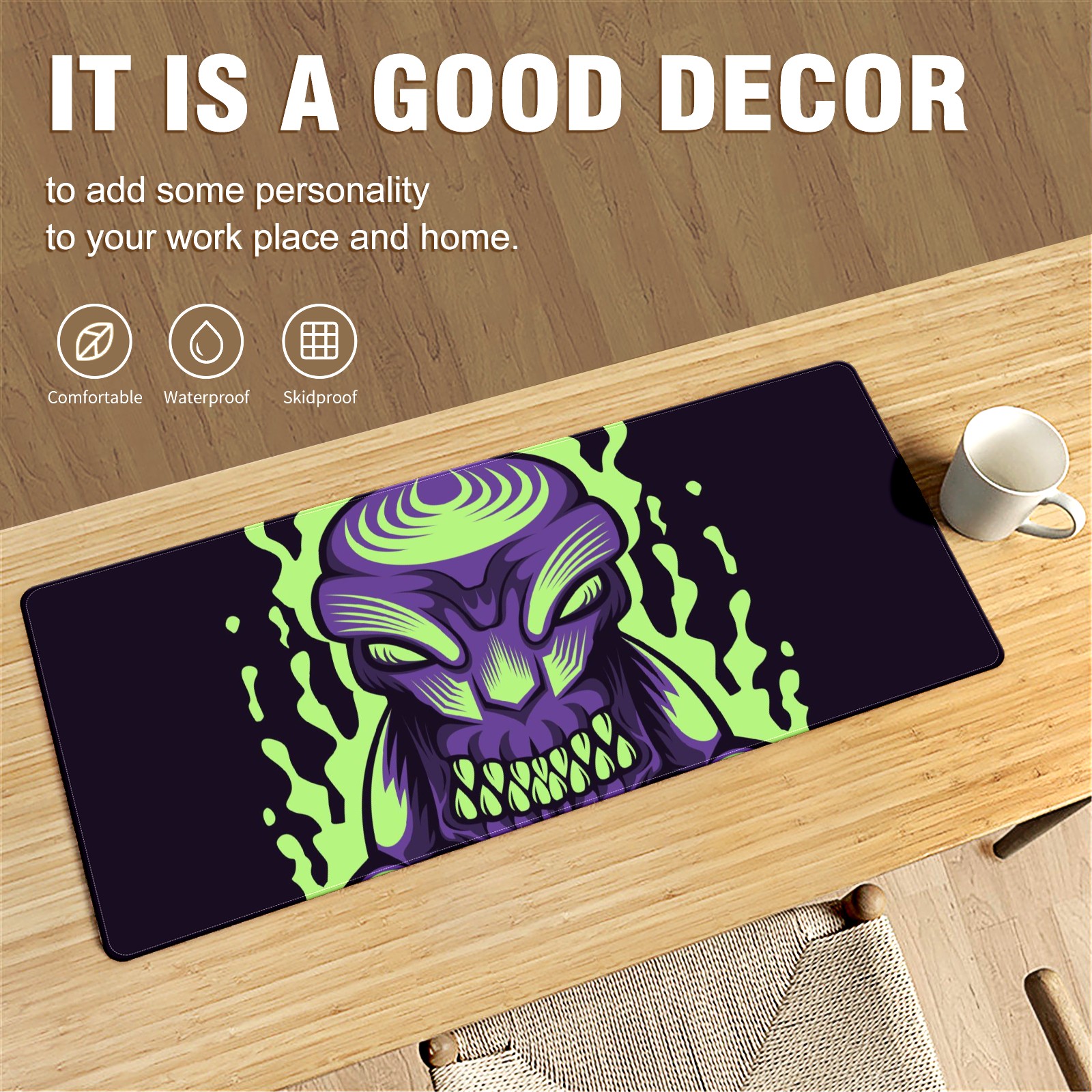 • <p>This 35.4” × 15.7” extended desk mat offers ample space for your keyboard, mouse and essentials, working as a smooth work/writing pad while protecting your desktop from scratches.</p><p>With stylish artistic patterns, it adds personality to your home office, study or gaming setup. The high-density woven surface ensures precise, smooth mouse tracking for work and gaming.</p><p>Featuring an anti-slip natural rubber base for firm grip and stability, the mat is soft, elastic and odorless. Reinforced stitched edges prevent fraying and curling for long-lasting durability.</p>