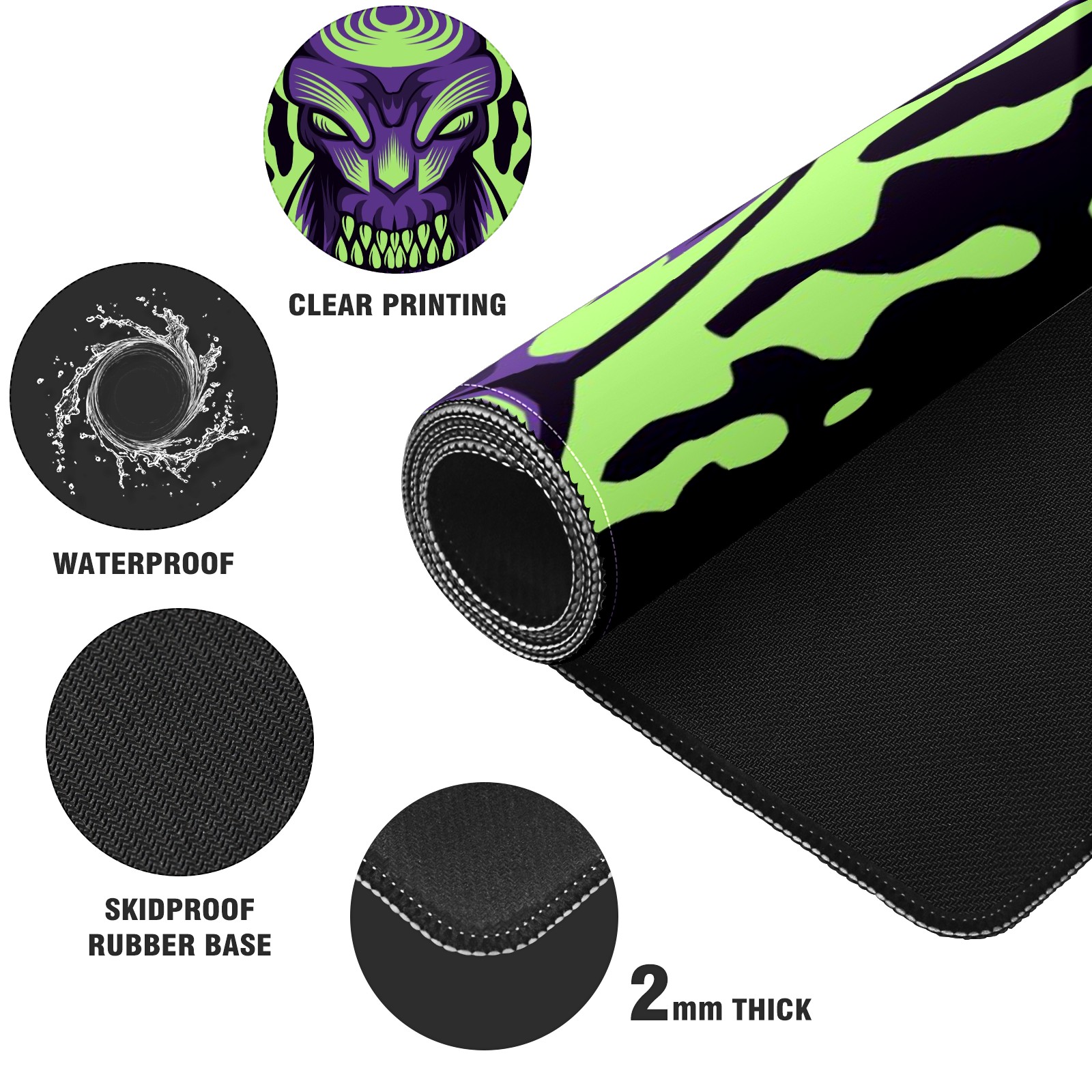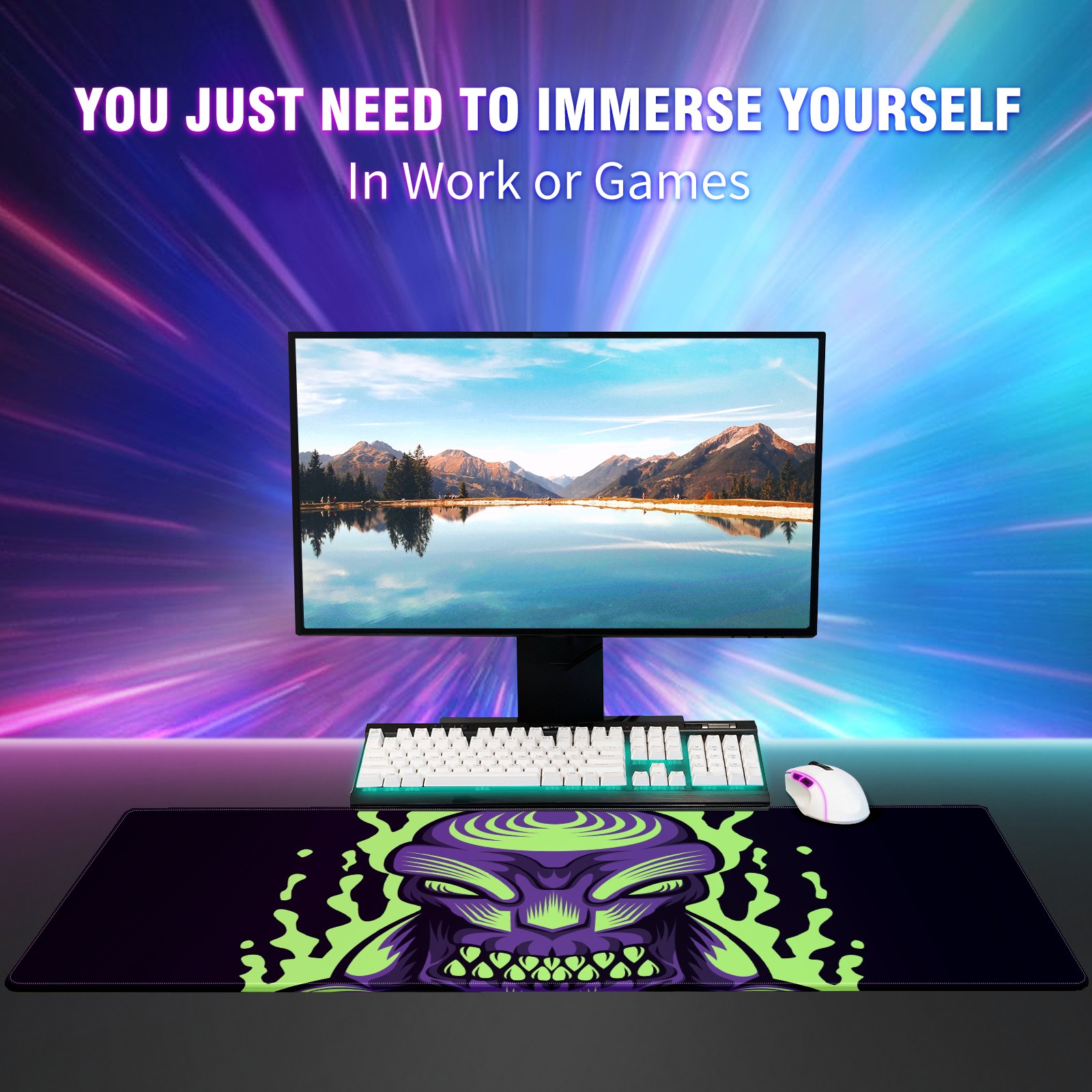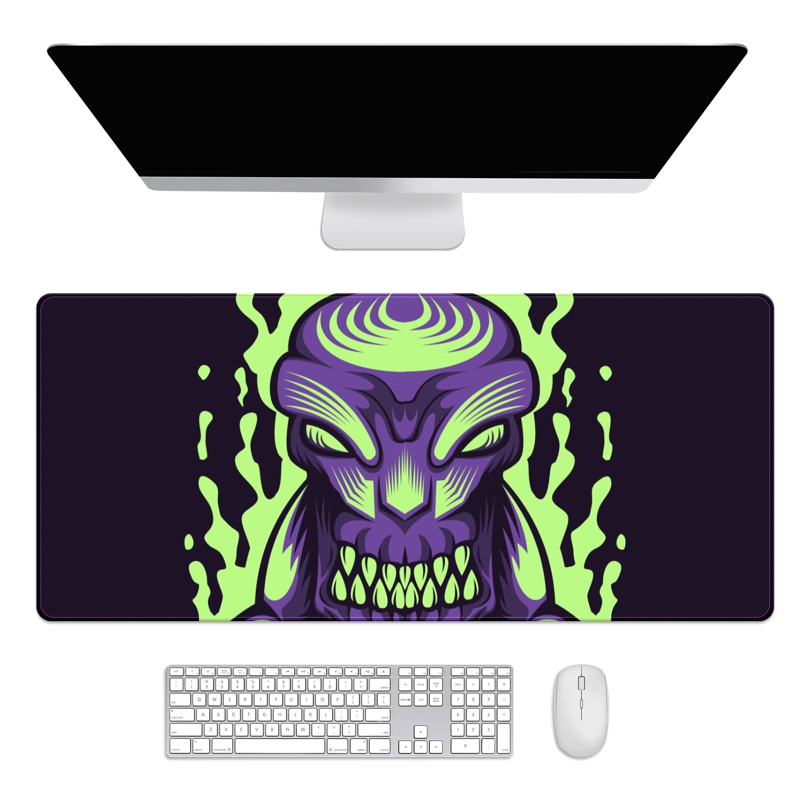 Large Mouse Pad for Desktop, Cute Desk Mat Pad Protector for Work & Gaming, Aesthetic Pretty Anti-Slip Laptop Blotter Cover for Office School Home Supplies, Monster Purple , 35.4inx15.7in