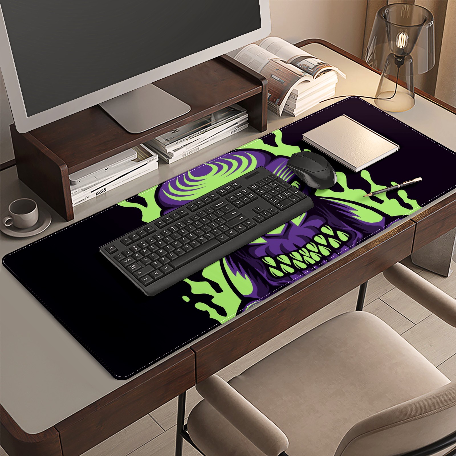 <p>This 35.4” × 15.7” extended desk mat offers ample space for your keyboard, mouse and essentials, working as a smooth work/writing pad while protecting your desktop from scratches.</p><p>With stylish artistic patterns, it adds personality to your home office, study or gaming setup. The high-density woven surface ensures precise, smooth mouse tracking for work and gaming.</p><p>Featuring an anti-slip natural rubber base for firm grip and stability, the mat is soft, elastic and odorless. Reinforced stitched edges prevent fraying and curling for long-lasting durability.</p>