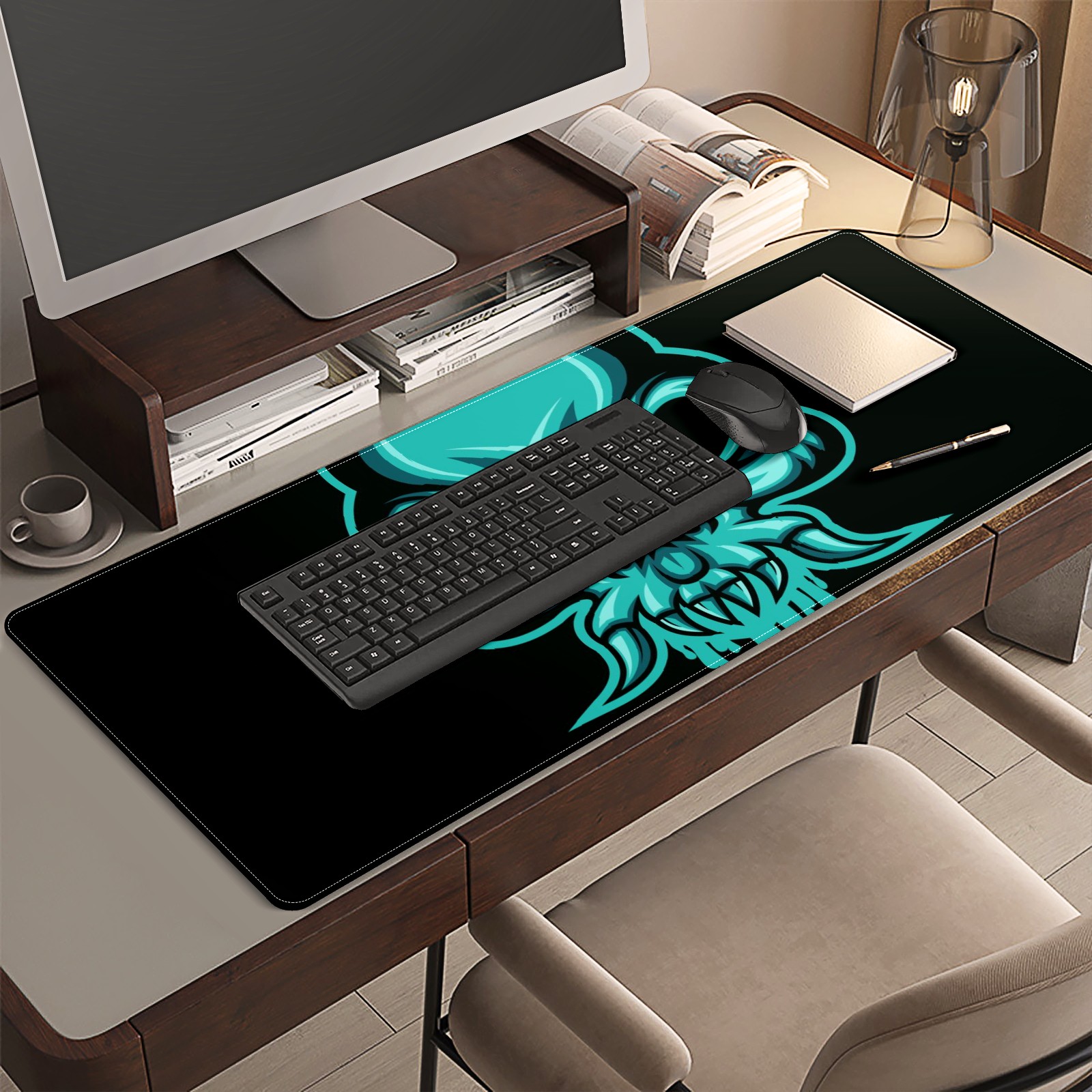 <p>This 35.4” × 15.7” extended desk mat offers ample space for your keyboard, mouse and essentials, working as a smooth work/writing pad while protecting your desktop from scratches.</p><p>With stylish artistic patterns, it adds personality to your home office, study or gaming setup. The high-density woven surface ensures precise, smooth mouse tracking for work and gaming.</p><p>Featuring an anti-slip natural rubber base for firm grip and stability, the mat is soft, elastic and odorless. Reinforced stitched edges prevent fraying and curling for long-lasting durability.</p>