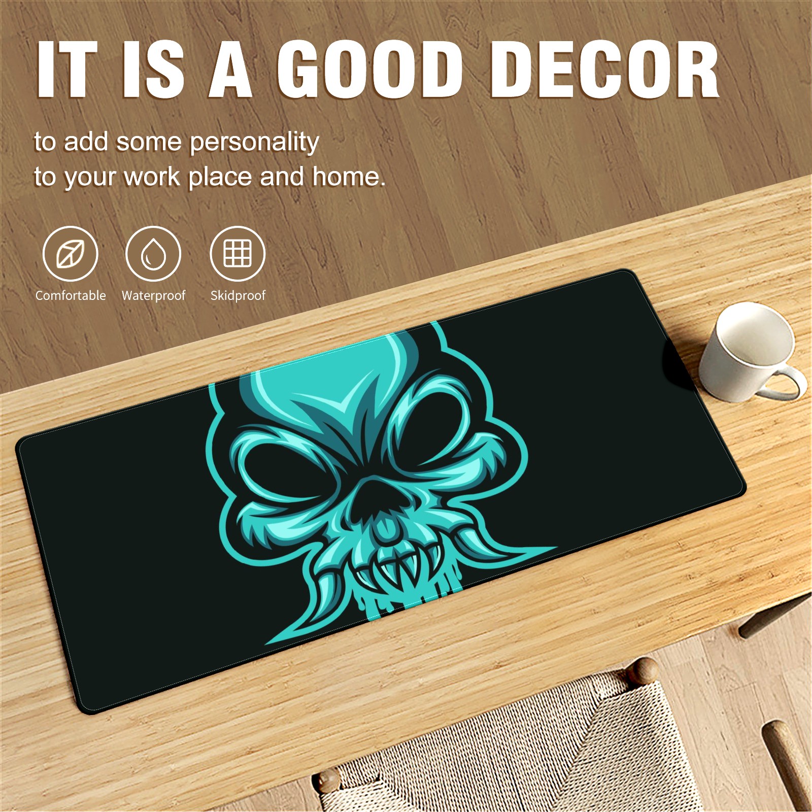 Large Mouse Pad for Desktop, Cute Desk Mat Pad Protector for Work & Gaming, Aesthetic Pretty Anti-Slip Laptop Blotter Cover for Office School Home Supplies, Skull Head Mucus , 35.4inx15.7in