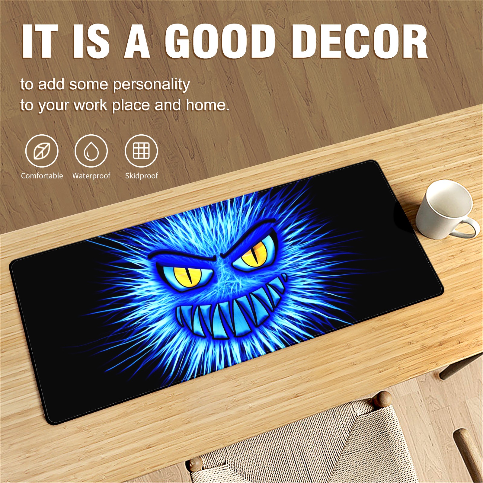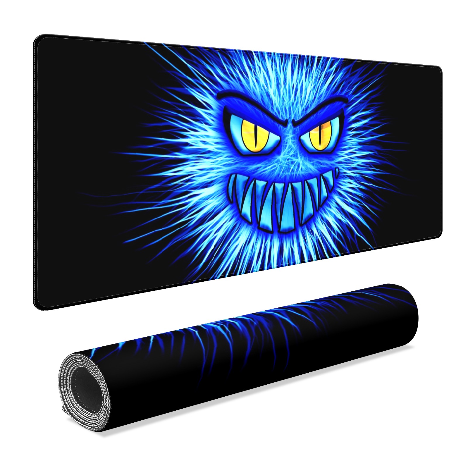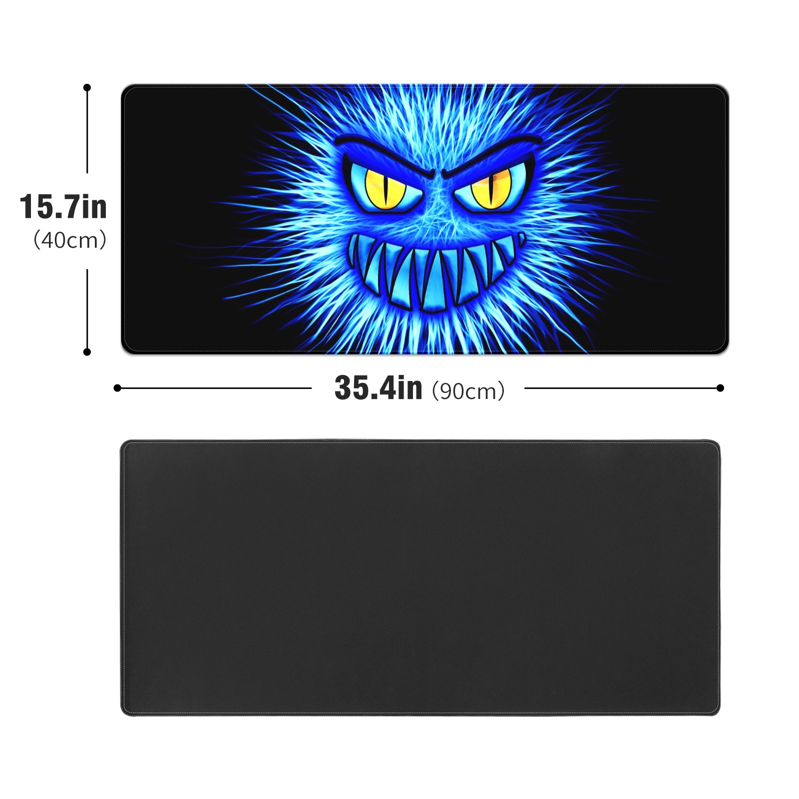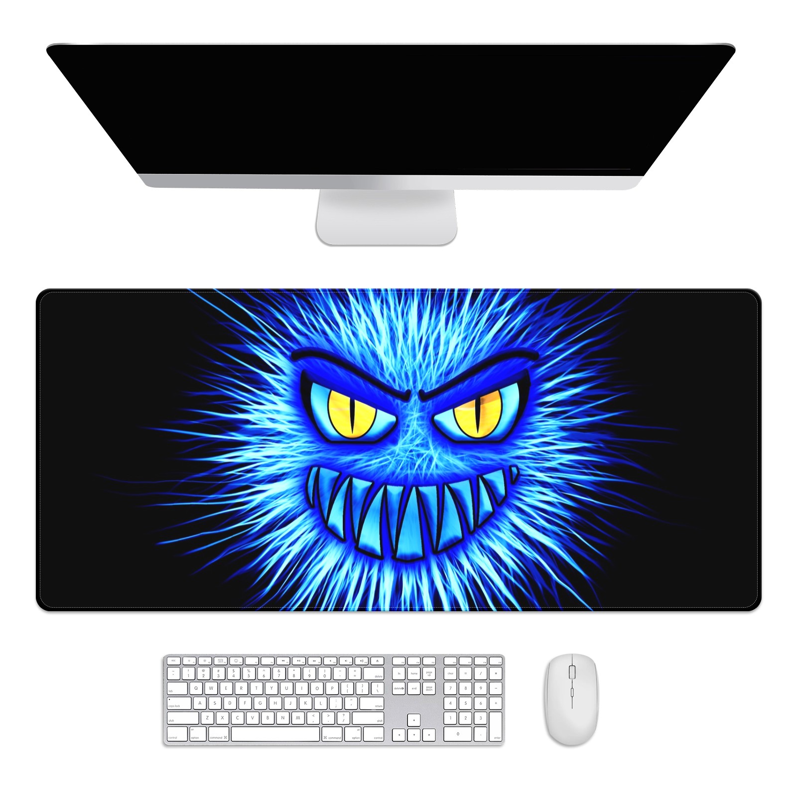 Large Mouse Pad for Desktop, Cute Desk Mat Pad Protector for Work & Gaming, Aesthetic Pretty Anti-Slip Laptop Blotter Cover for Office School Home Supplies, Monster Blue Evil , 35.4inx15.7in