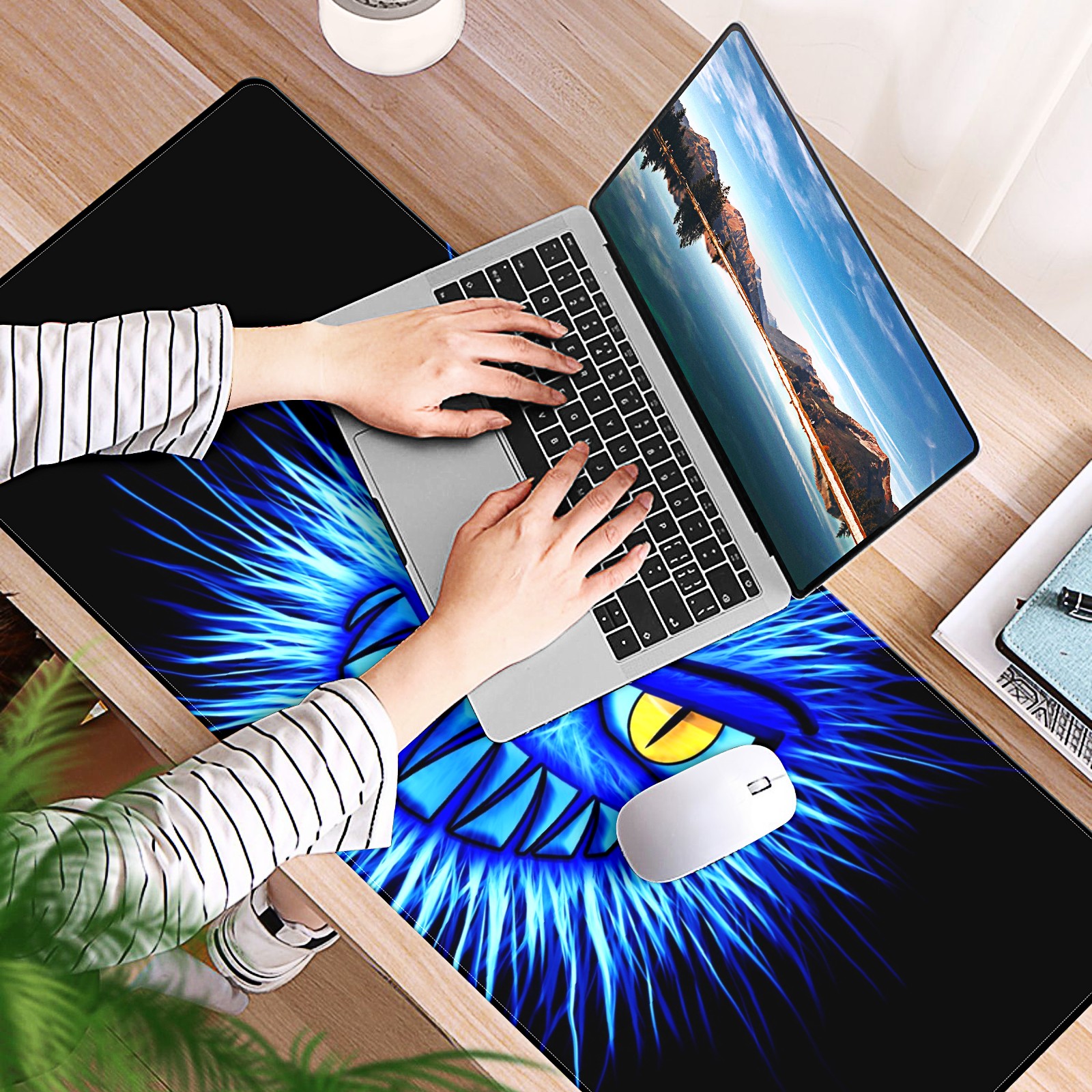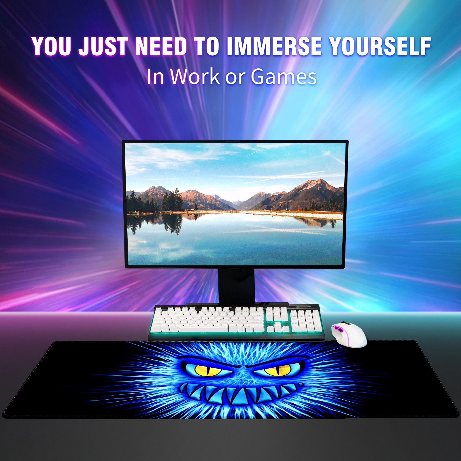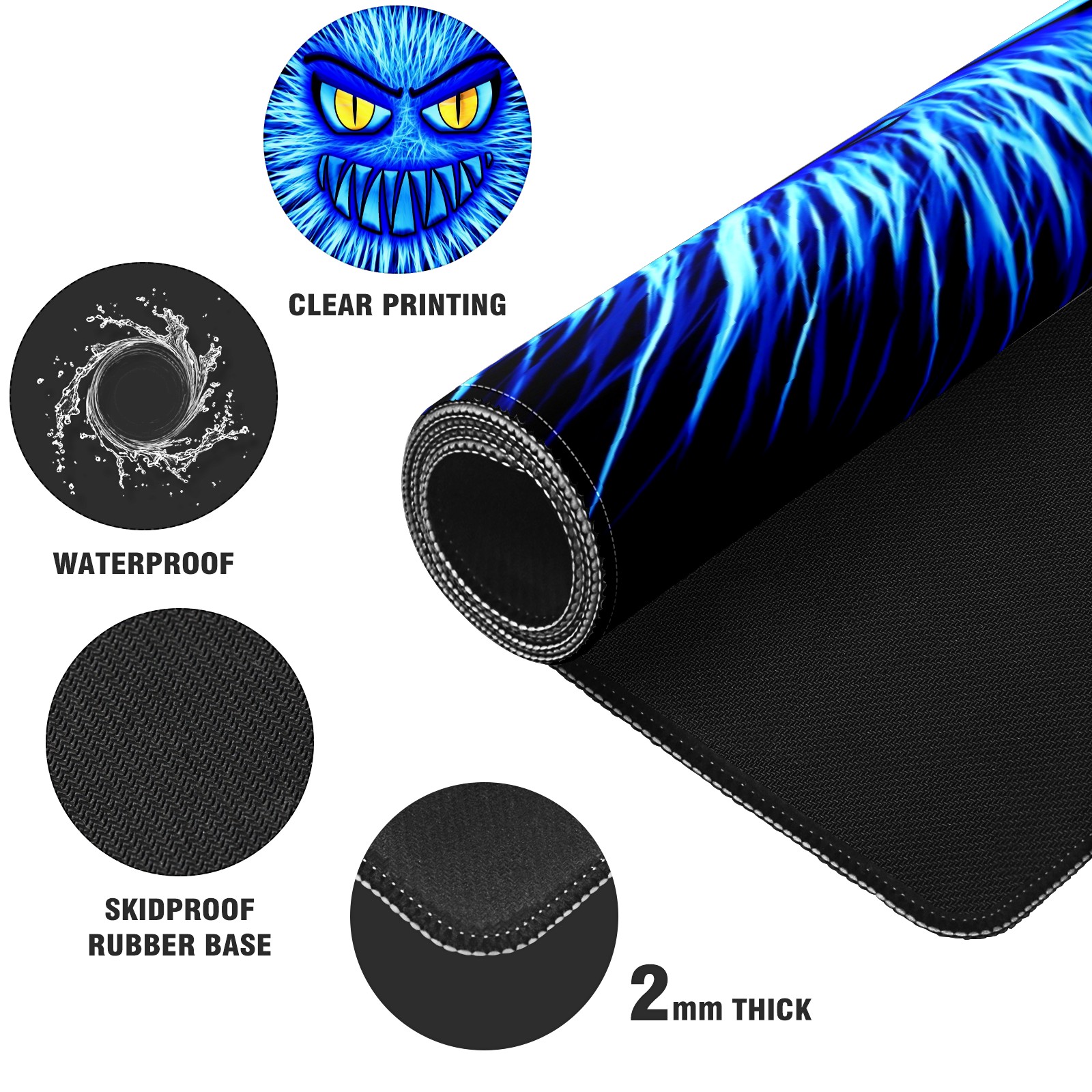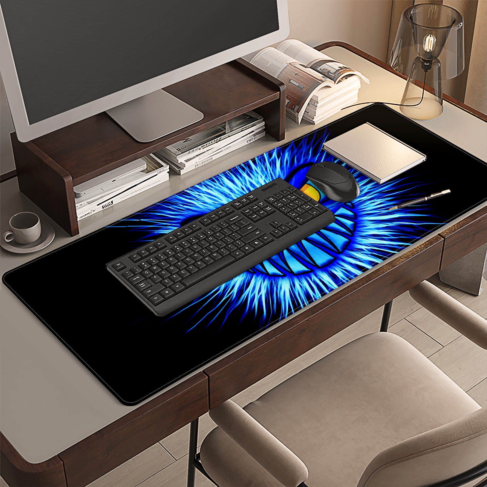Large Mouse Pad for Desktop, Cute Desk Mat Pad Protector for Work & Gaming, Aesthetic Pretty Anti-Slip Laptop Blotter Cover for Office School Home Supplies, Monster Blue Evil , 35.4inx15.7in