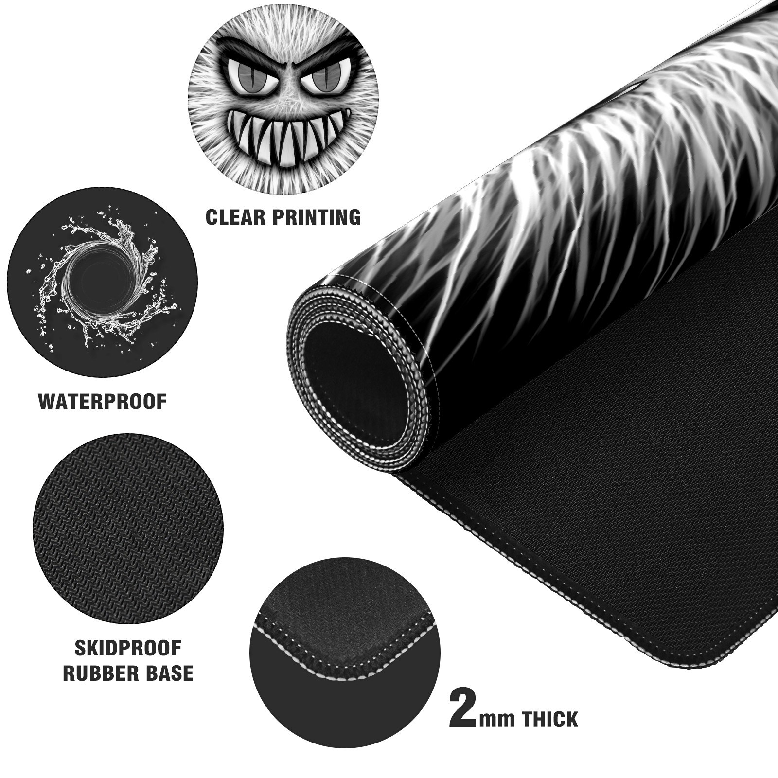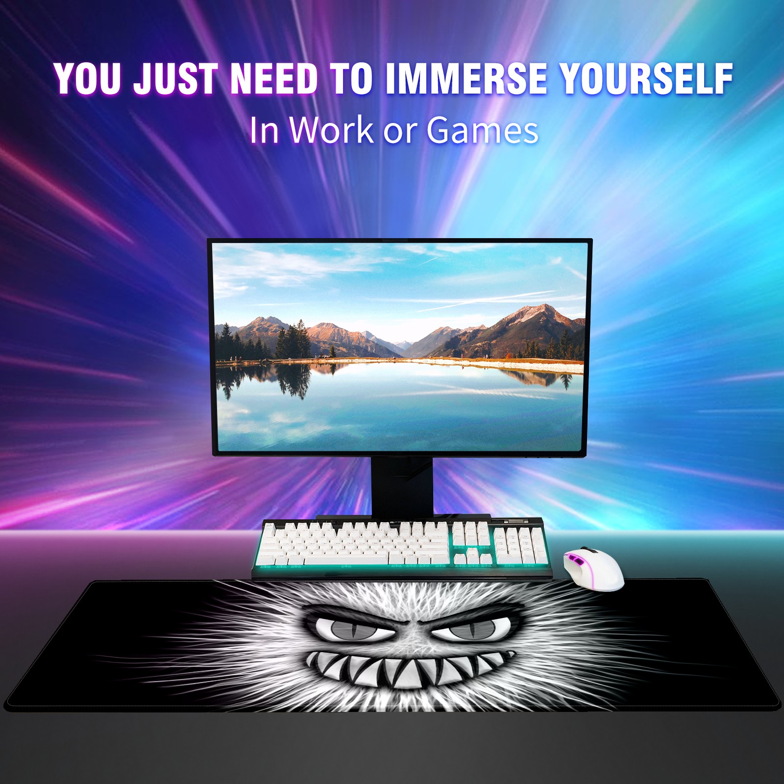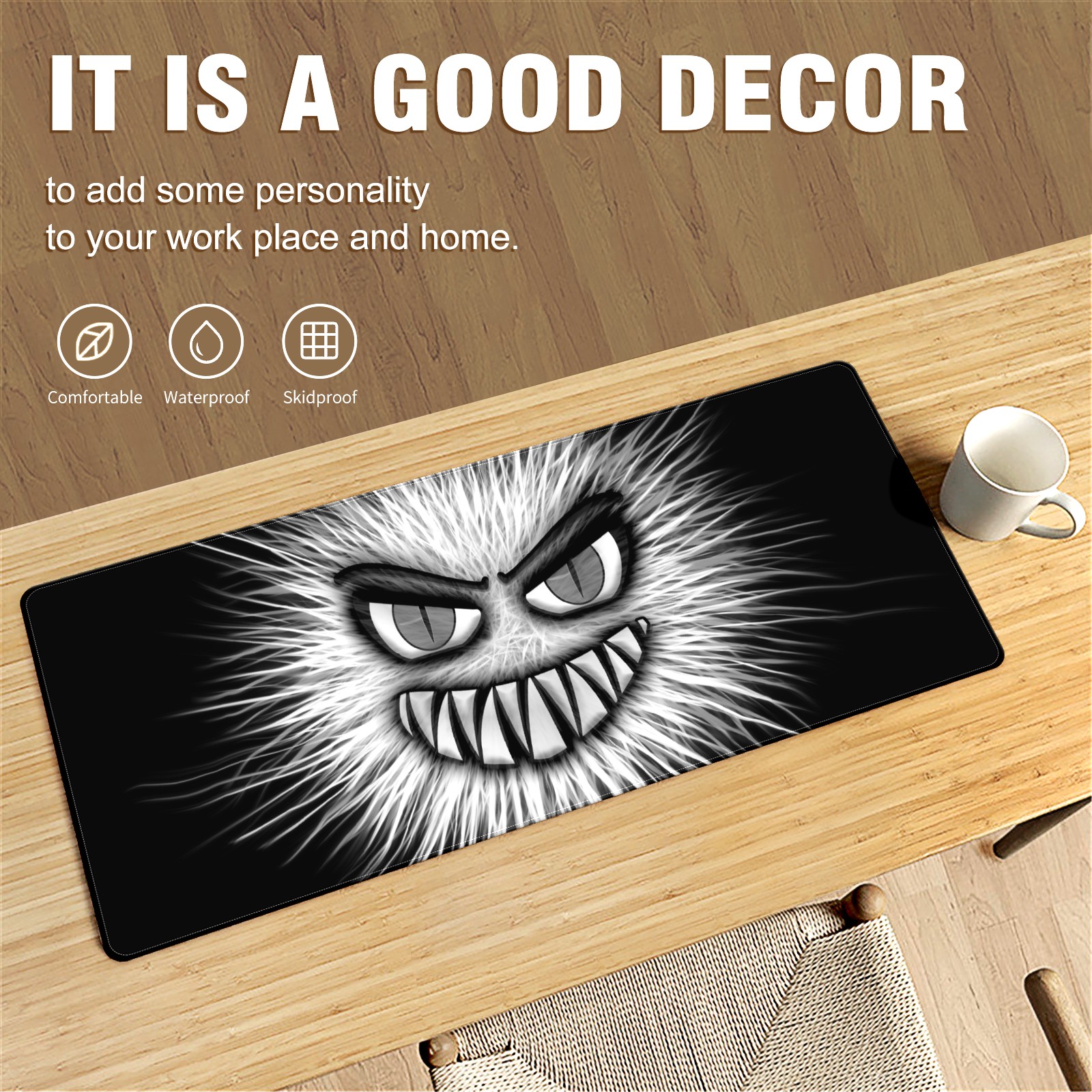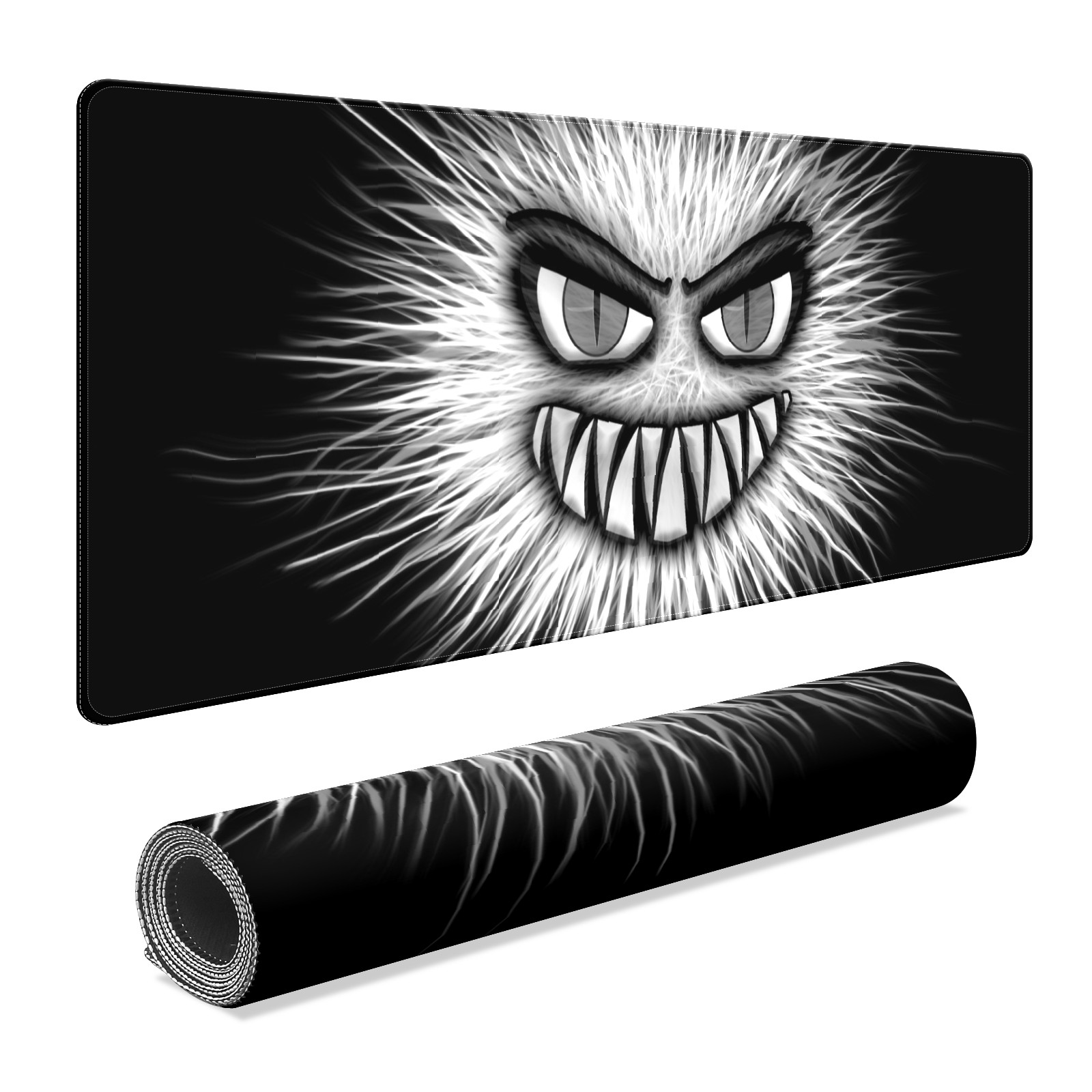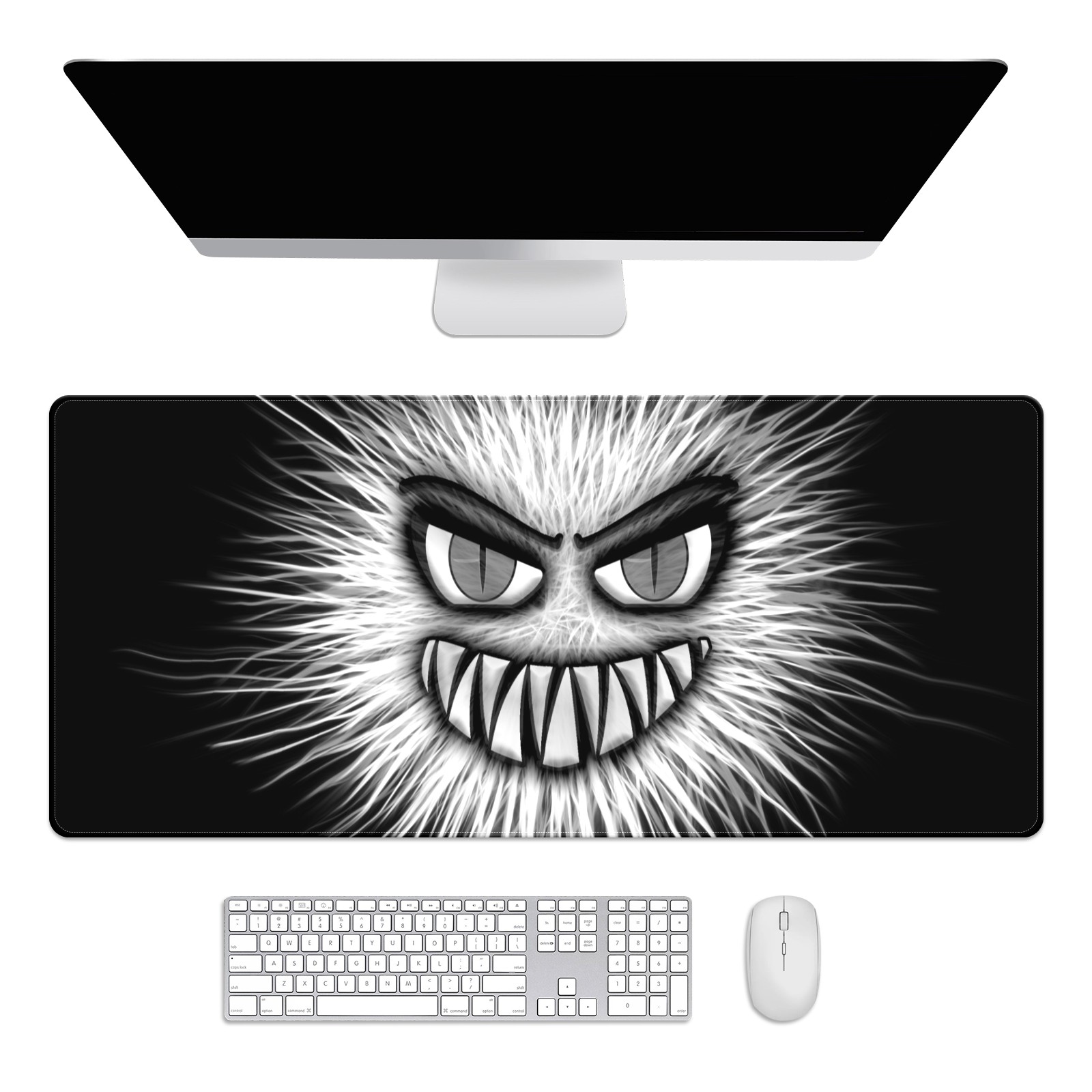 Large Mouse Pad for Desktop, Cute Desk Mat Pad Protector for Work & Gaming, Aesthetic Pretty Anti-Slip Laptop Blotter Cover for Office School Home Supplies, Monster White Evil , 35.4inx15.7in