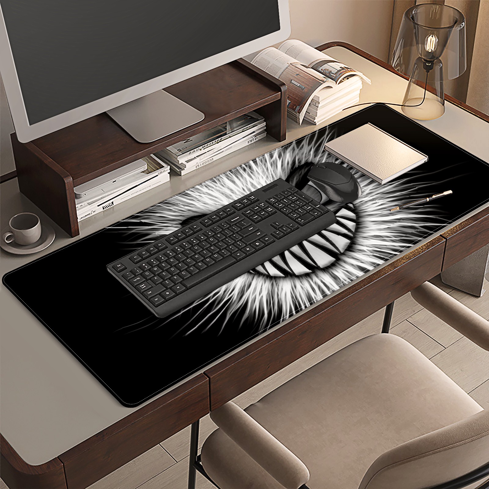 <p>This 35.4” × 15.7” extended desk mat offers ample space for your keyboard, mouse and essentials, working as a smooth work/writing pad while protecting your desktop from scratches.</p><p>With stylish artistic patterns, it adds personality to your home office, study or gaming setup. The high-density woven surface ensures precise, smooth mouse tracking for work and gaming.</p><p>Featuring an anti-slip natural rubber base for firm grip and stability, the mat is soft, elastic and odorless. Reinforced stitched edges prevent fraying and curling for long-lasting durability.</p>