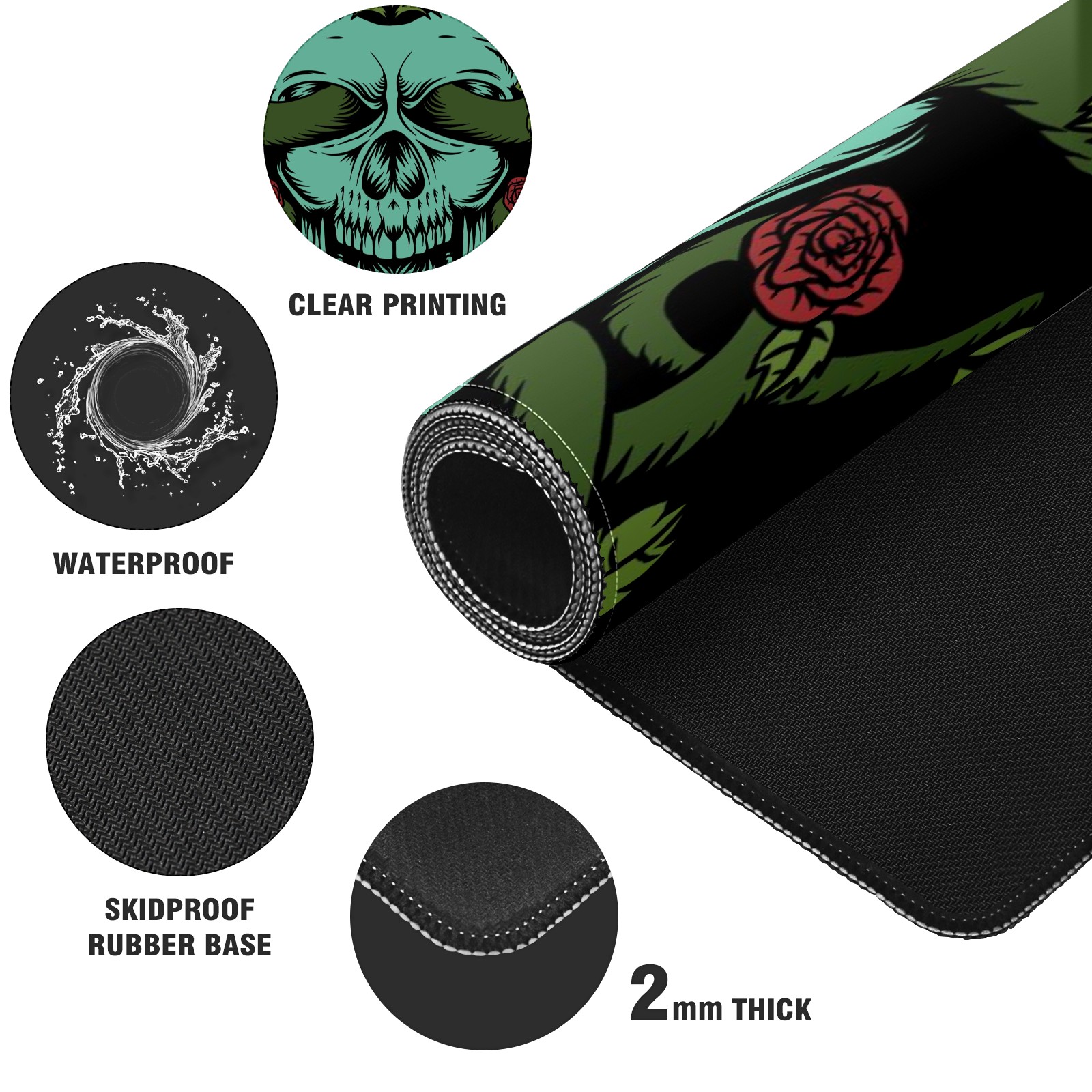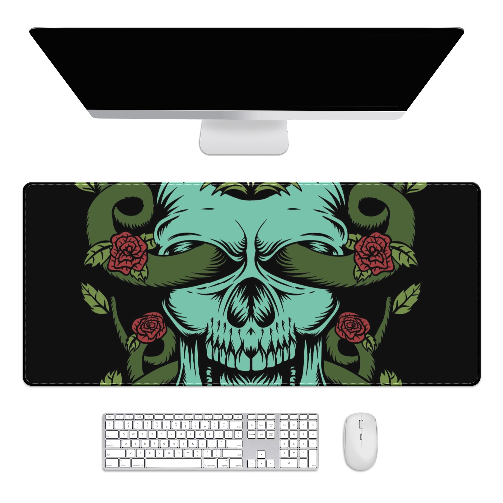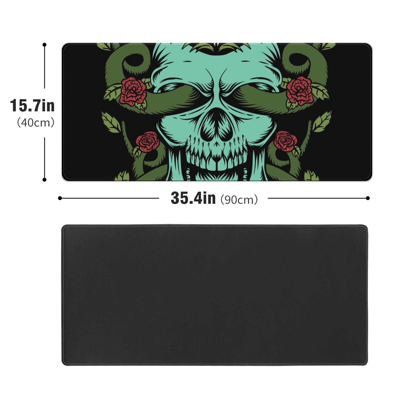 Large Mouse Pad for Desktop, Cute Desk Mat Pad Protector for Work & Gaming, Aesthetic Pretty Anti-Slip Laptop Blotter Cover for Office School Home Supplies, Skull Rose Flower , 35.4inx15.7in