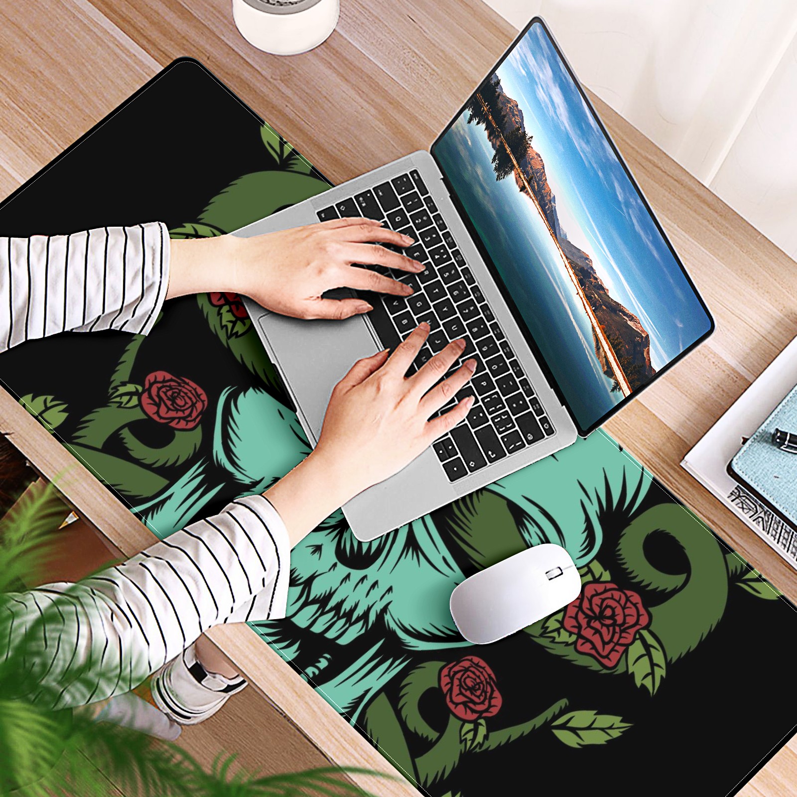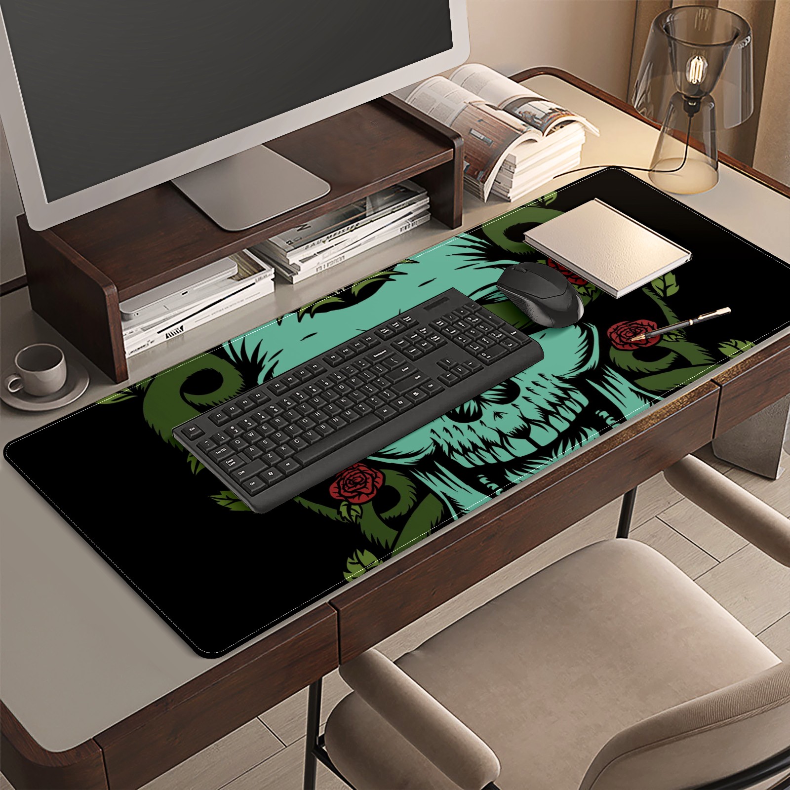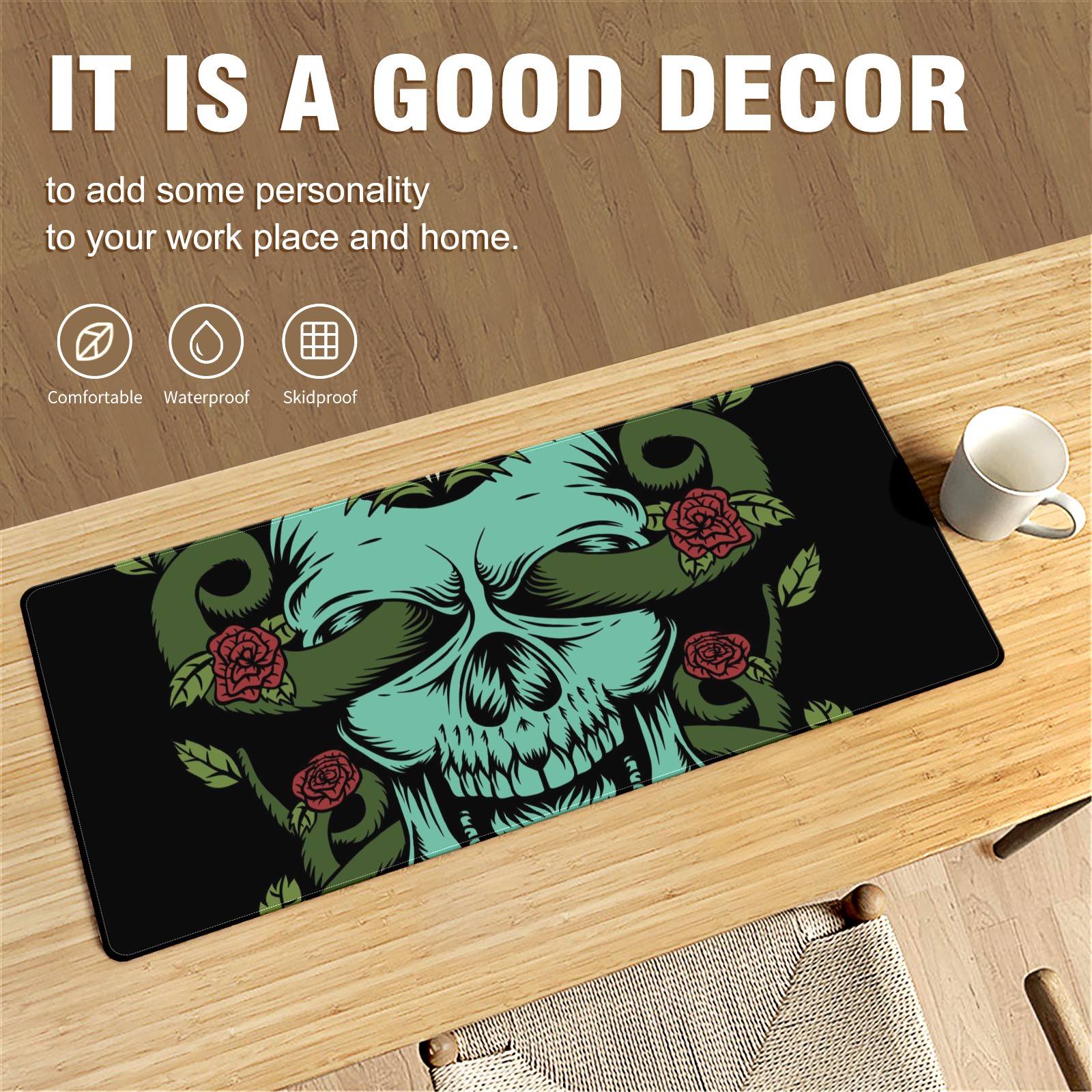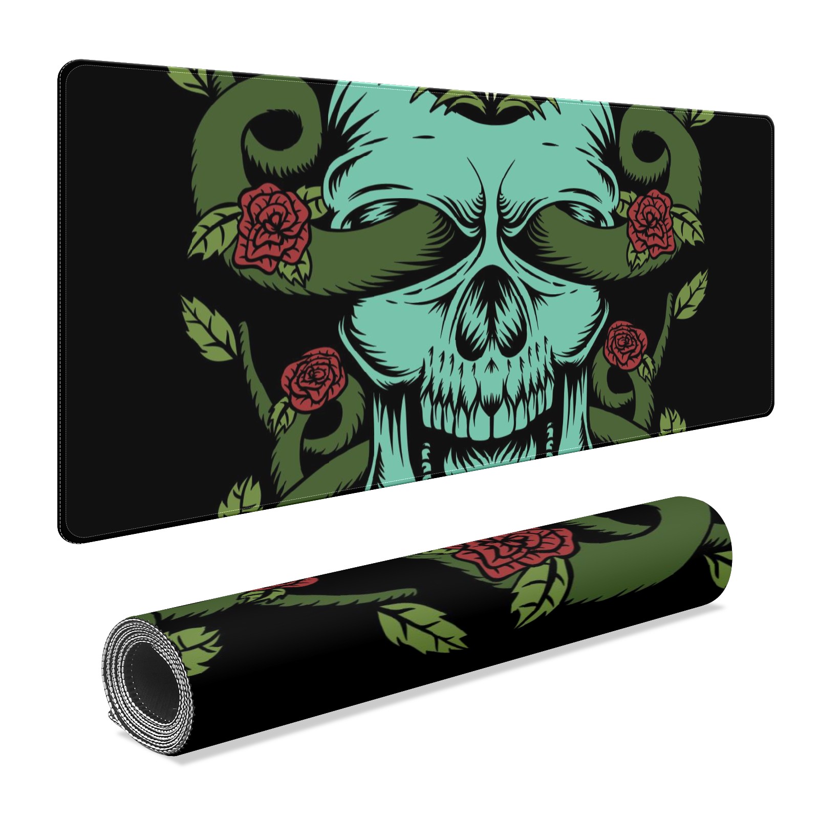 Large Mouse Pad for Desktop, Cute Desk Mat Pad Protector for Work & Gaming, Aesthetic Pretty Anti-Slip Laptop Blotter Cover for Office School Home Supplies, Skull Rose Flower , 35.4inx15.7in