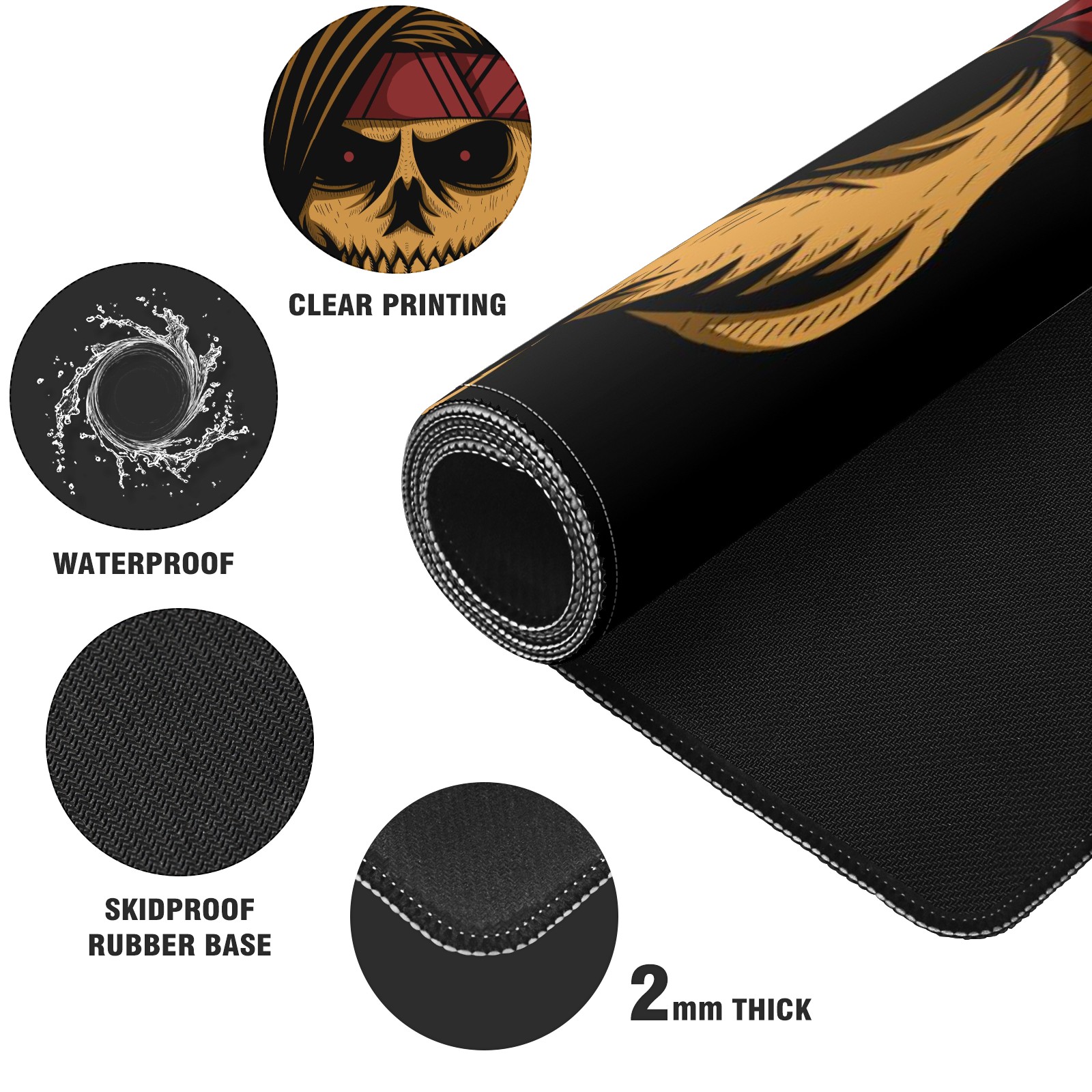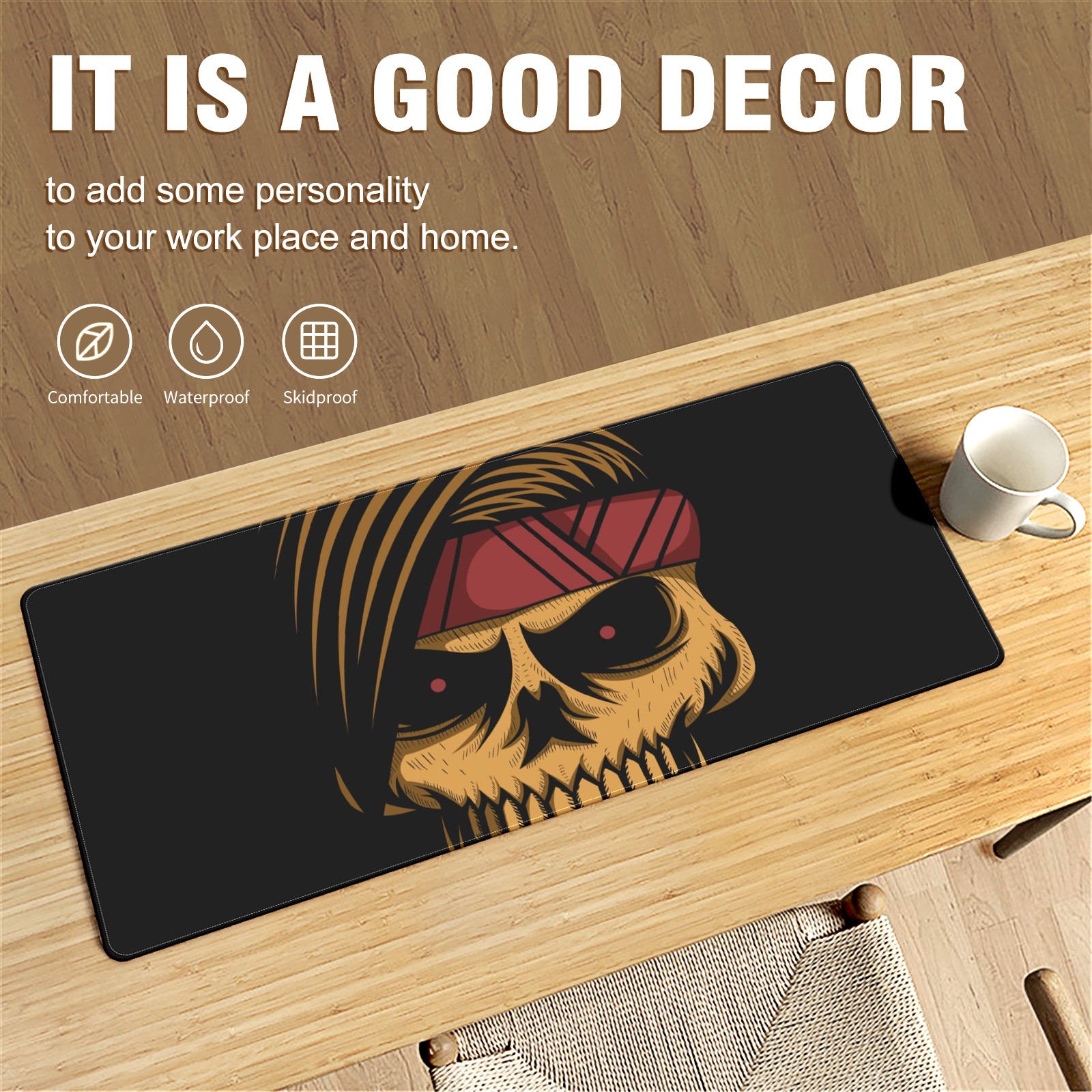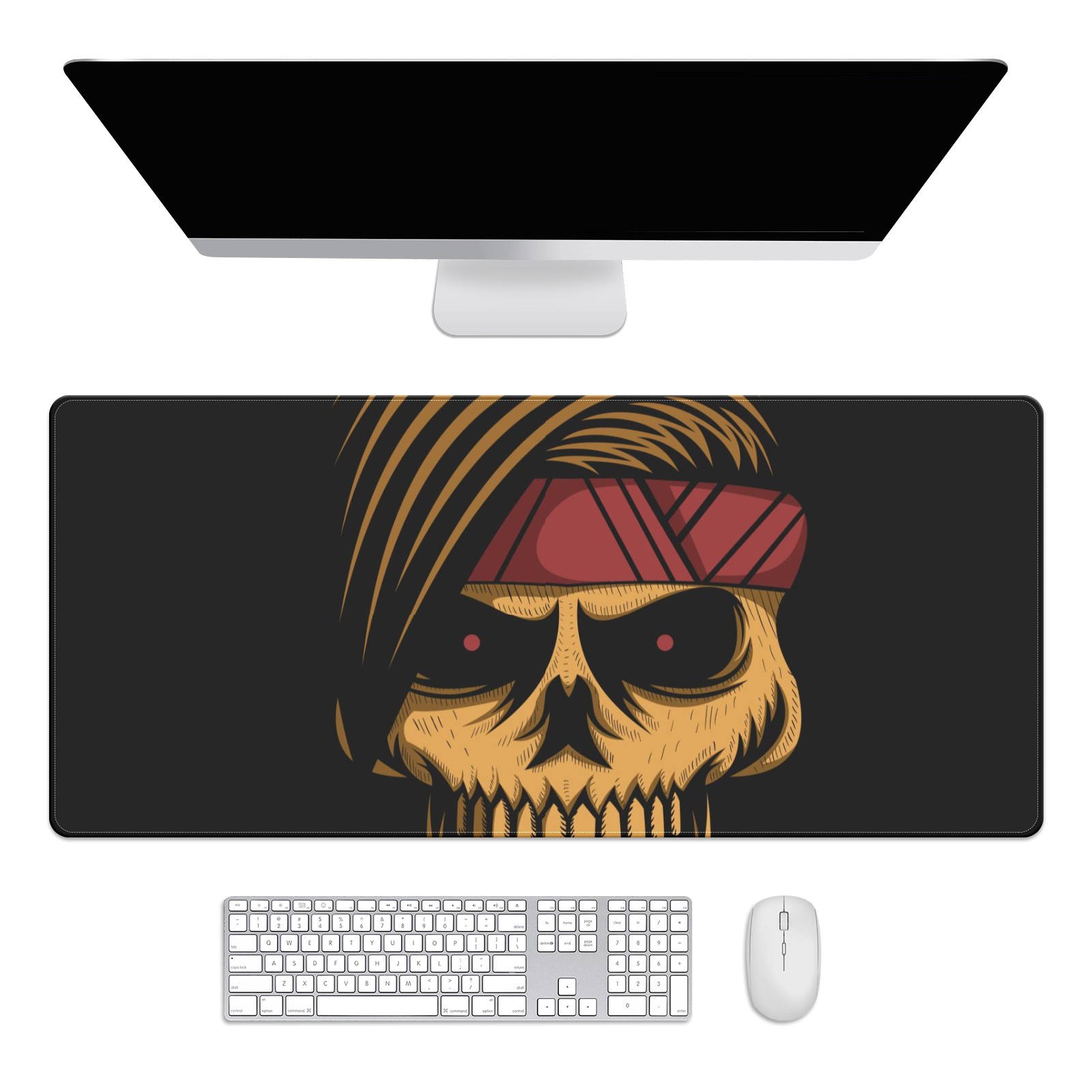 Large Mouse Pad for Desktop, Cute Desk Mat Pad Protector for Work & Gaming, Aesthetic Pretty Anti-Slip Laptop Blotter Cover for Office School Home Supplies, Skull Headband , 35.4inx15.7in