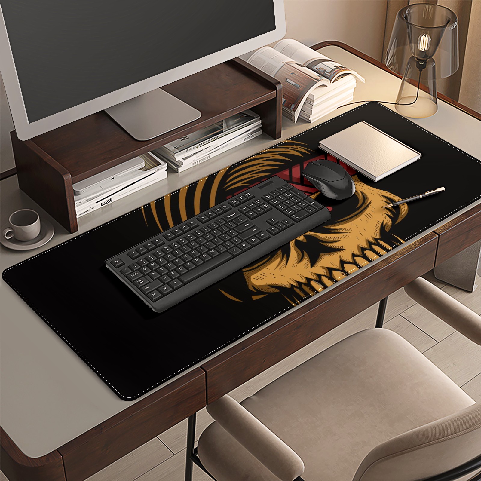 <p>This 35.4” × 15.7” extended desk mat offers ample space for your keyboard, mouse and essentials, working as a smooth work/writing pad while protecting your desktop from scratches.</p><p>With stylish artistic patterns, it adds personality to your home office, study or gaming setup. The high-density woven surface ensures precise, smooth mouse tracking for work and gaming.</p><p>Featuring an anti-slip natural rubber base for firm grip and stability, the mat is soft, elastic and odorless. Reinforced stitched edges prevent fraying and curling for long-lasting durability.</p>