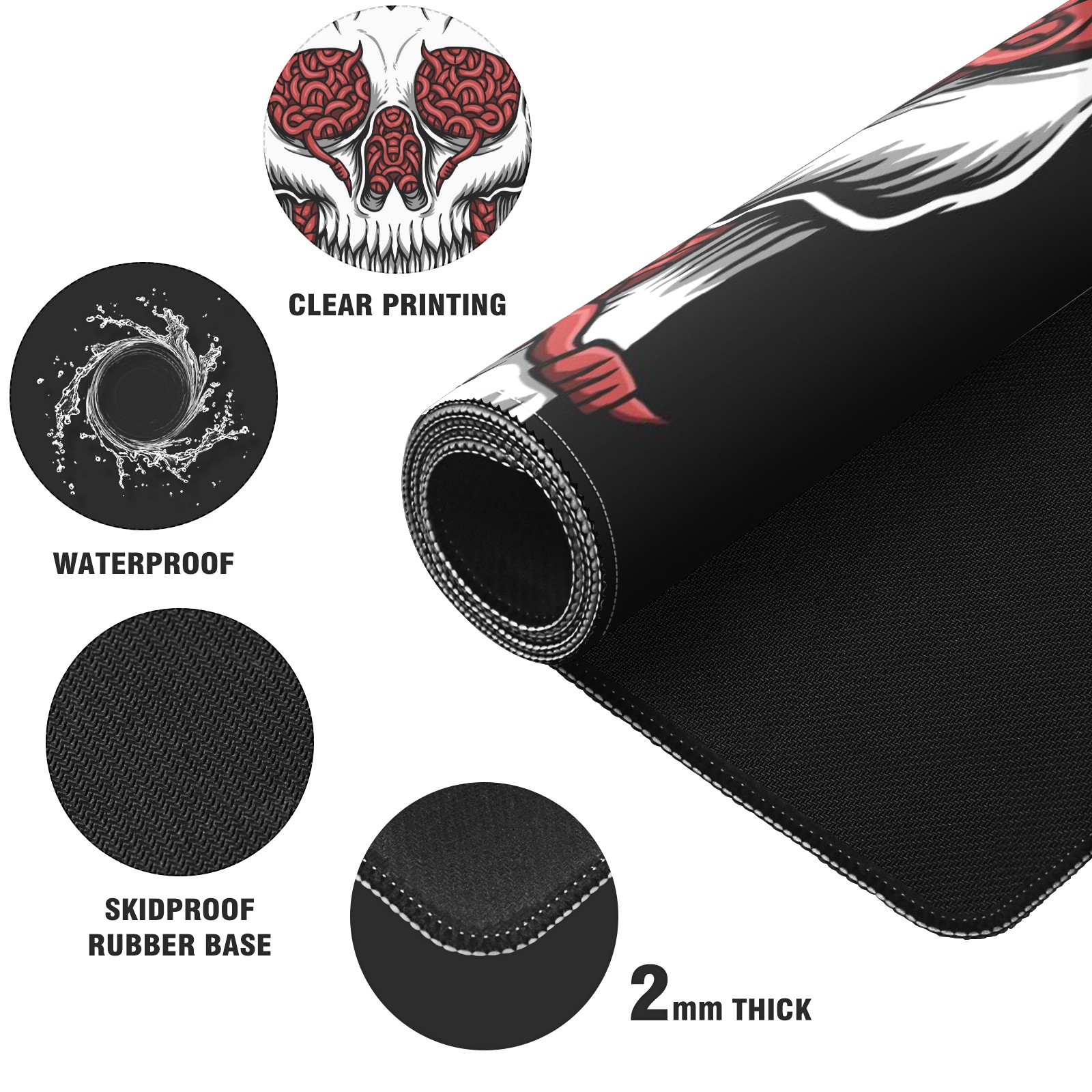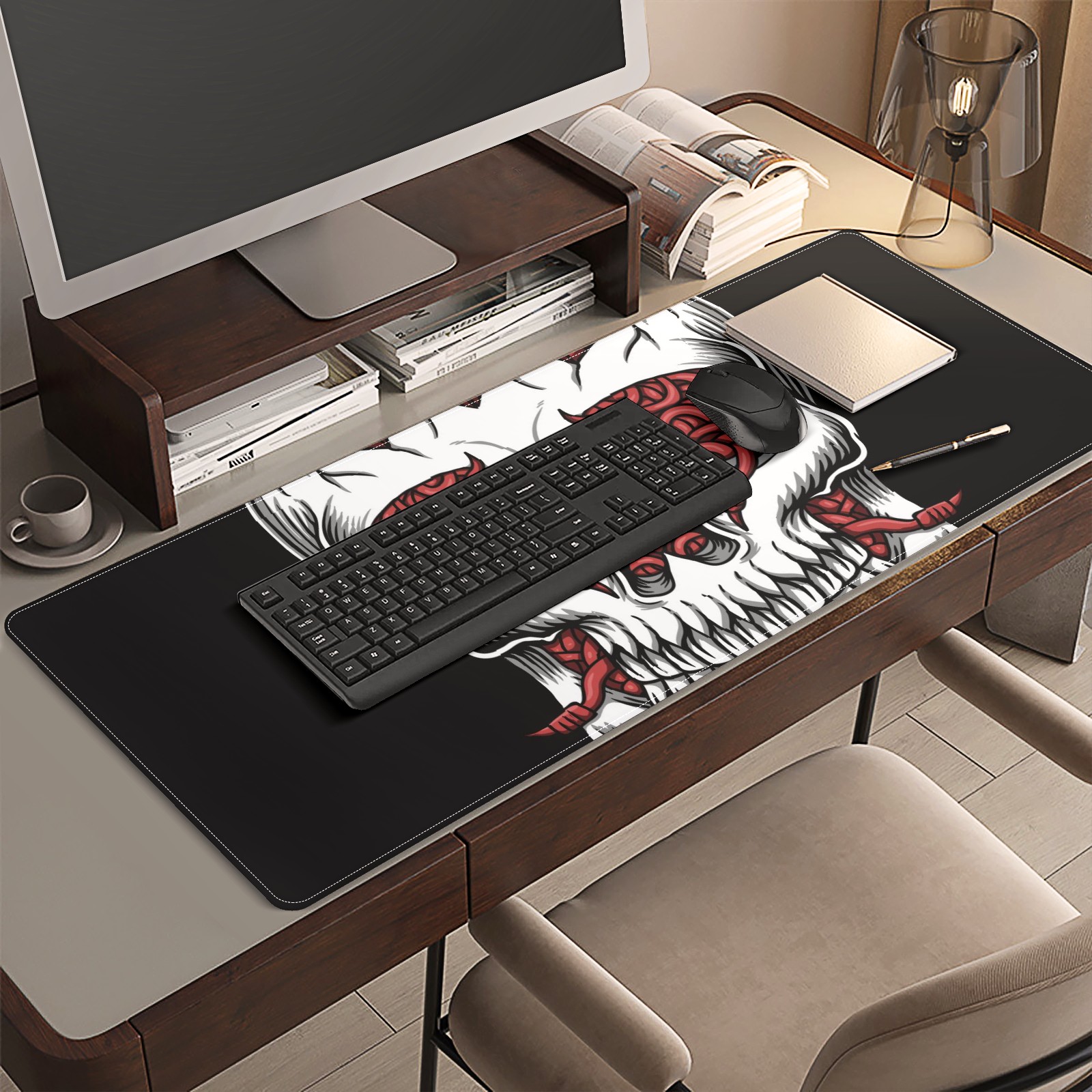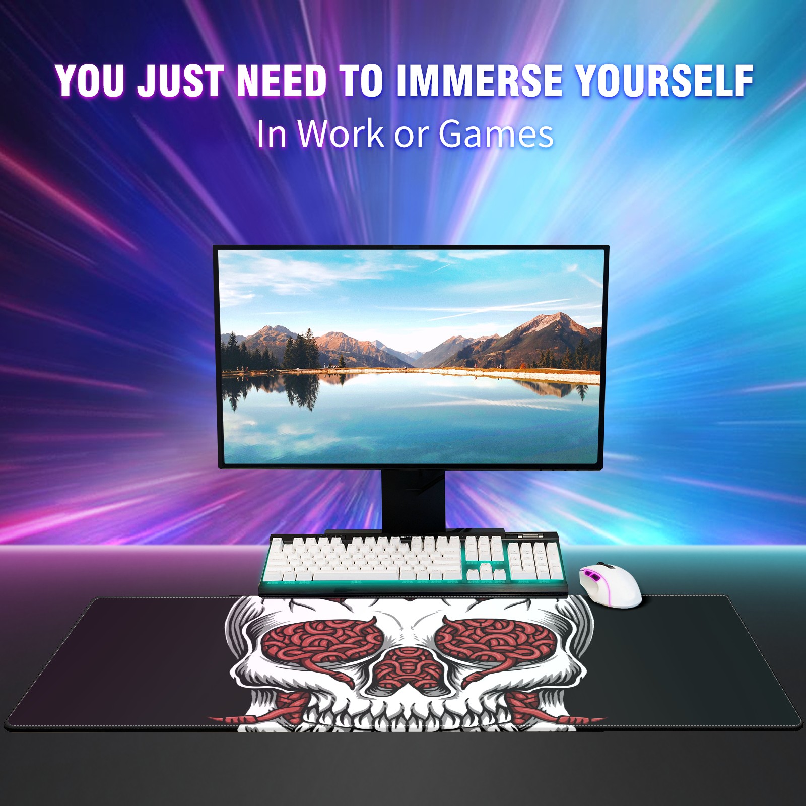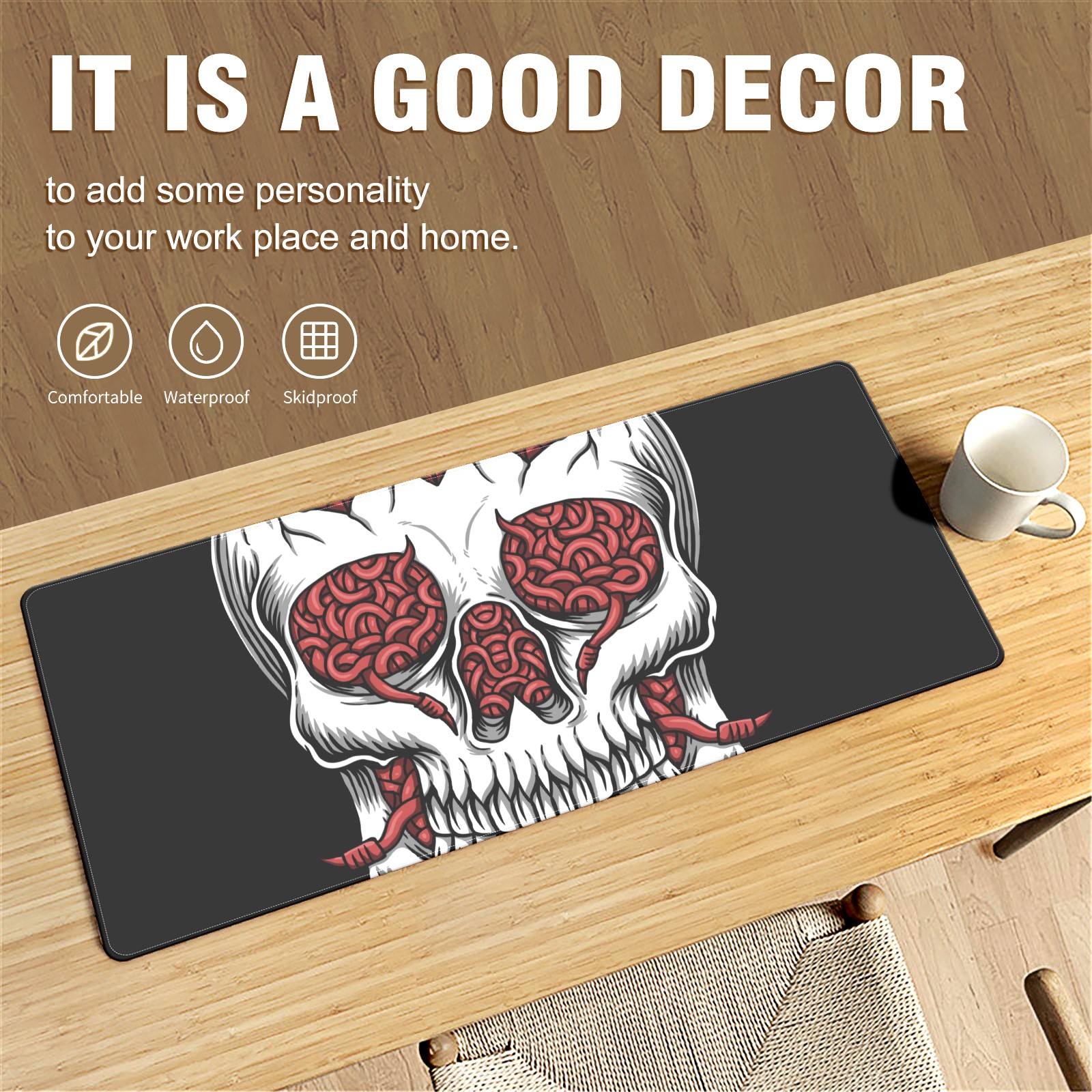 Large Mouse Pad for Desktop, Cute Desk Mat Pad Protector for Work & Gaming, Aesthetic Pretty Anti-Slip Laptop Blotter Cover for Office School Home Supplies, Skull Worm , 35.4inx15.7in