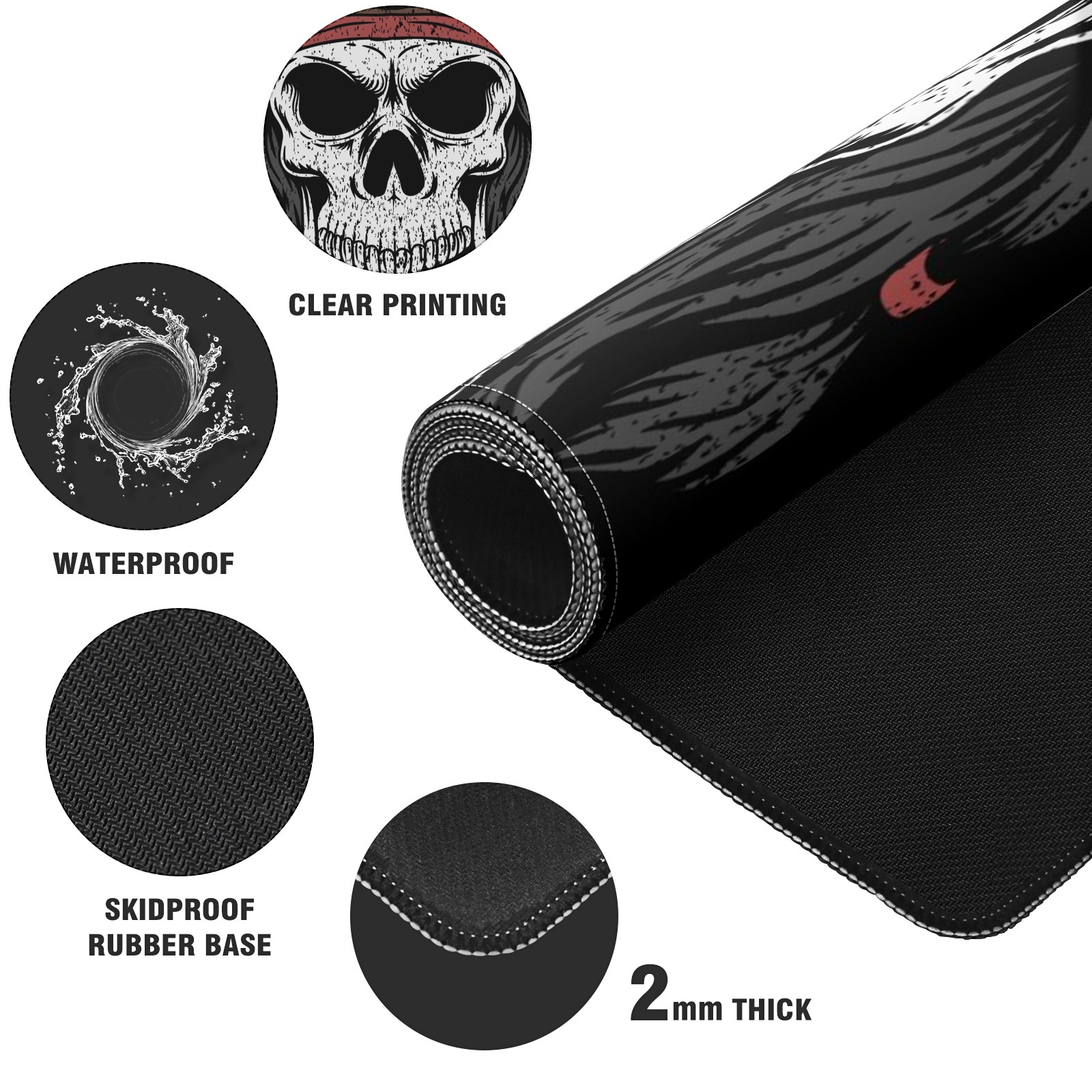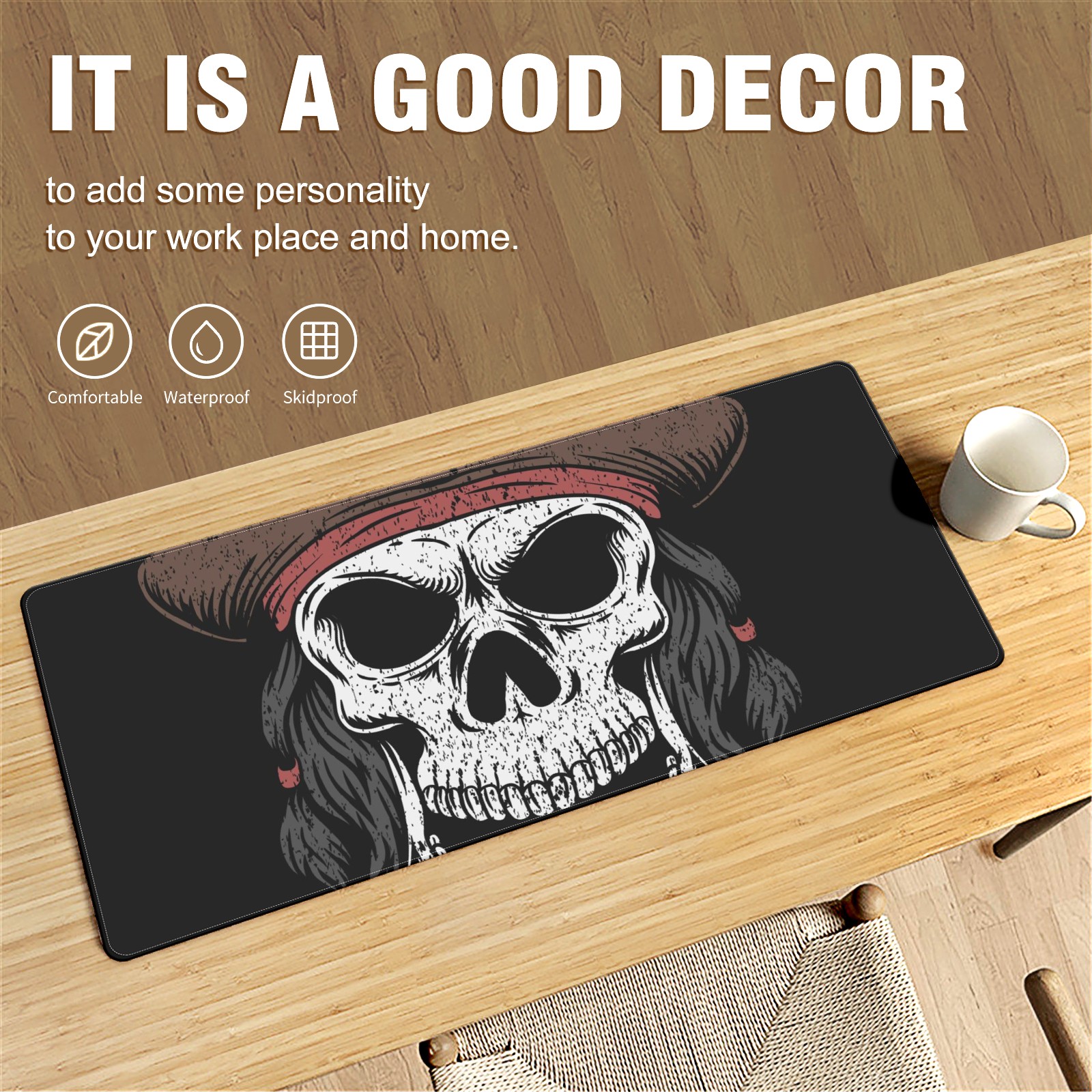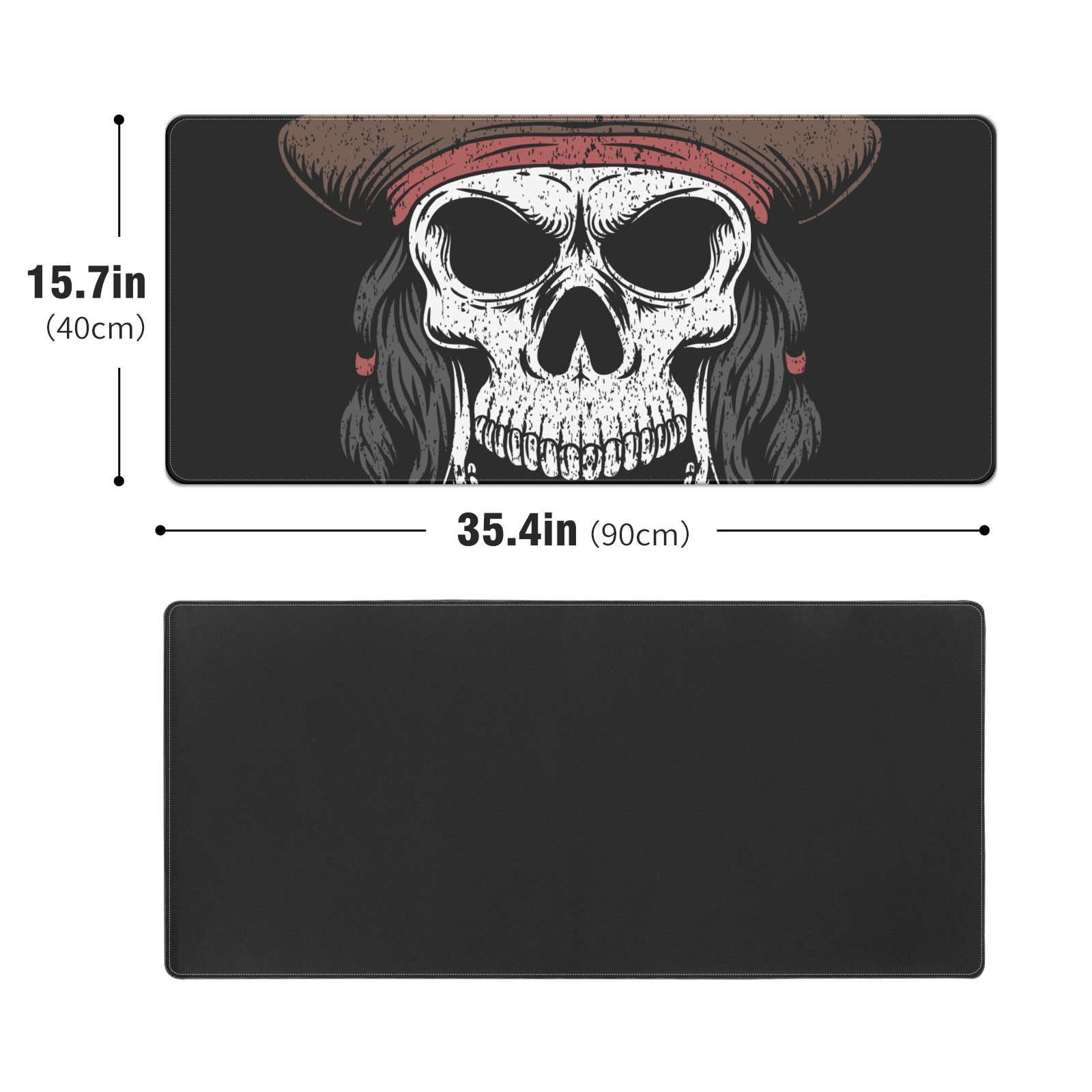 Large Mouse Pad for Desktop, Cute Desk Mat Pad Protector for Work & Gaming, Aesthetic Pretty Anti-Slip Laptop Blotter Cover for Office School Home Supplies, Skull Hat Pirate , 35.4inx15.7in