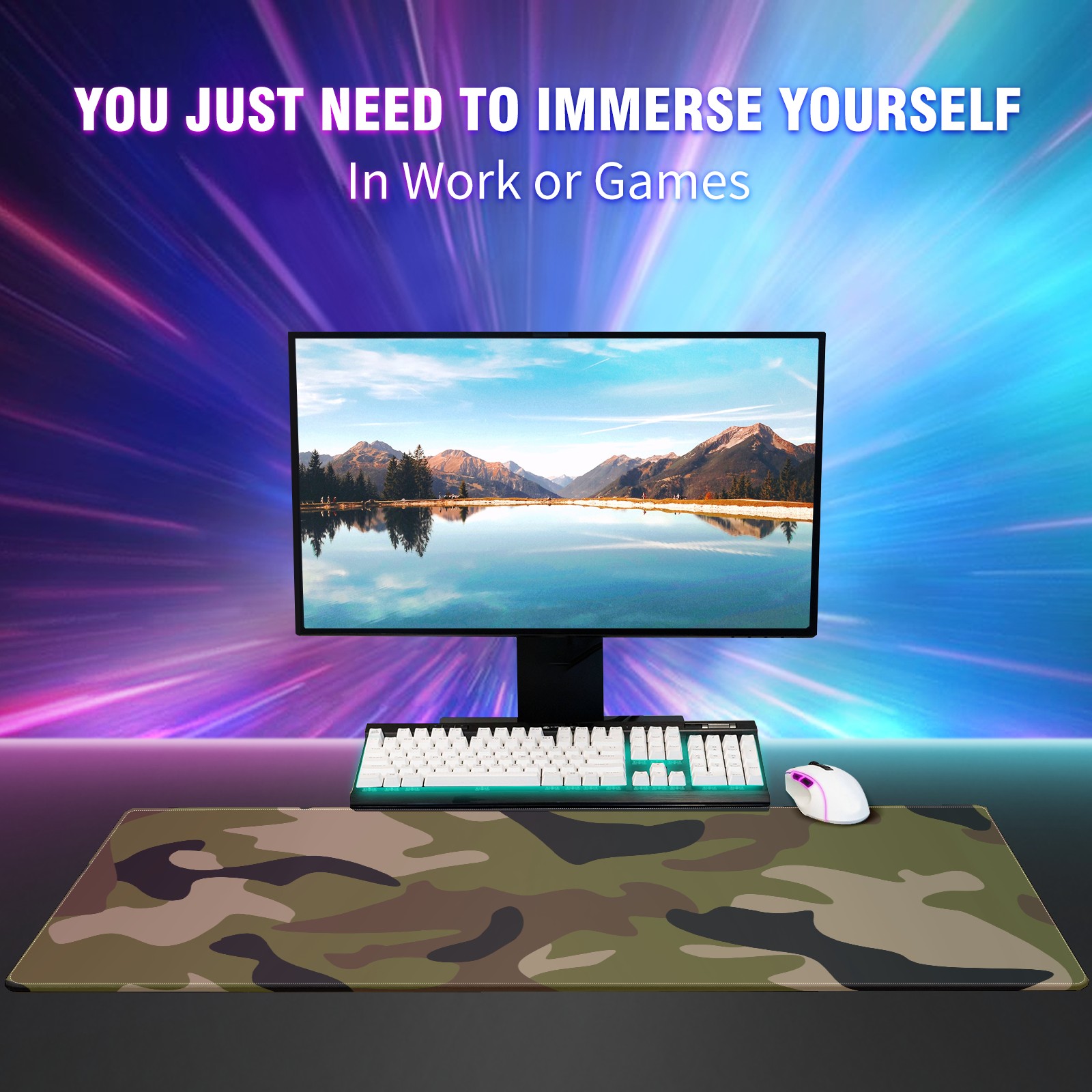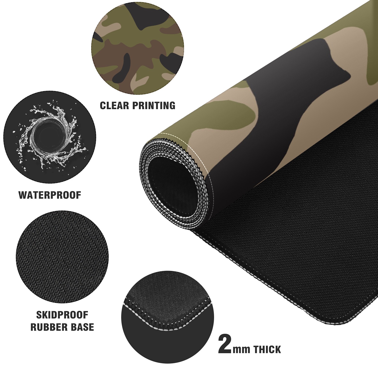 Large Mouse Pad for Desktop, Cute Desk Mat Pad Protector for Work & Gaming, Aesthetic Pretty Anti-Slip Laptop Blotter Cover for Office School Home Supplies, Camouflage Pattern , 35.4inx15.7in