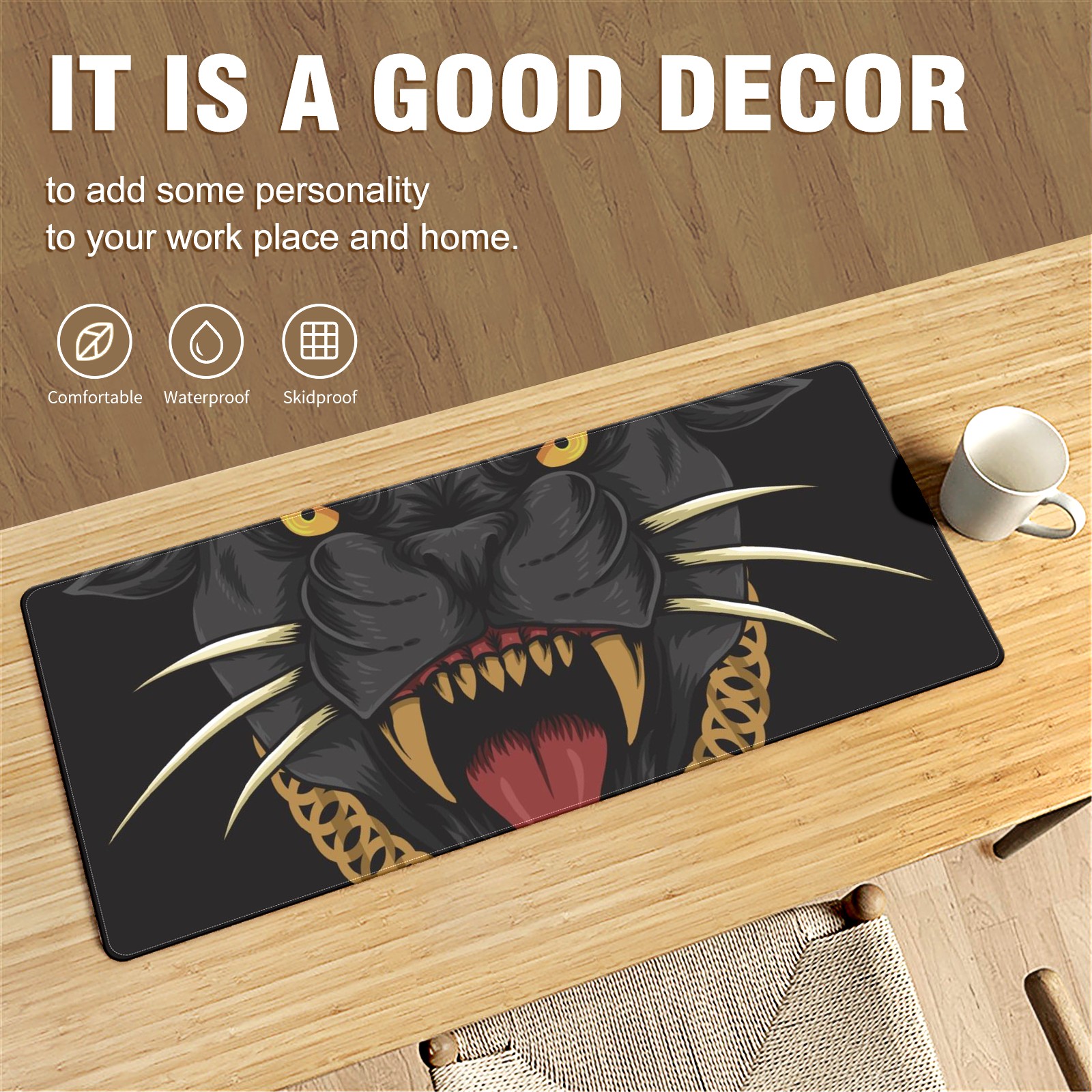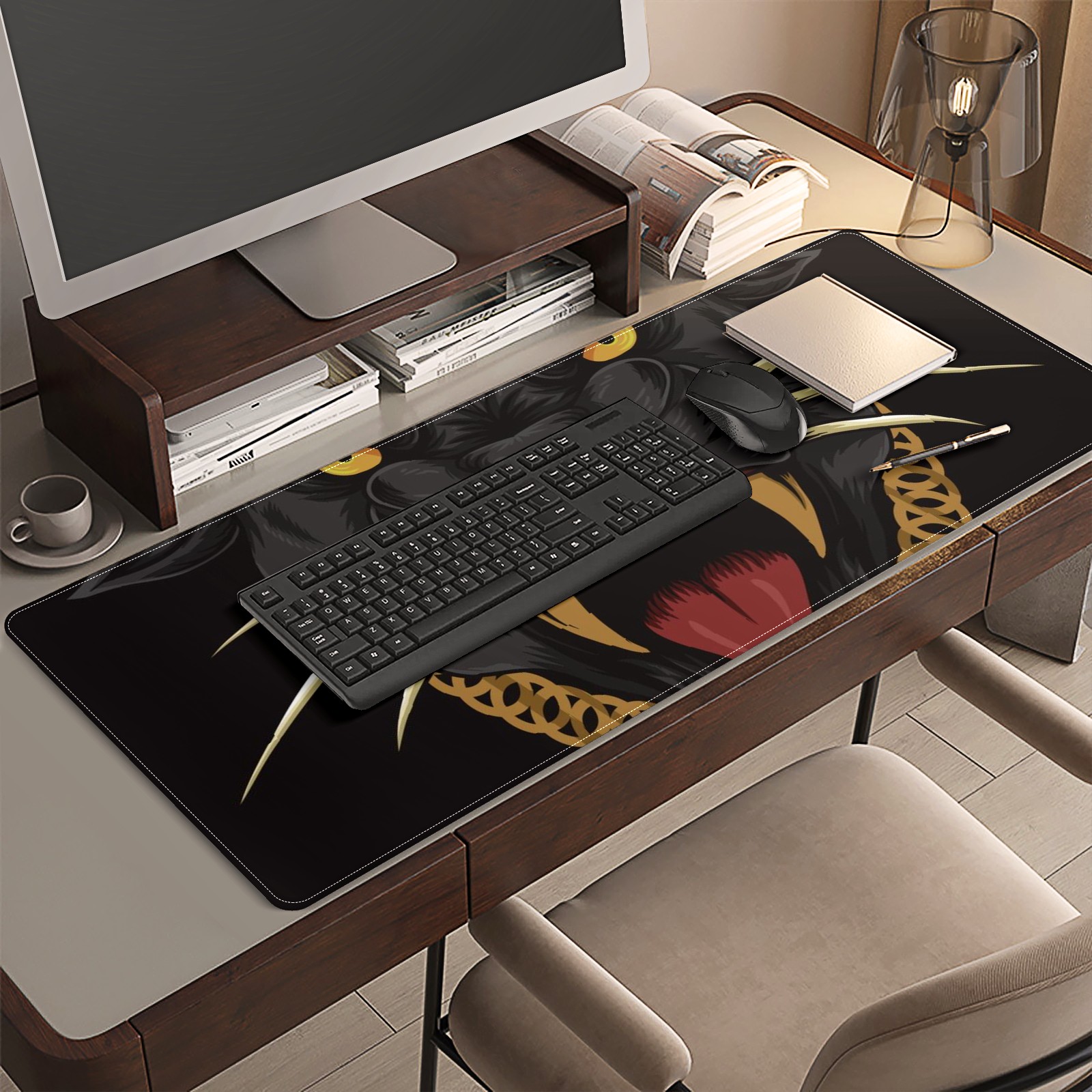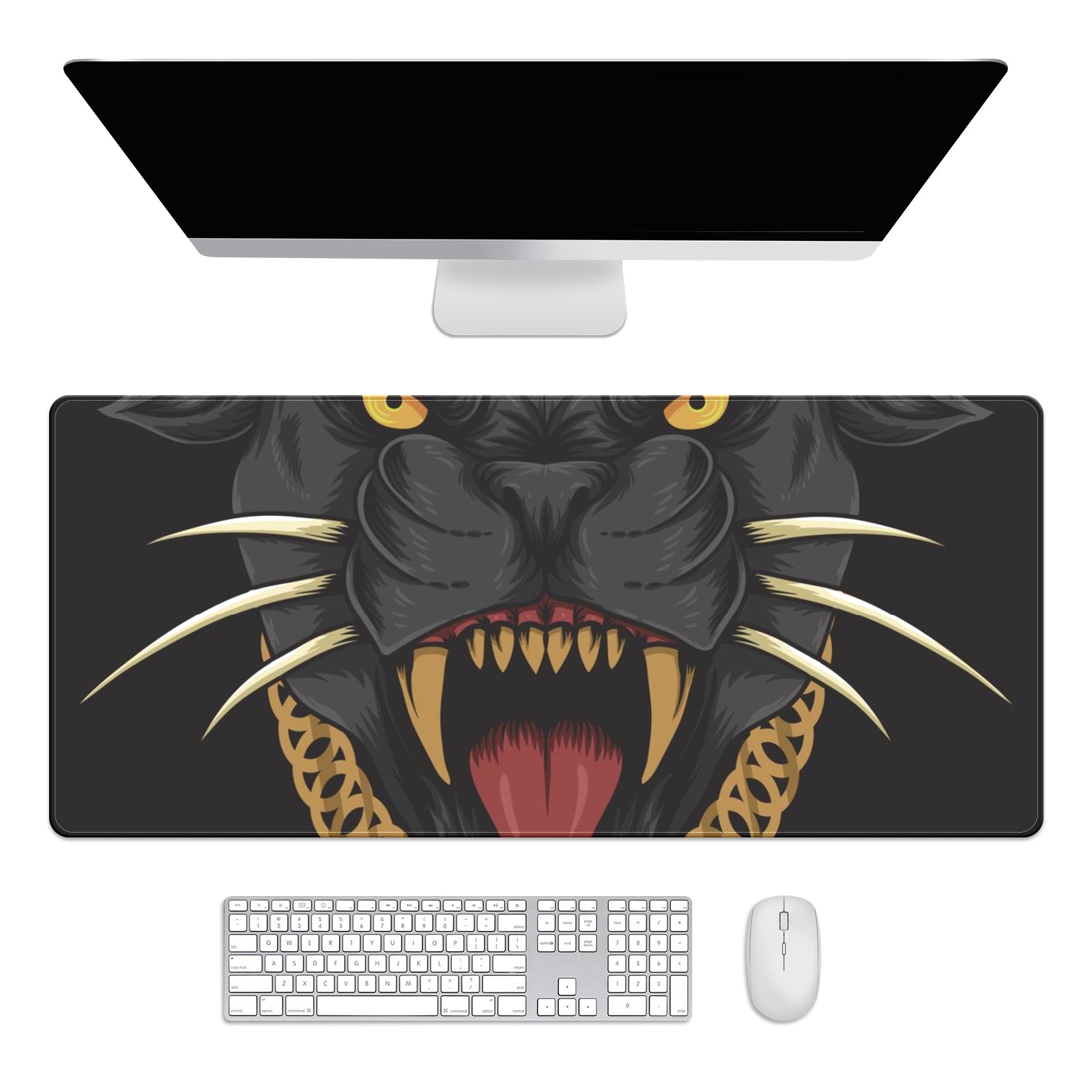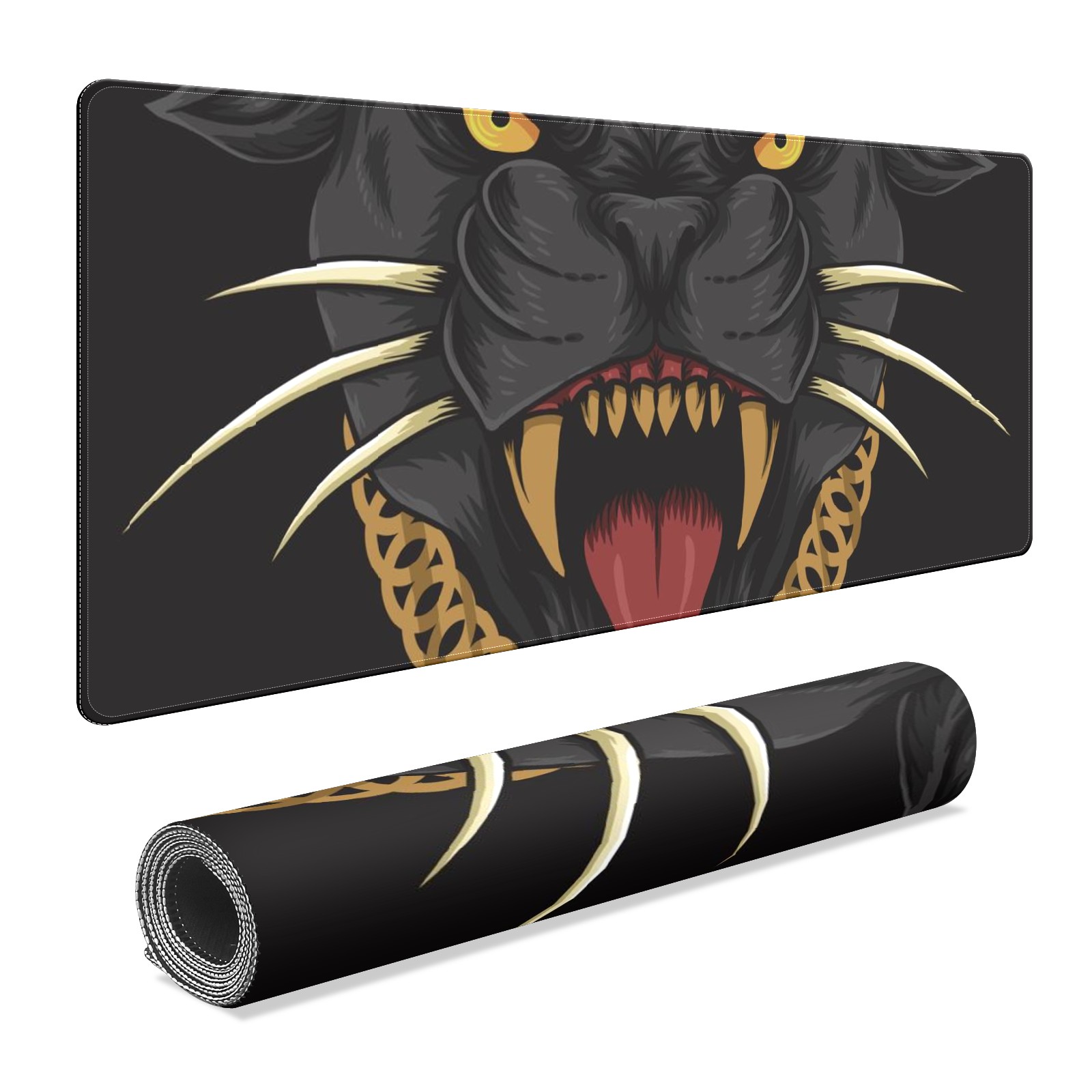 Large Mouse Pad for Desktop, Cute Desk Mat Pad Protector for Work & Gaming, Aesthetic Pretty Anti-Slip Laptop Blotter Cover for Office School Home Supplies, Panther Cool Black , 35.4inx15.7in