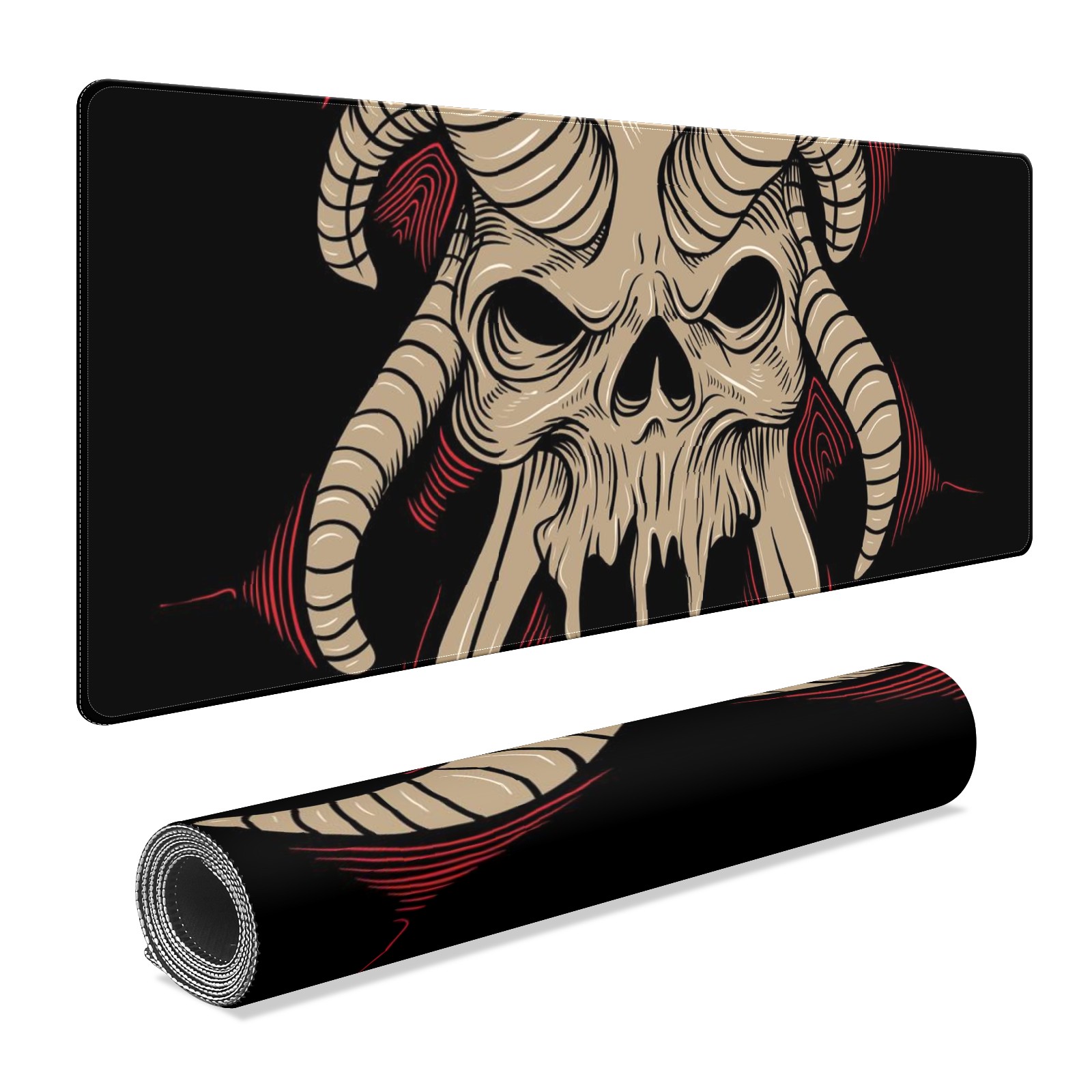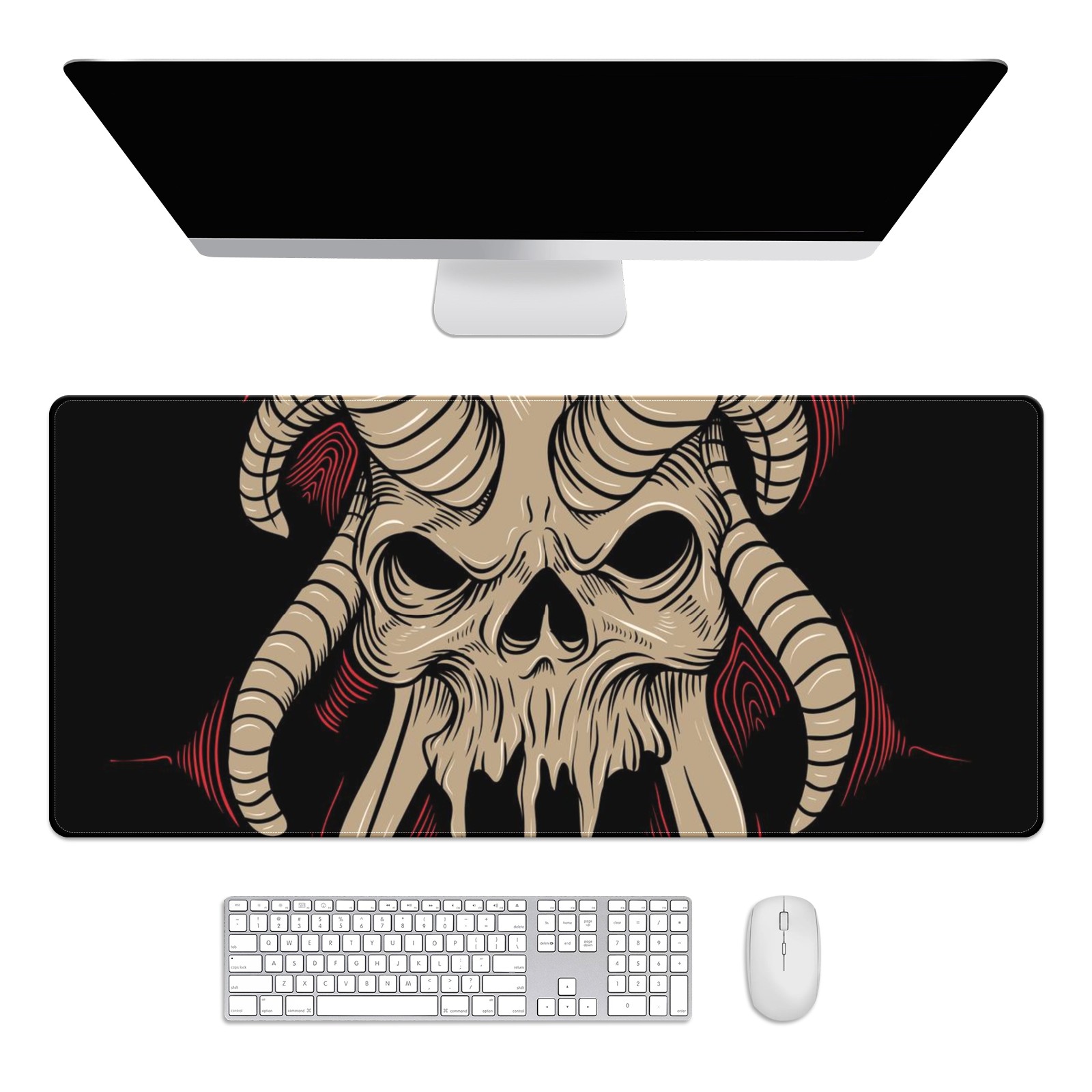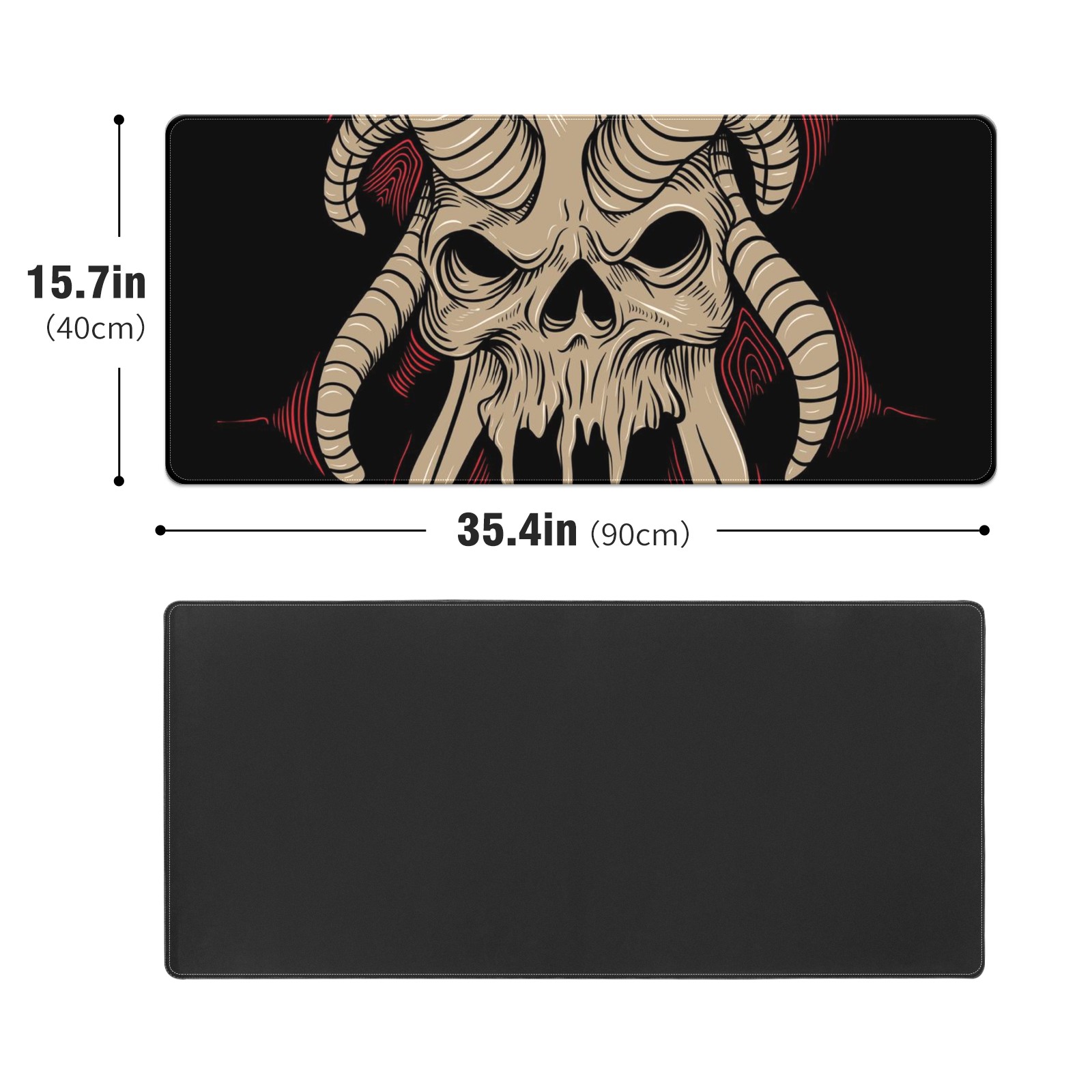Large Mouse Pad for Desktop, Cute Desk Mat Pad Protector for Work & Gaming, Aesthetic Pretty Anti-Slip Laptop Blotter Cover for Office School Home Supplies, Skull Horn Tooth , 35.4inx15.7in