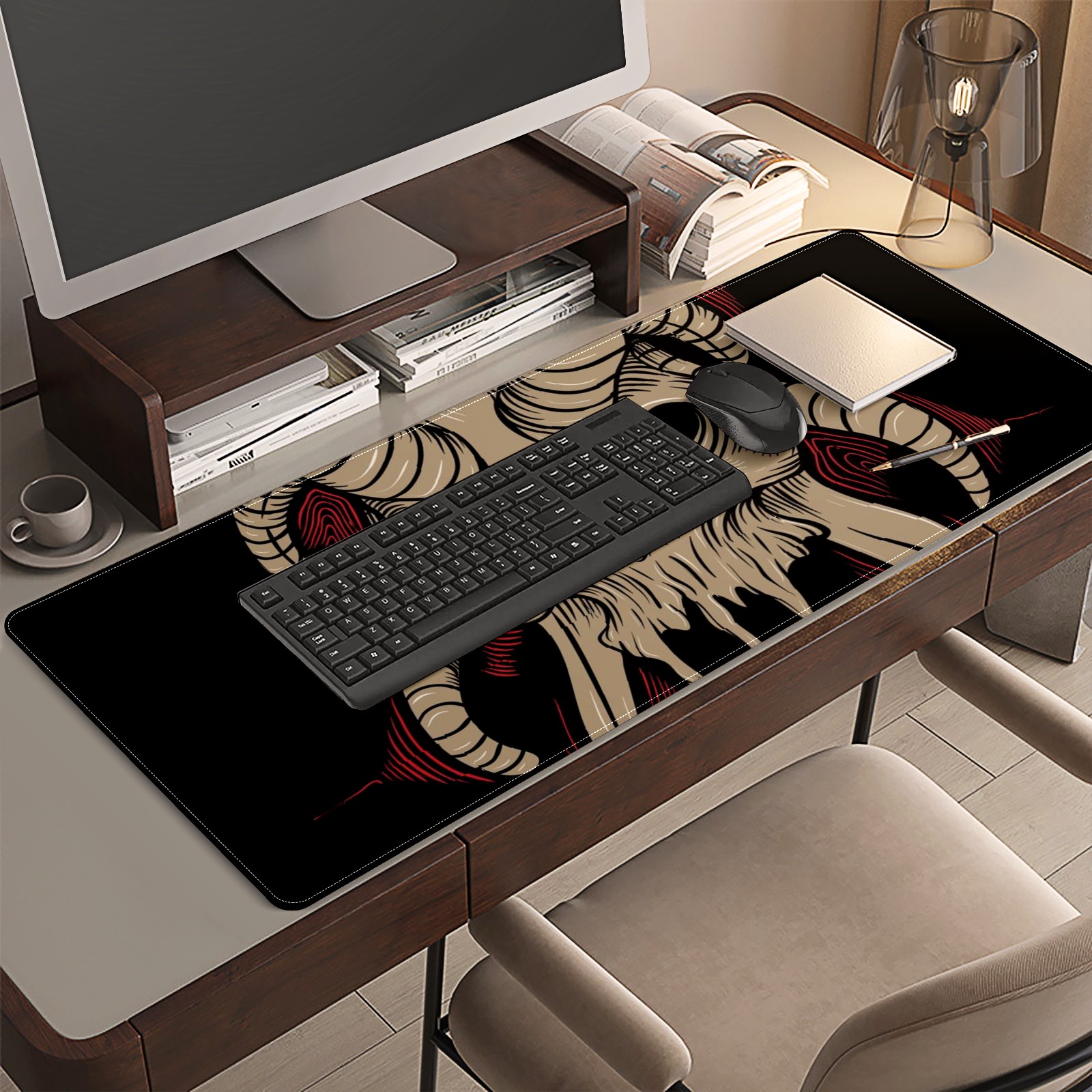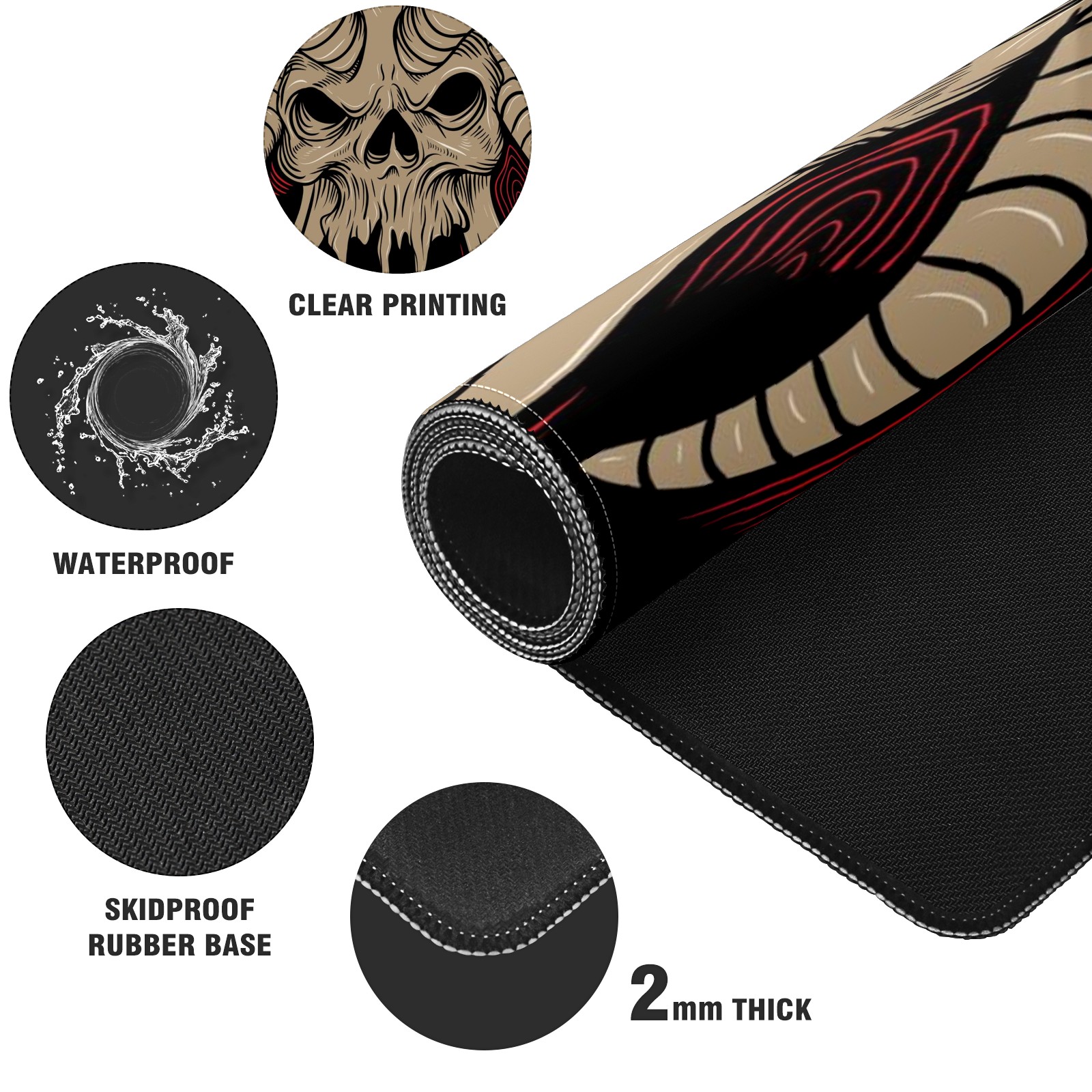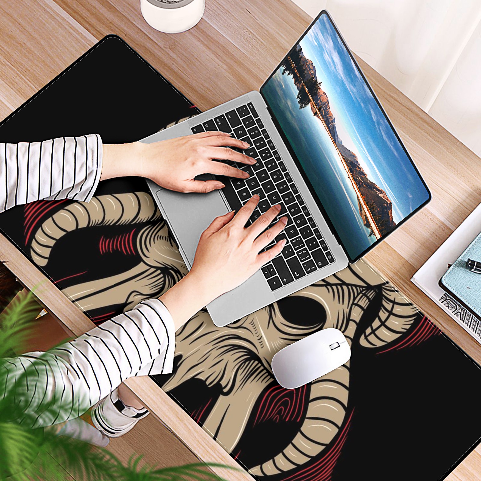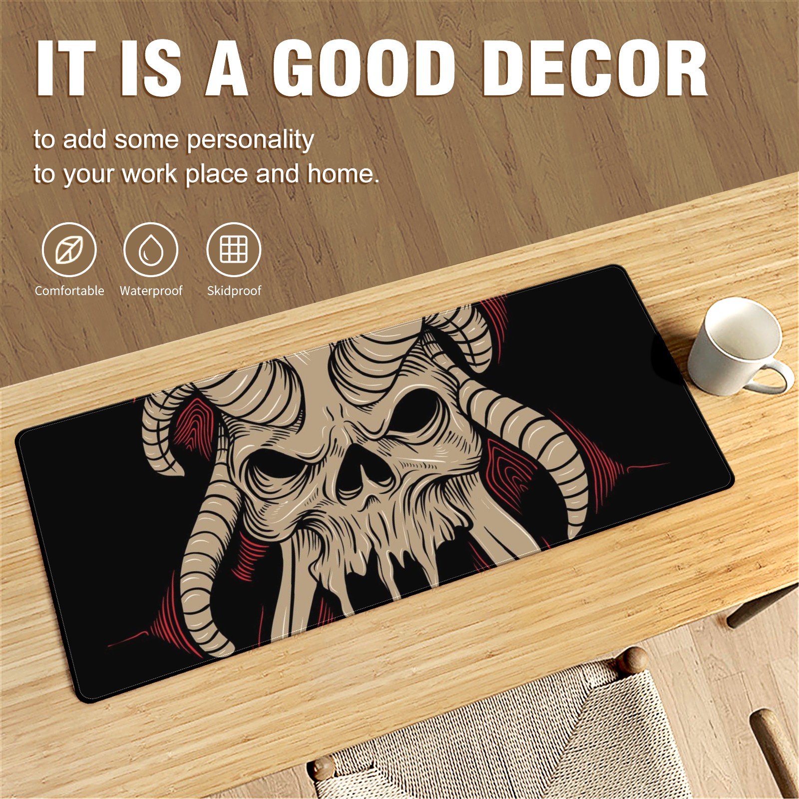 Large Mouse Pad for Desktop, Cute Desk Mat Pad Protector for Work & Gaming, Aesthetic Pretty Anti-Slip Laptop Blotter Cover for Office School Home Supplies, Skull Horn Tooth , 35.4inx15.7in