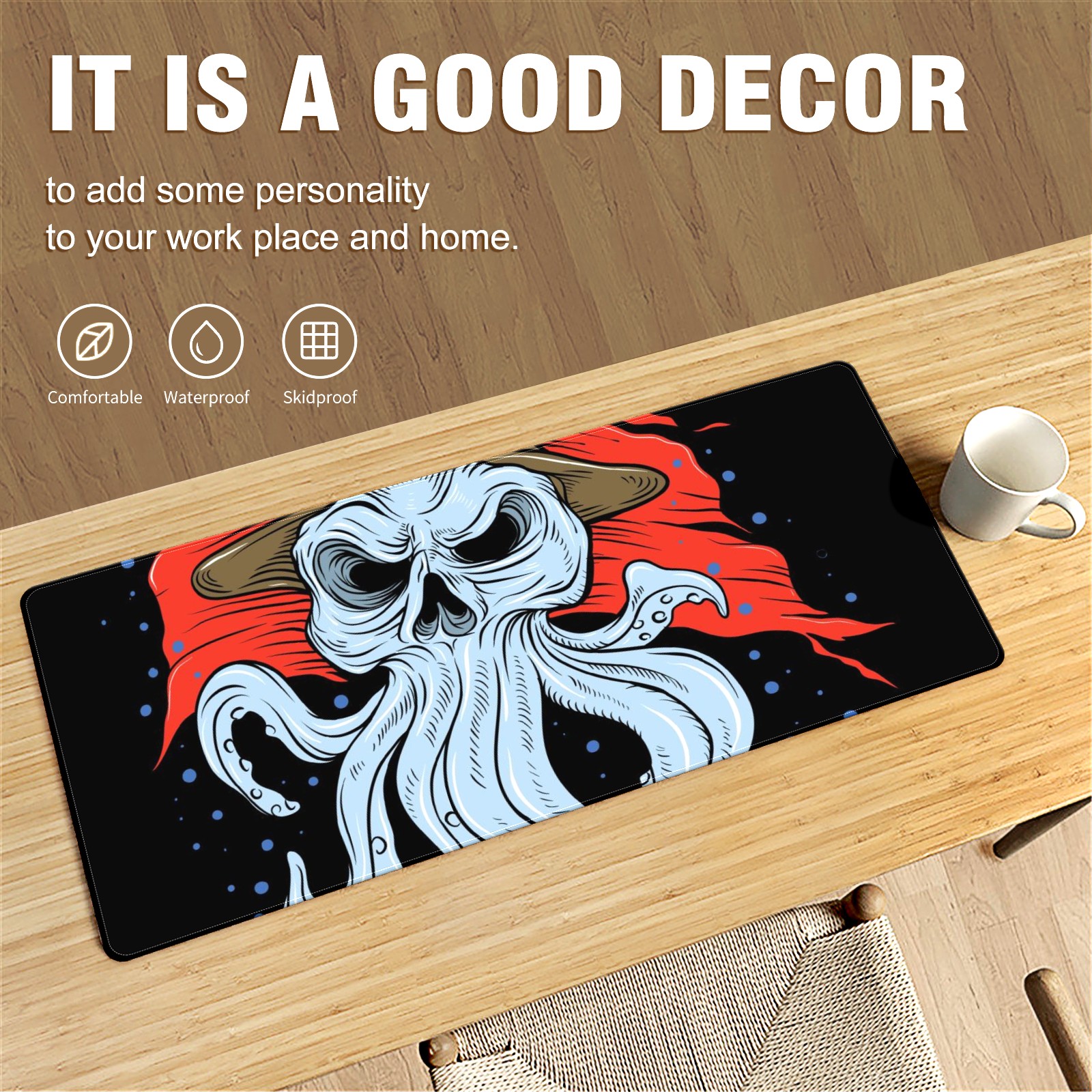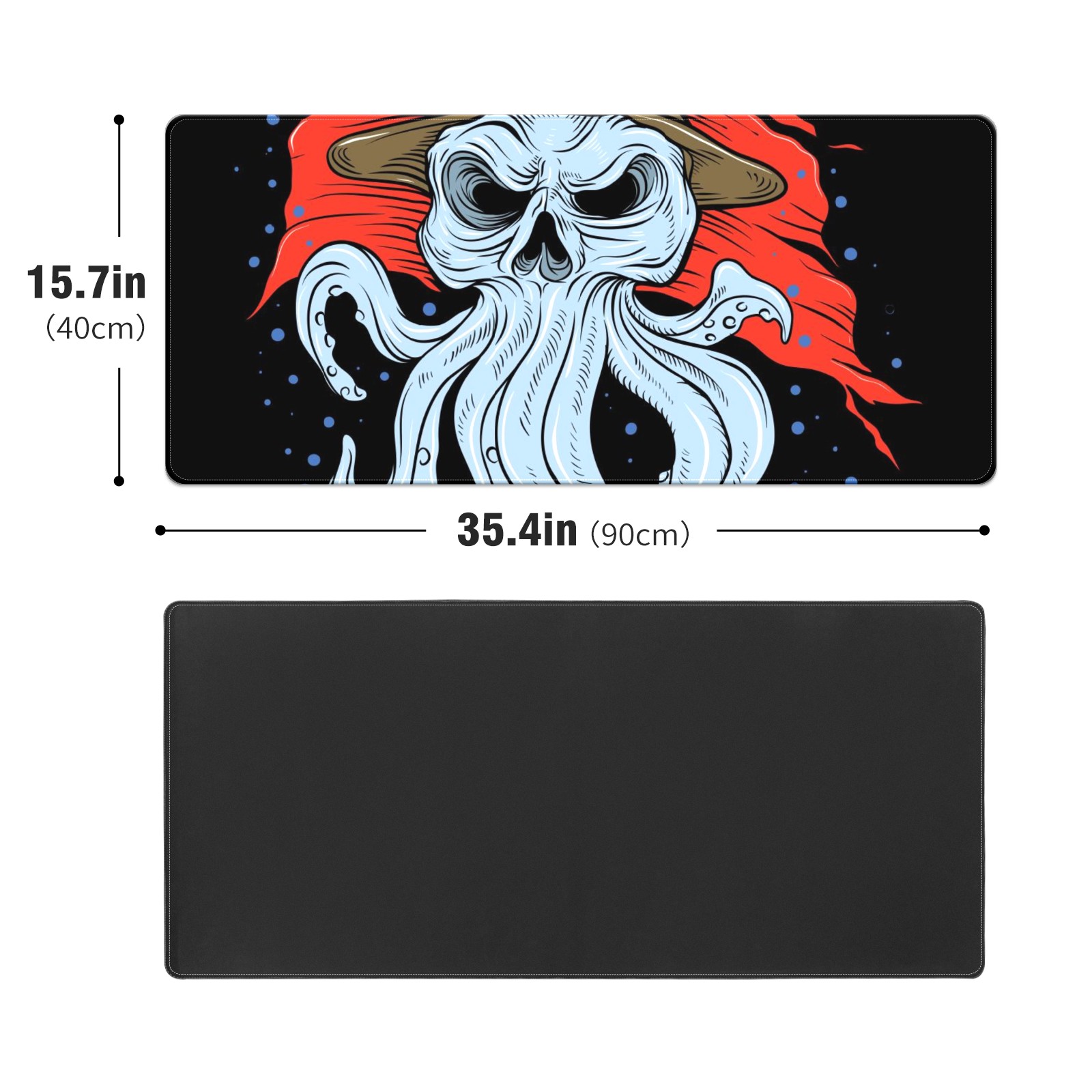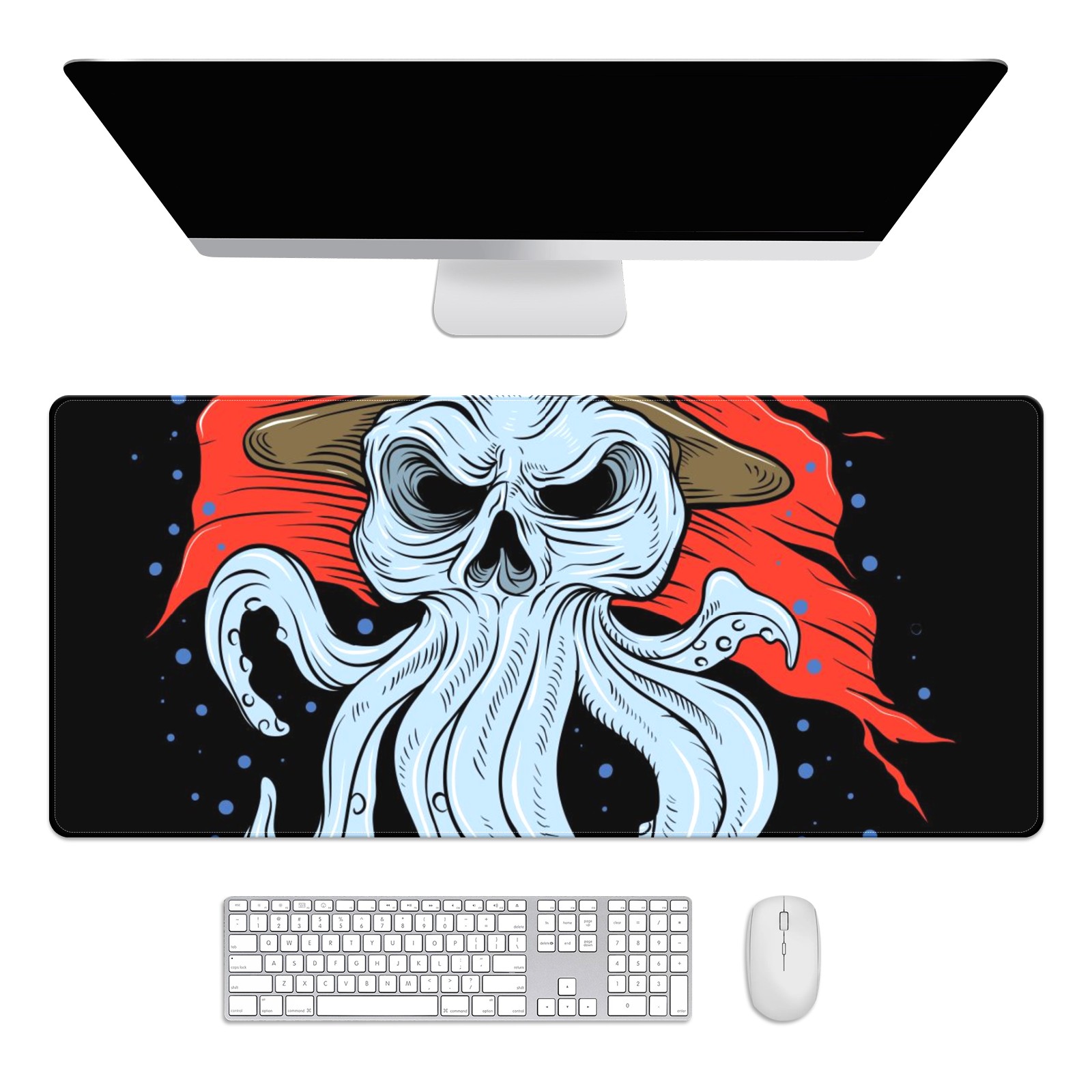 Large Mouse Pad for Desktop, Cute Desk Mat Pad Protector for Work & Gaming, Aesthetic Pretty Anti-Slip Laptop Blotter Cover for Office School Home Supplies, Octopus Skull Hat , 35.4inx15.7in