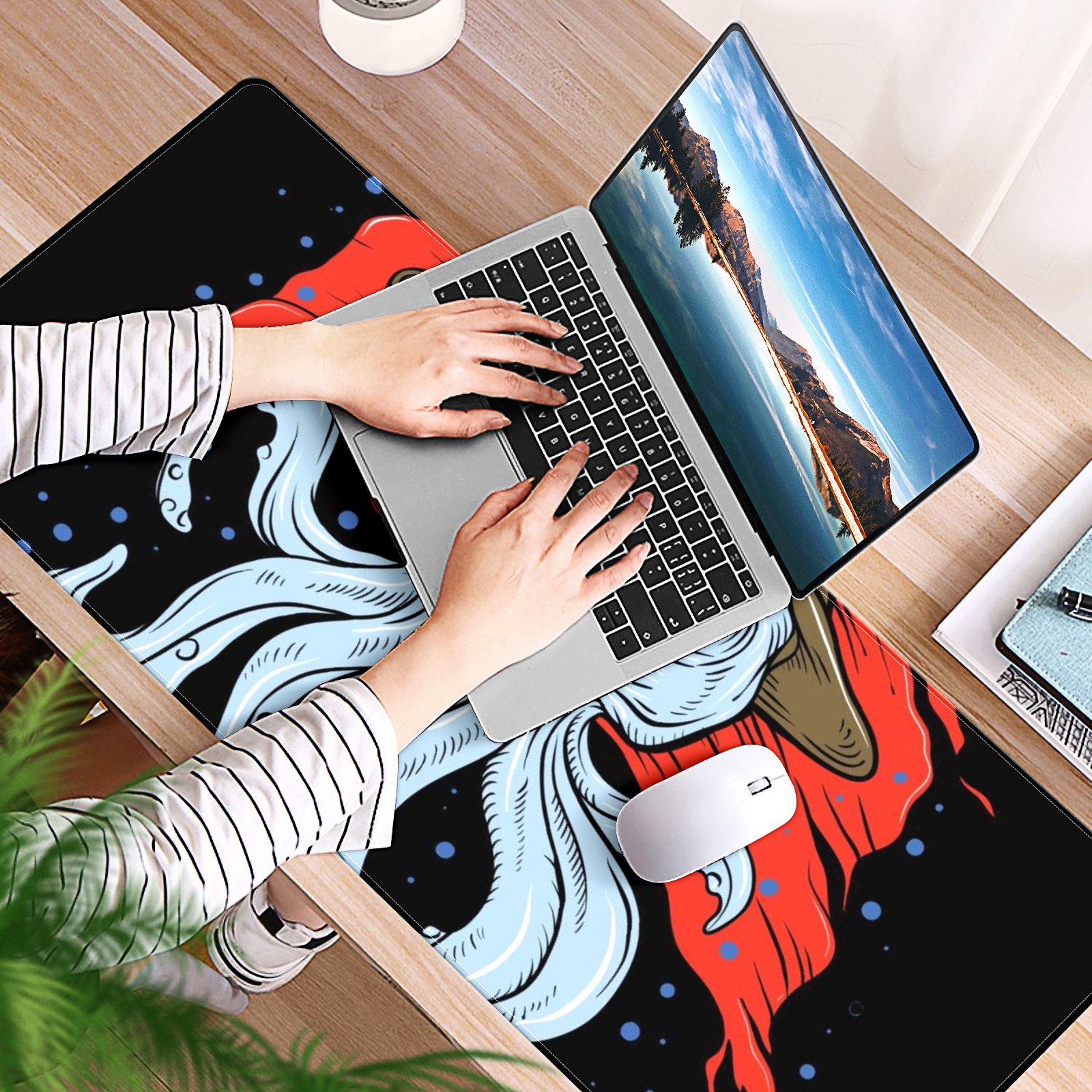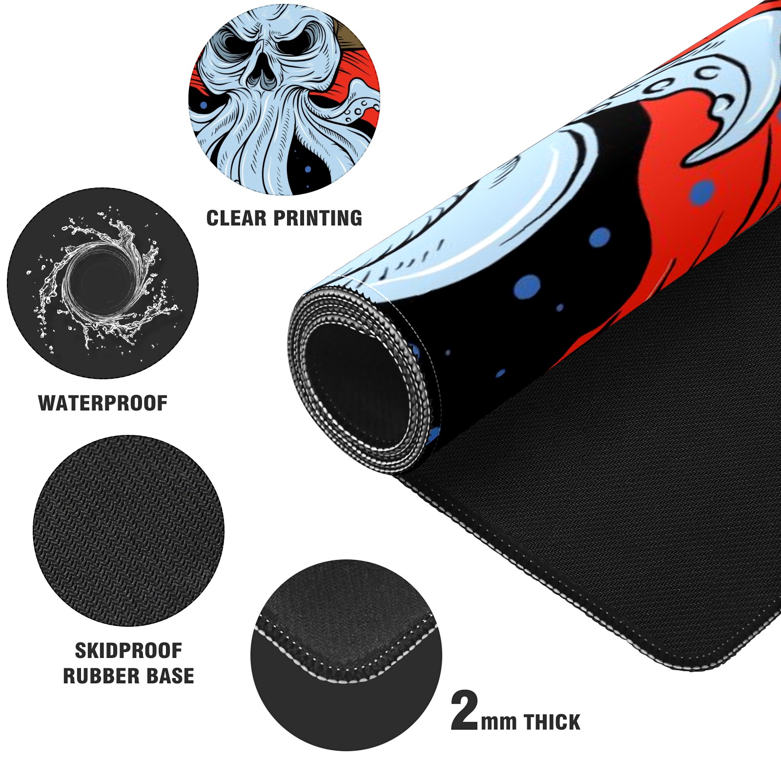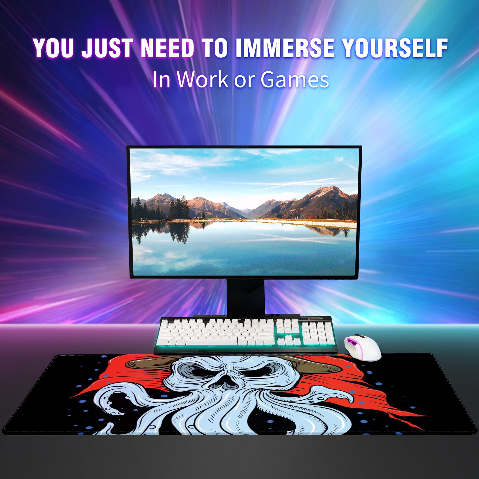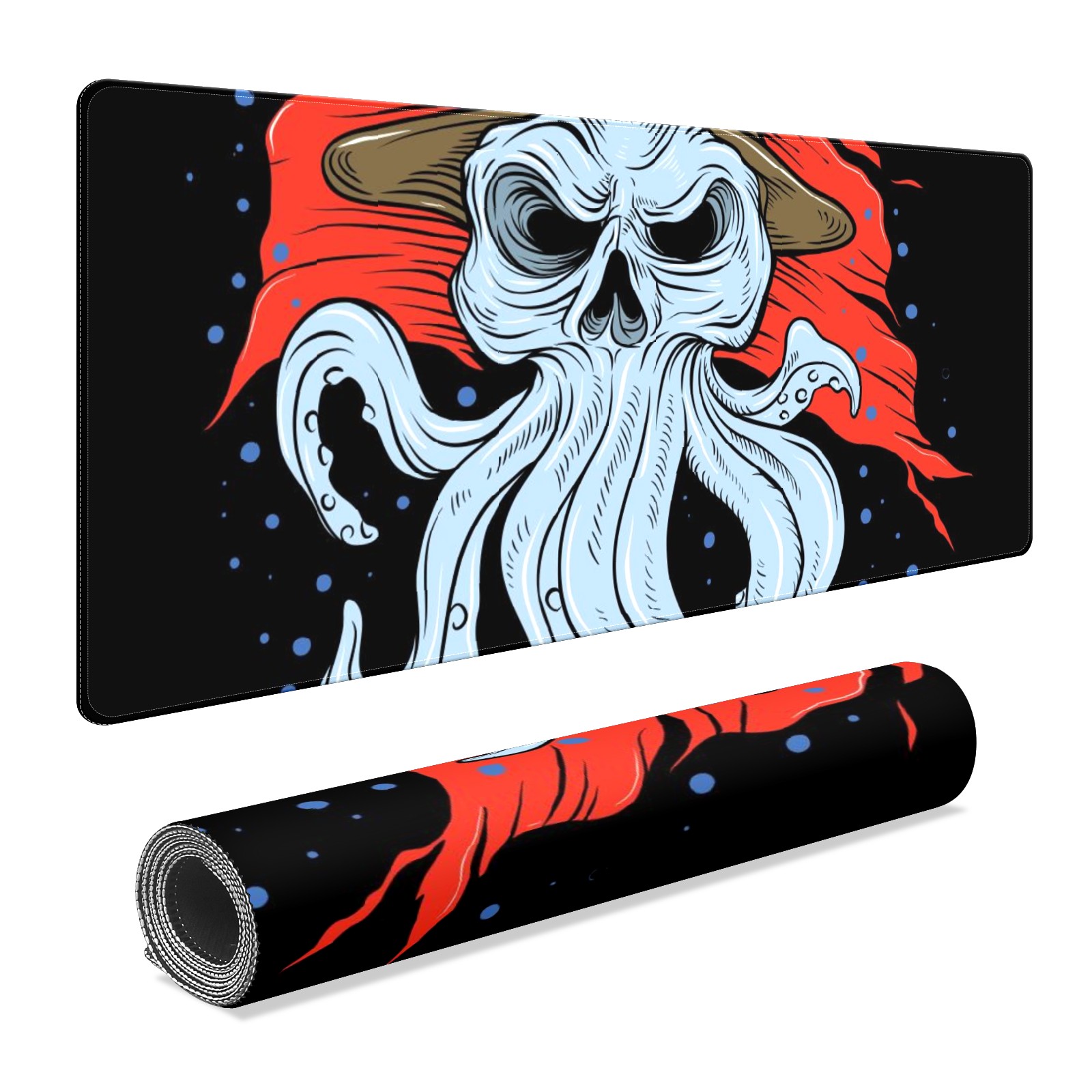 Large Mouse Pad for Desktop, Cute Desk Mat Pad Protector for Work & Gaming, Aesthetic Pretty Anti-Slip Laptop Blotter Cover for Office School Home Supplies, Octopus Skull Hat , 35.4inx15.7in