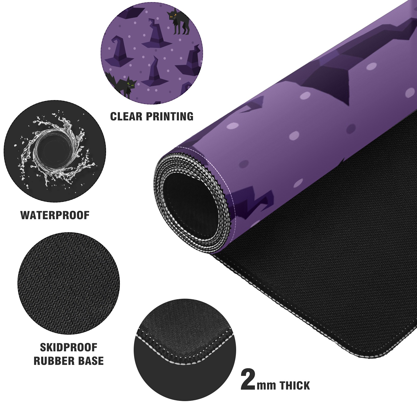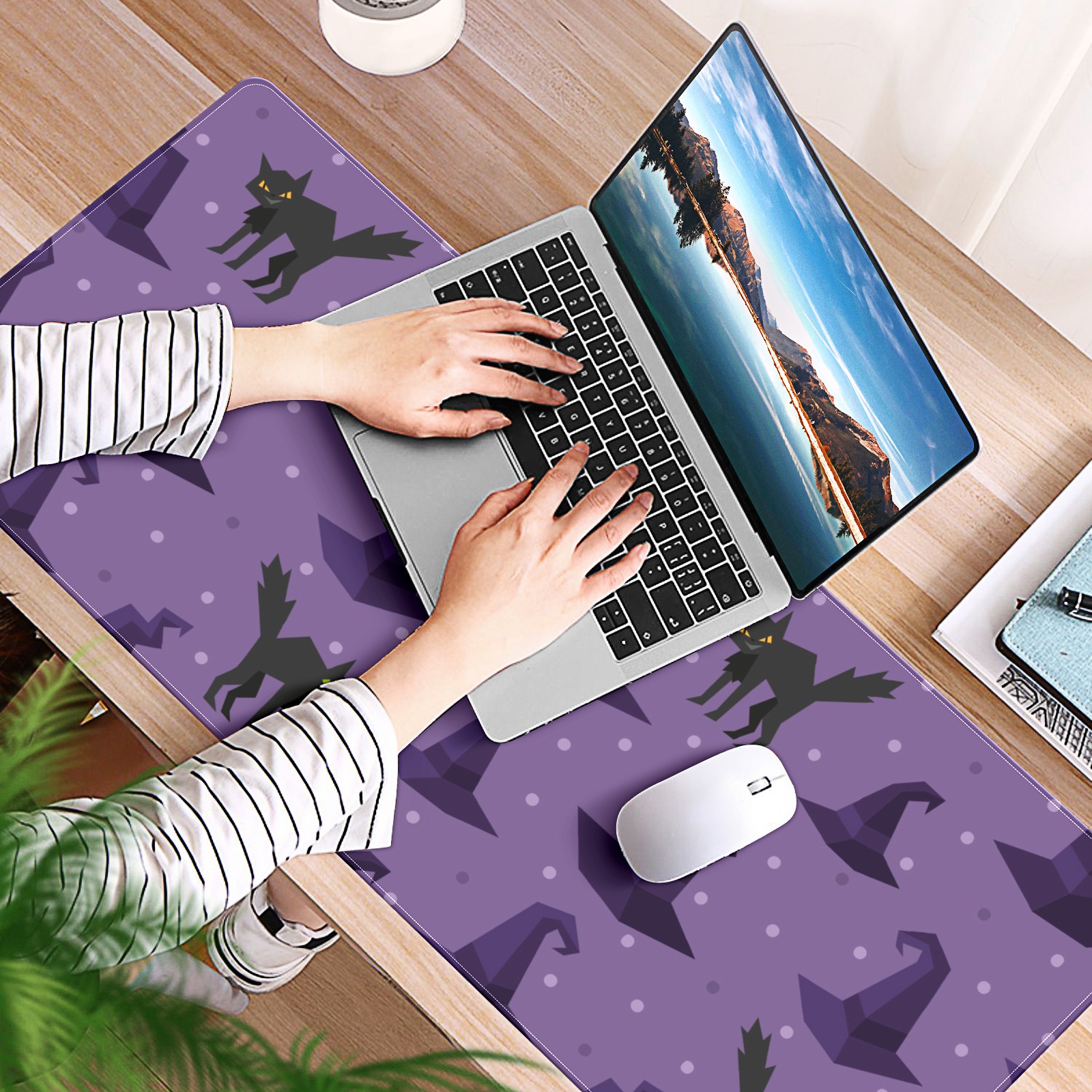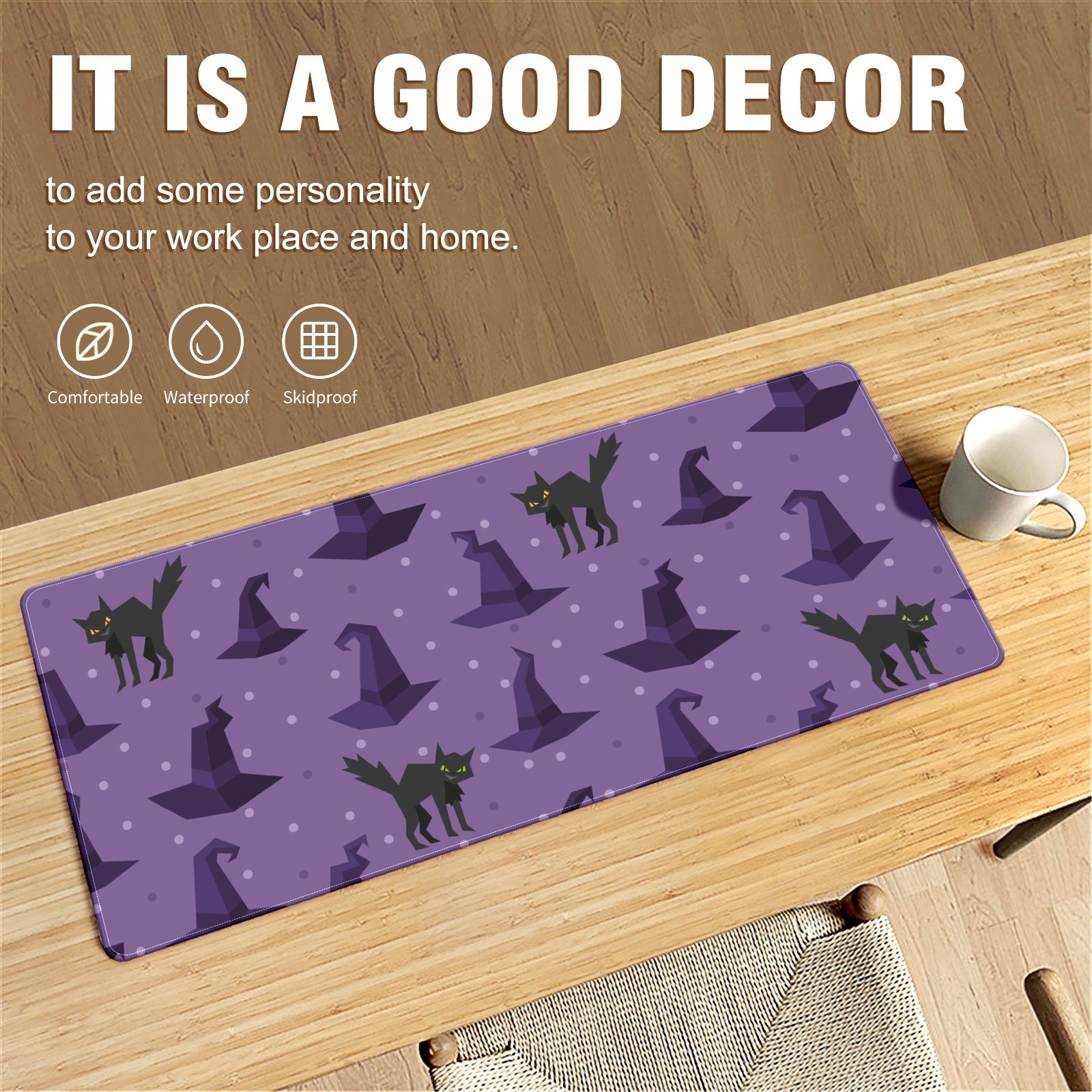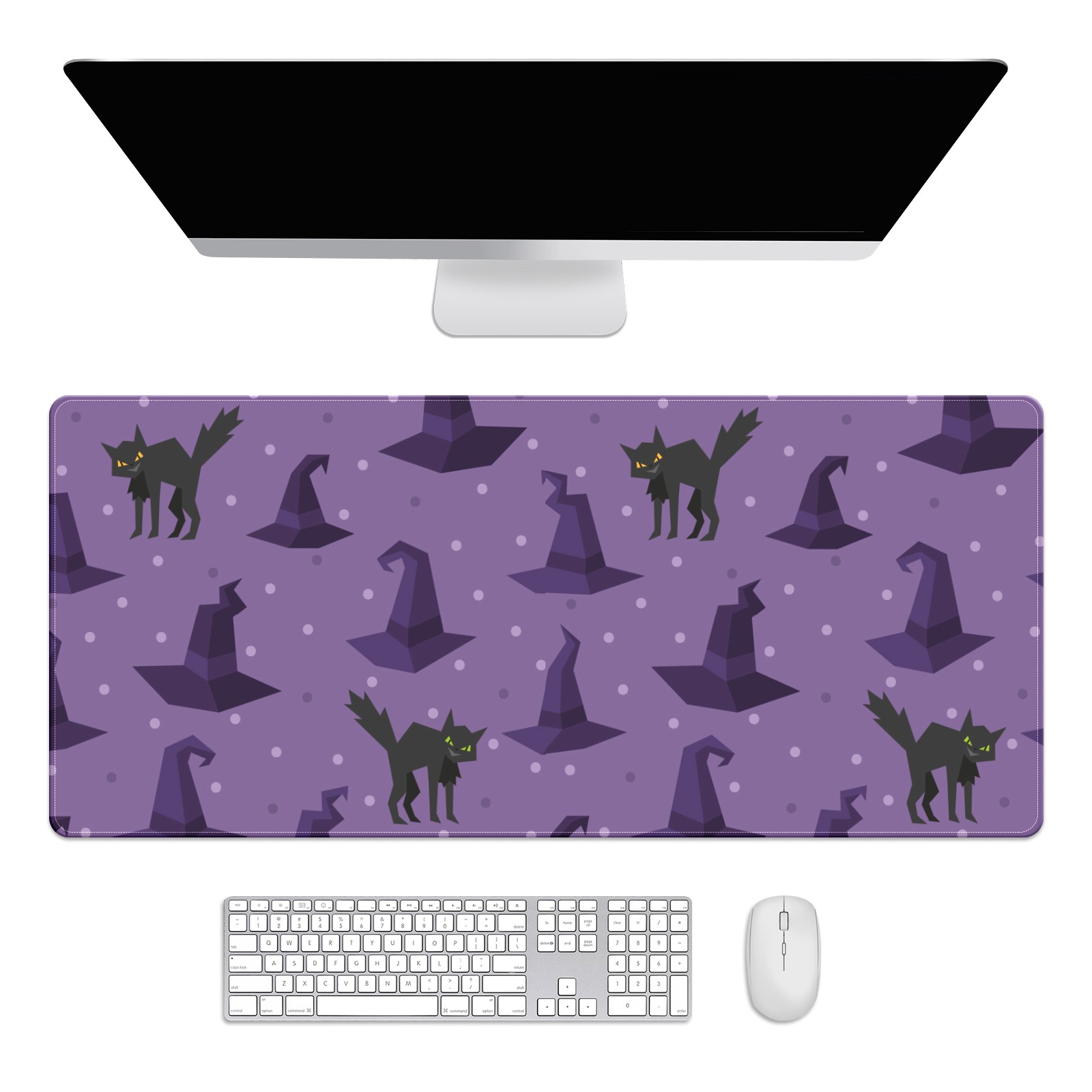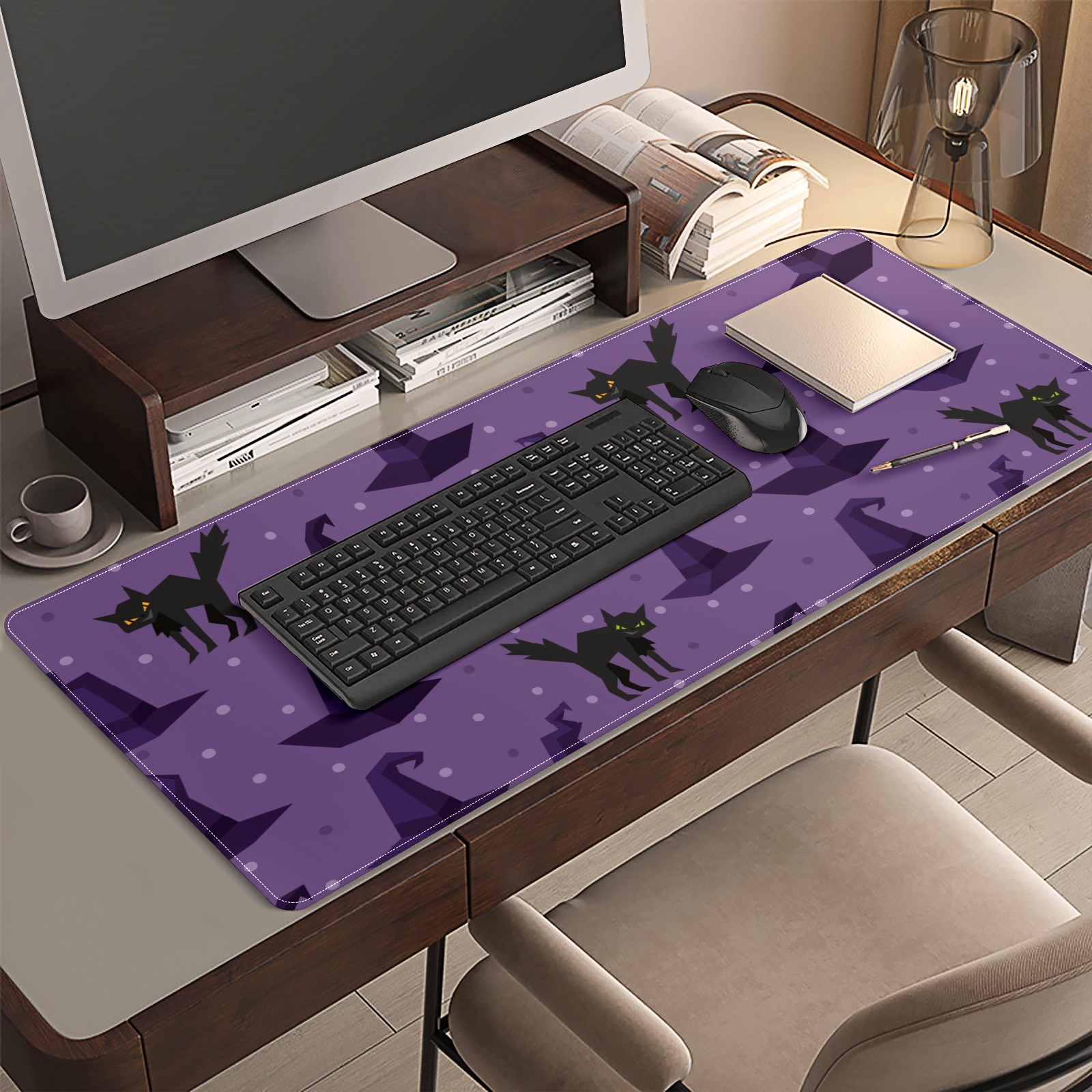 Large Mouse Pad for Desktop, Cute Desk Mat Pad Protector for Work & Gaming, Aesthetic Pretty Anti-Slip Laptop Blotter Cover for Office School Home Supplies, Black Cat , 35.4inx15.7in