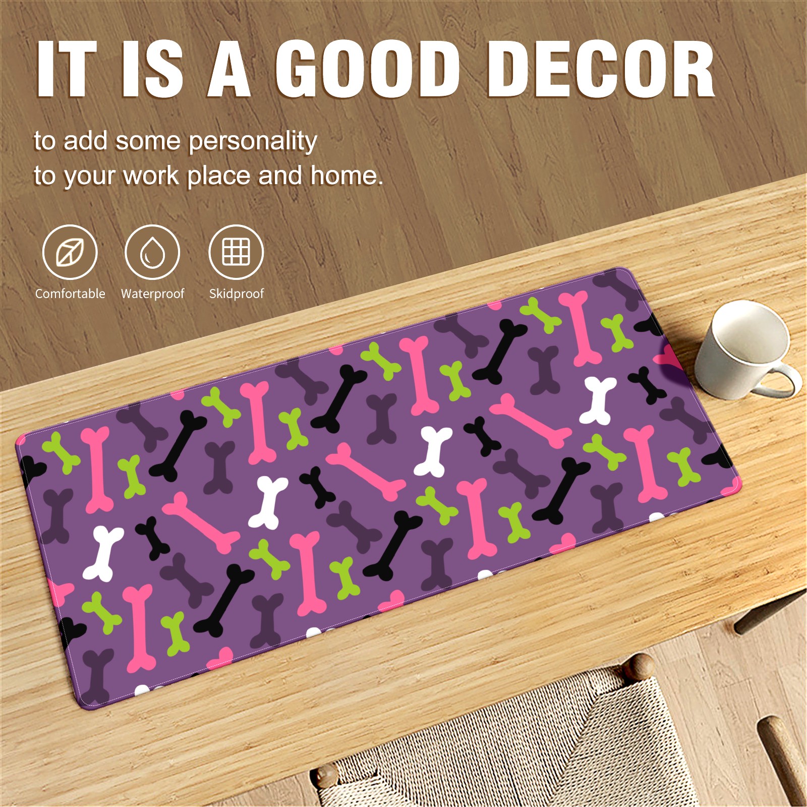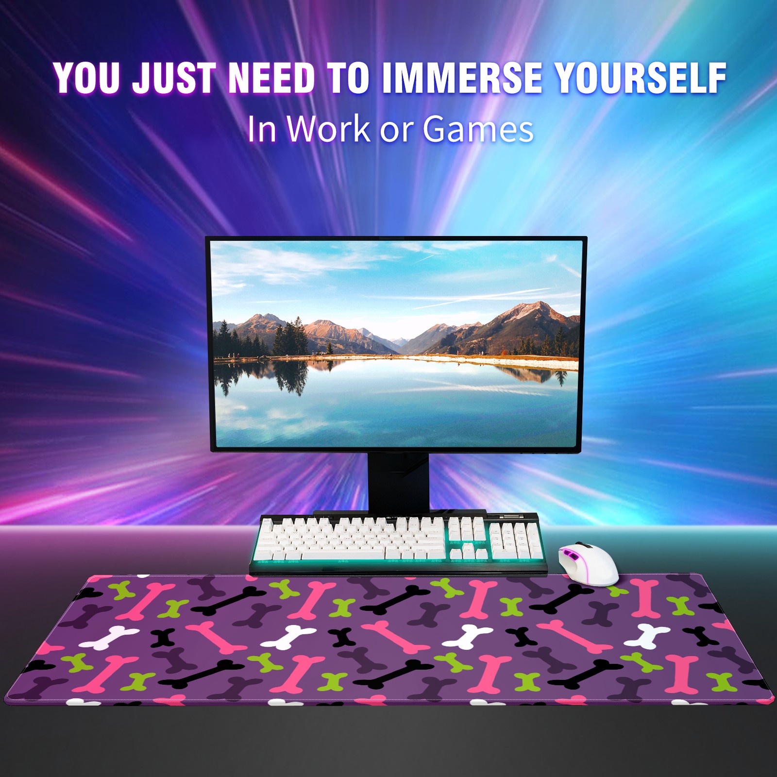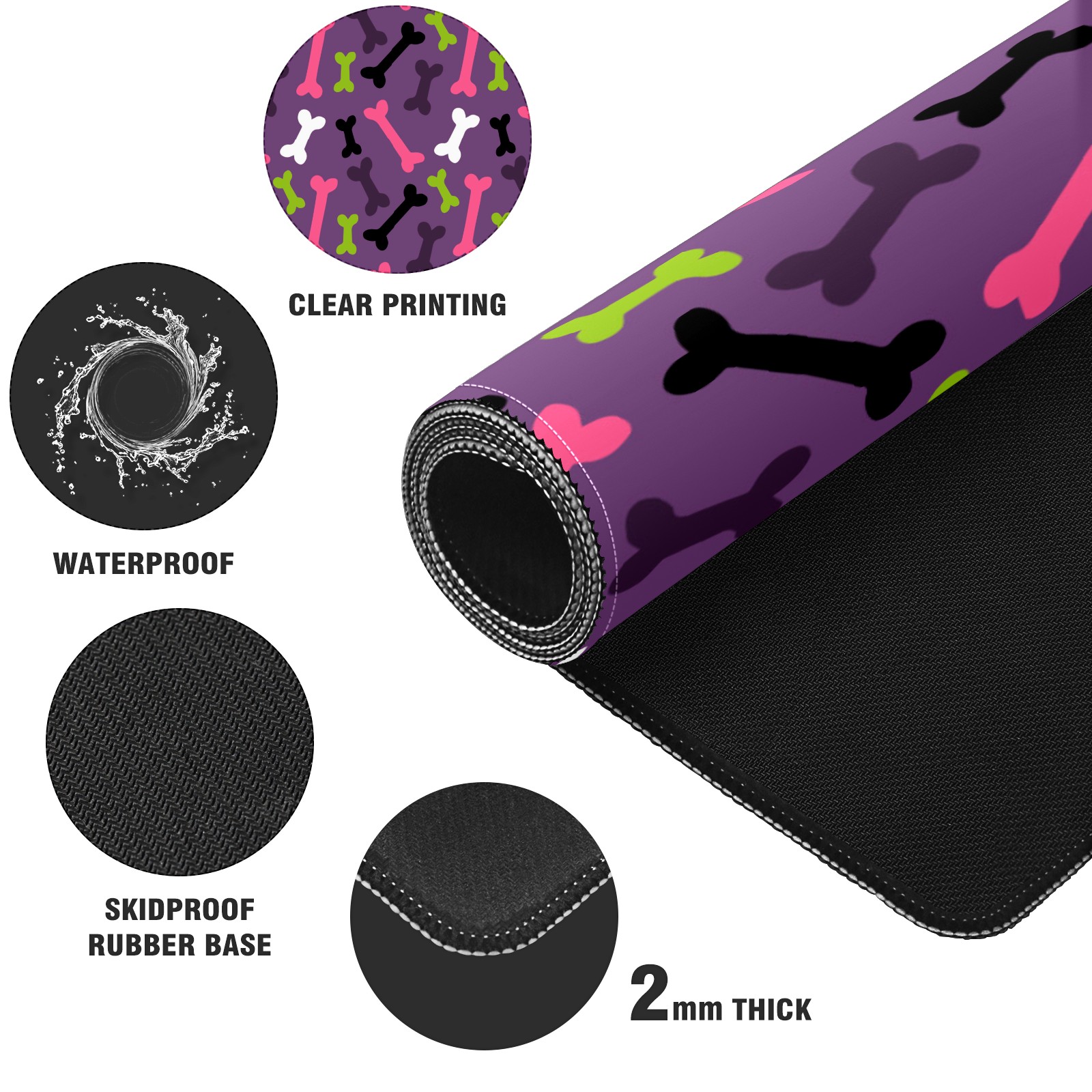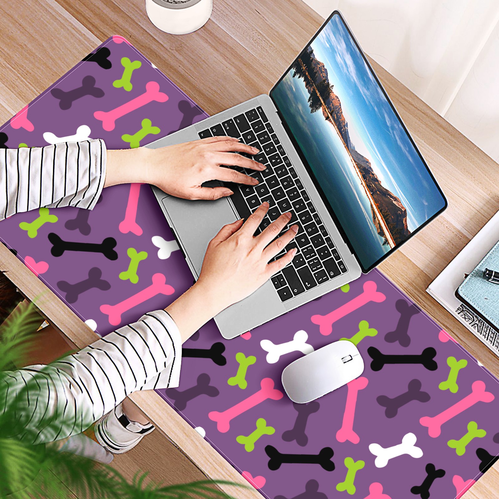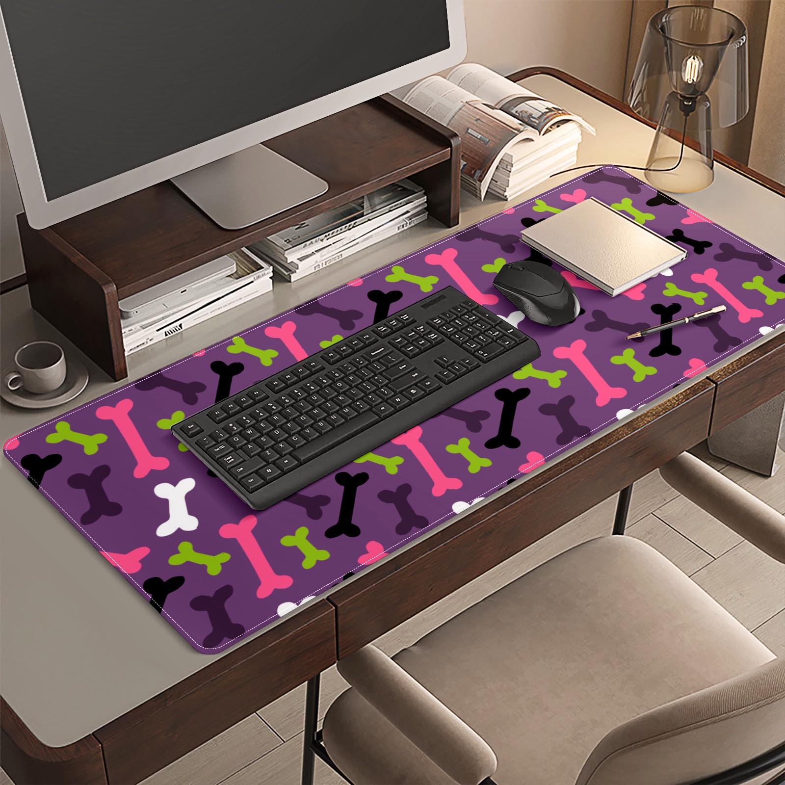 Large Mouse Pad for Desktop, Cute Desk Mat Pad Protector for Work & Gaming, Aesthetic Pretty Anti-Slip Laptop Blotter Cover for Office School Home Supplies, Bone Pattern , 35.4inx15.7in