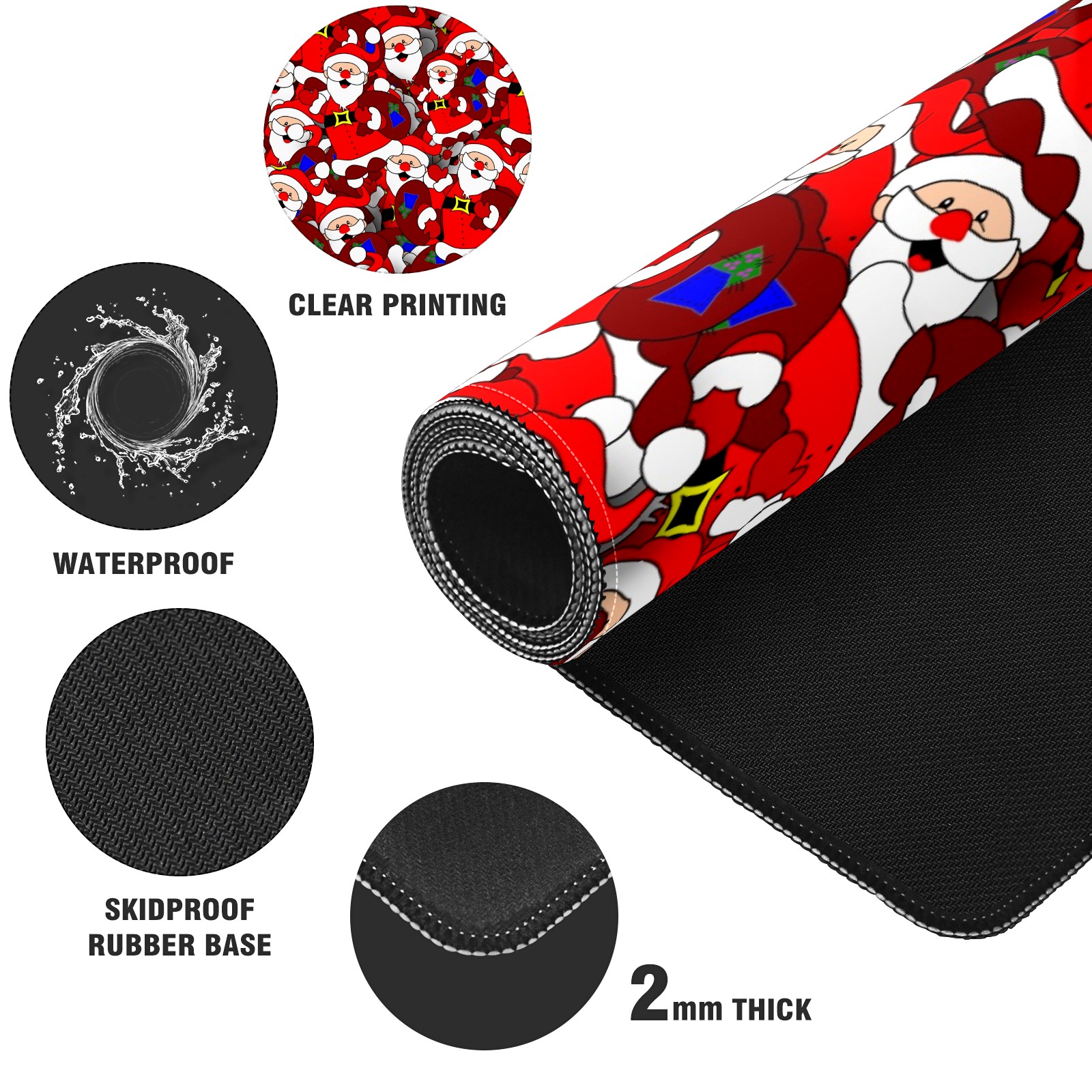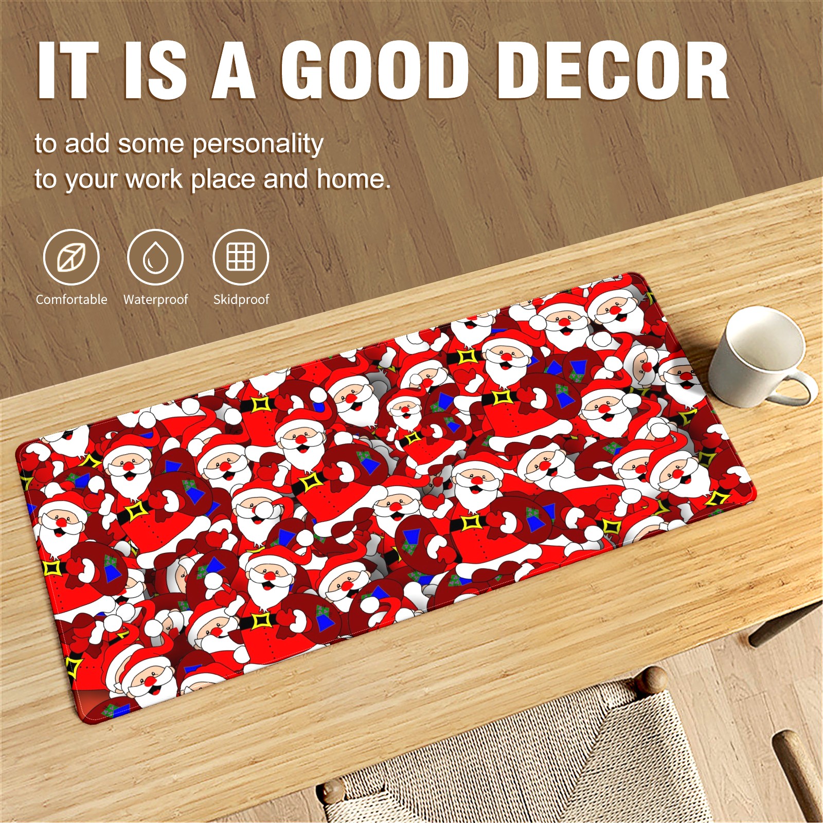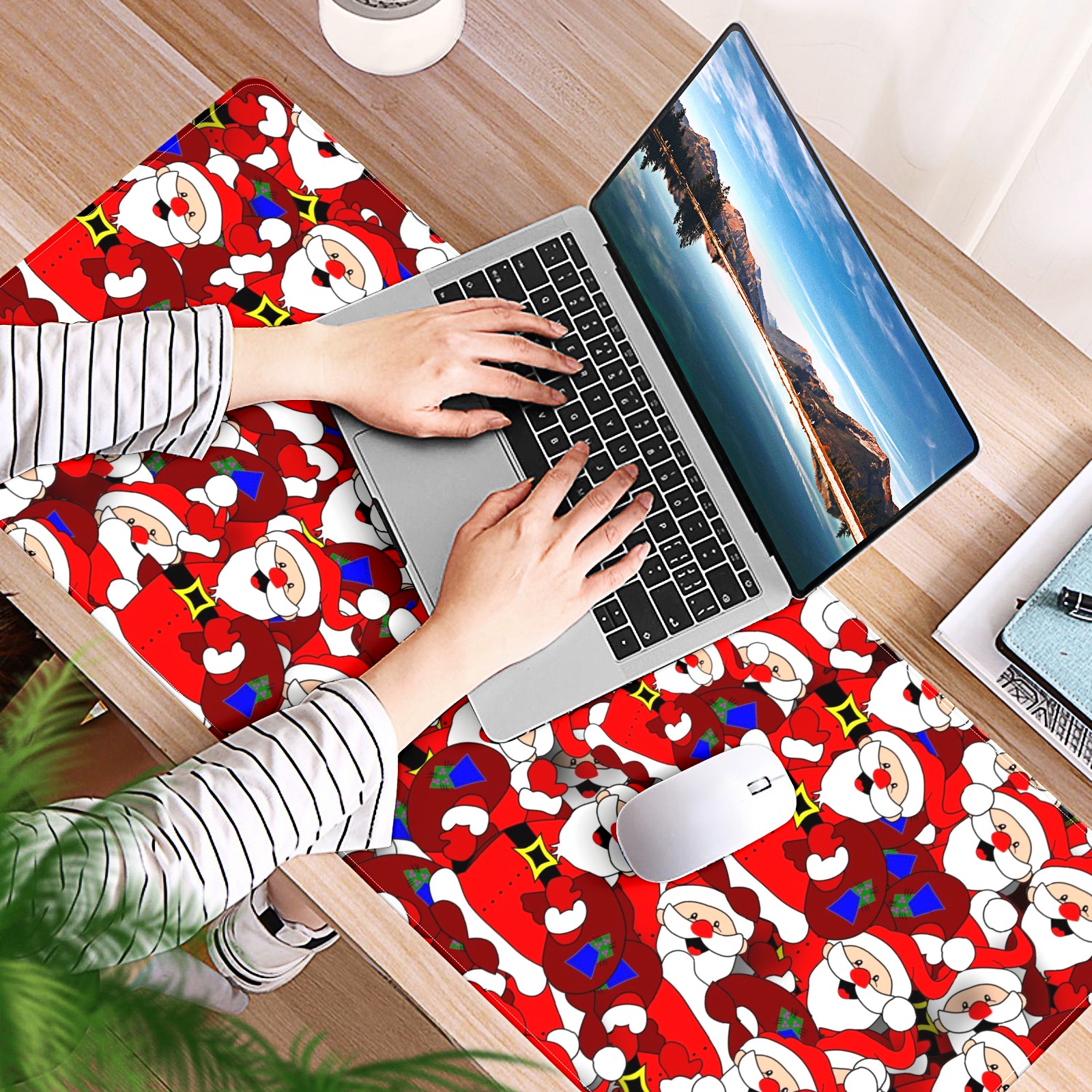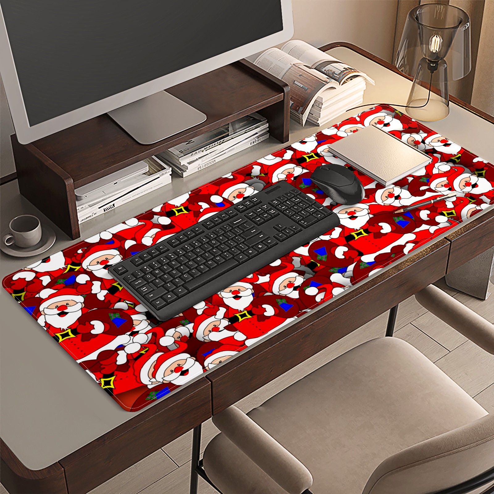 Large Mouse Pad for Desktop, Cute Desk Mat Pad Protector for Work & Gaming, Aesthetic Pretty Anti-Slip Laptop Blotter Cover for Office School Home Supplies, Santa Claus , 35.4inx15.7in