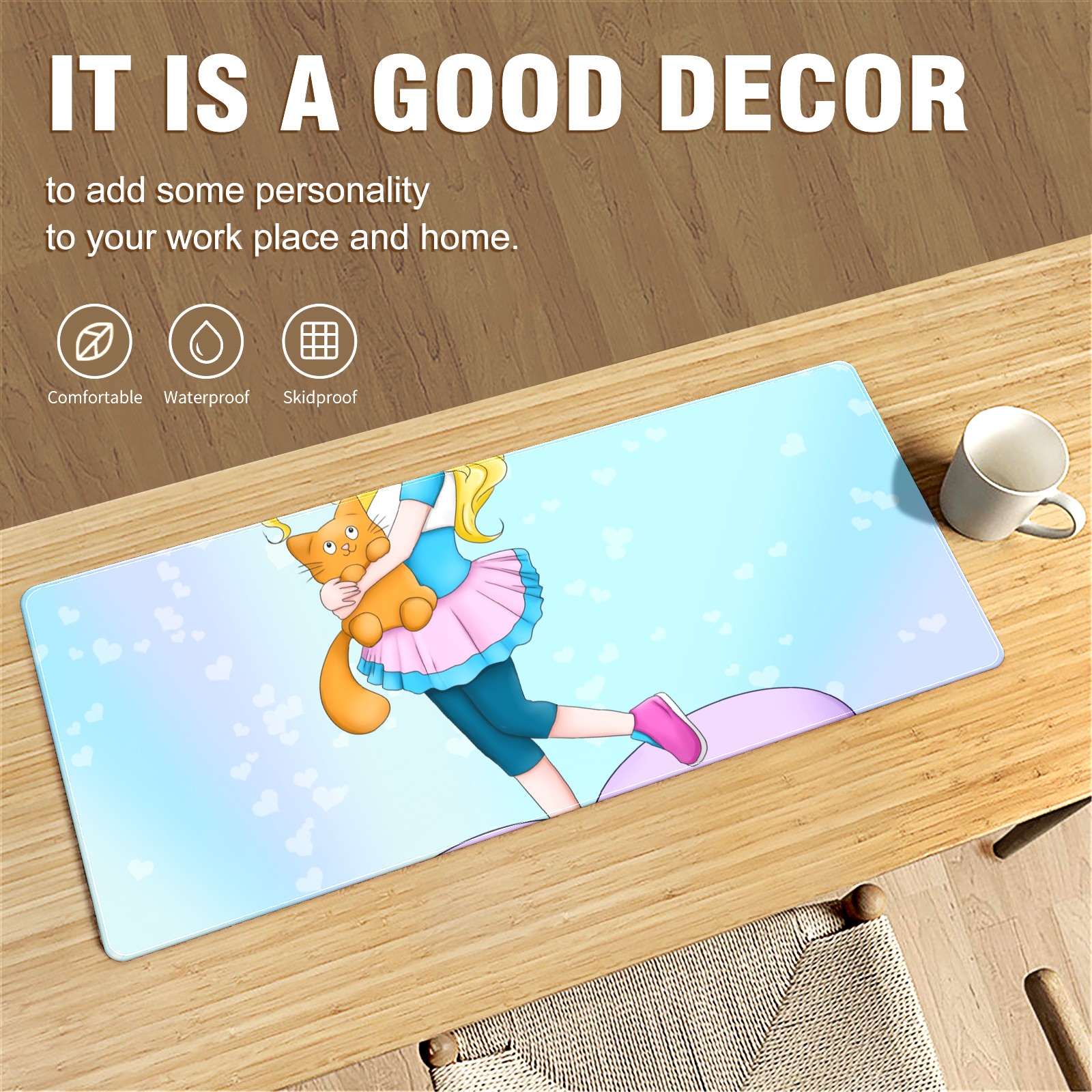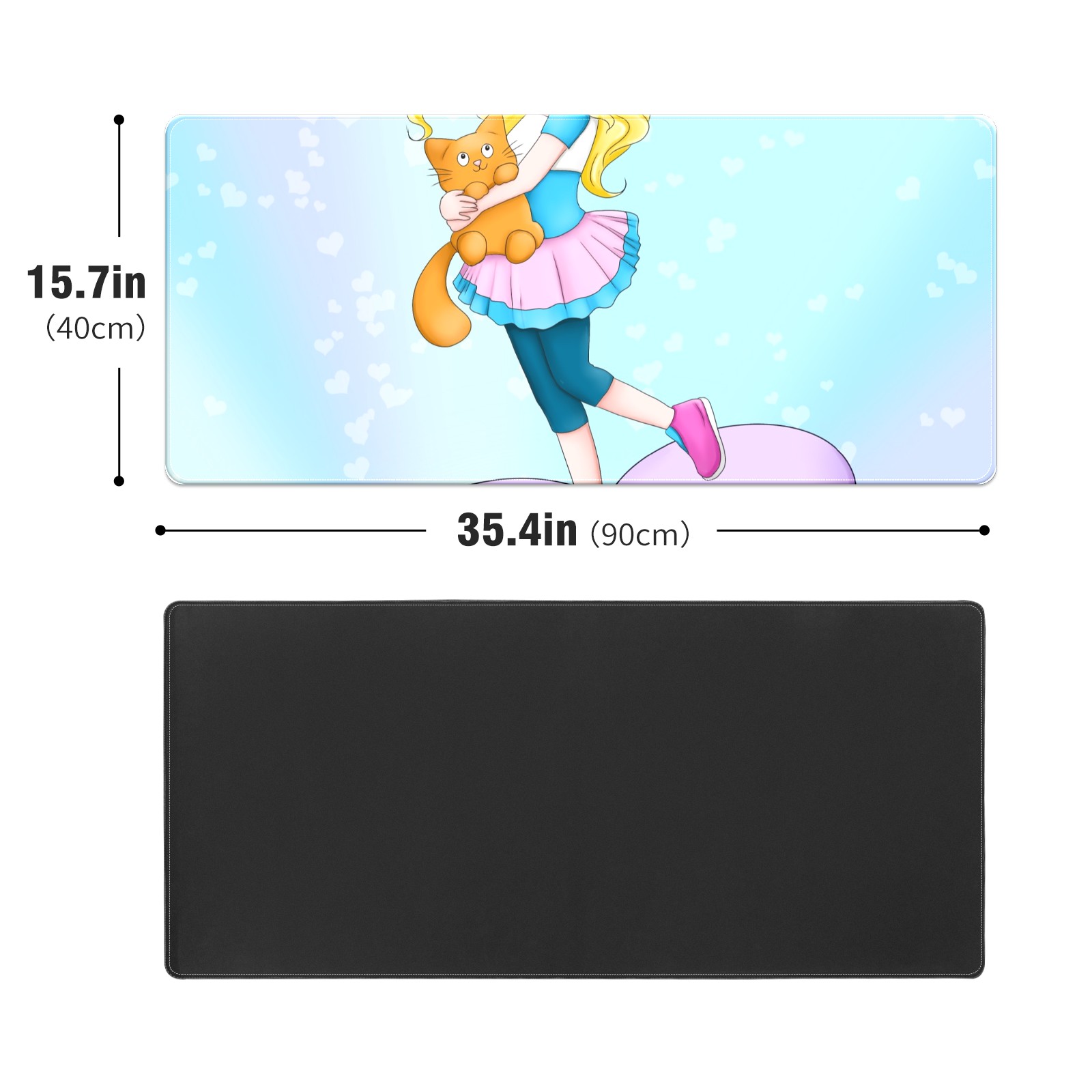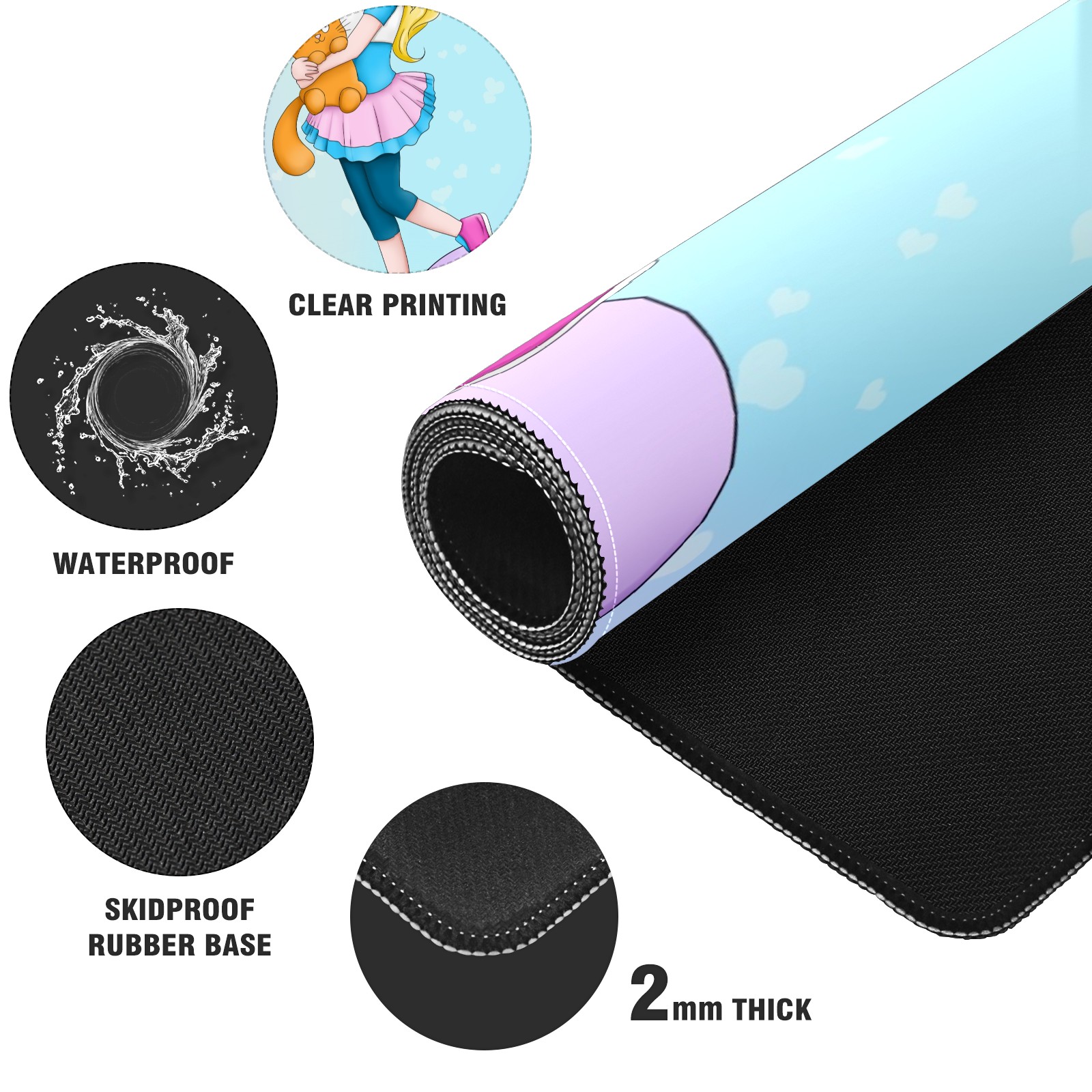 Large Mouse Pad for Desktop, Cute Desk Mat Pad Protector for Work & Gaming, Aesthetic Pretty Anti-Slip Laptop Blotter Cover for Office School Home Supplies, Blond Girl , 35.4inx15.7in