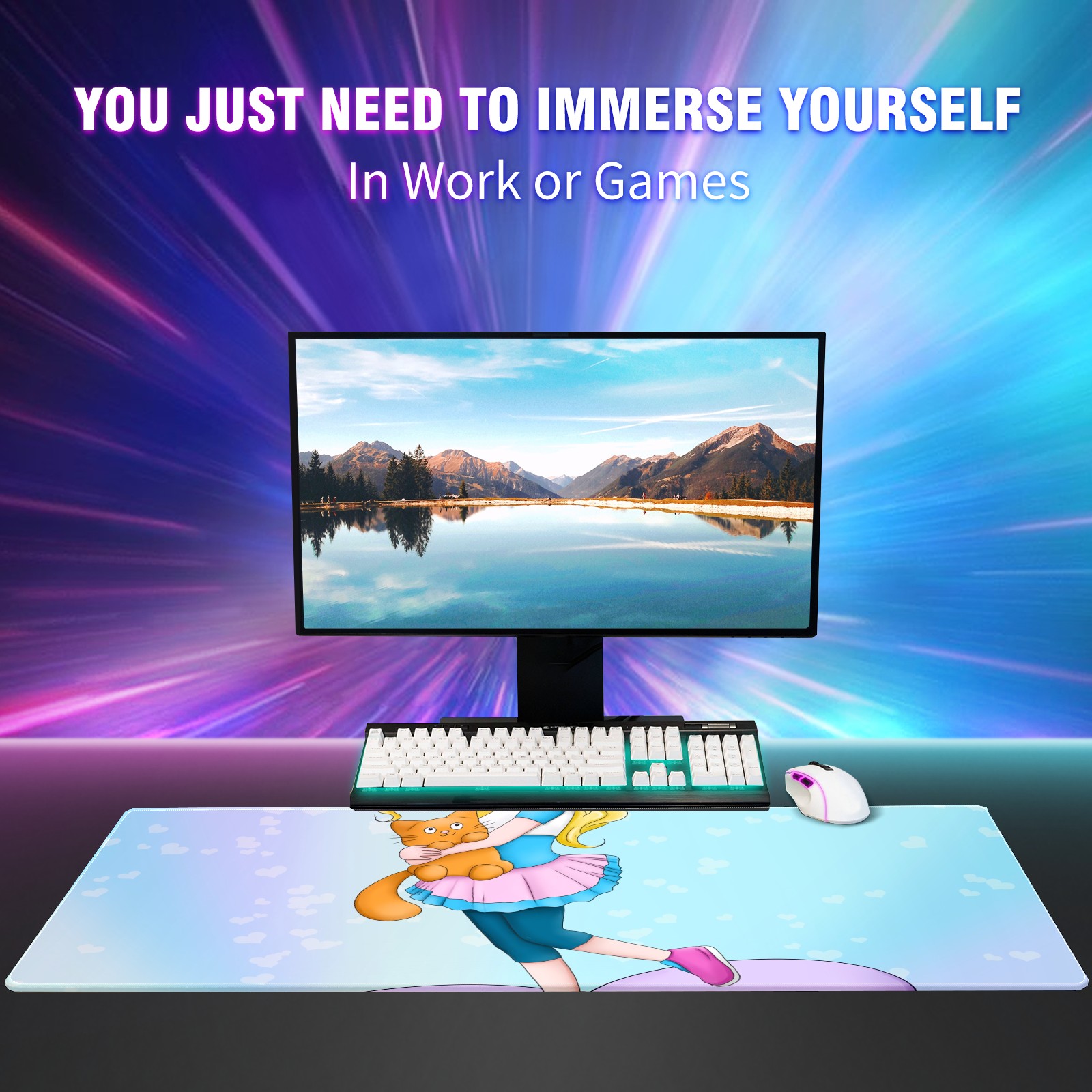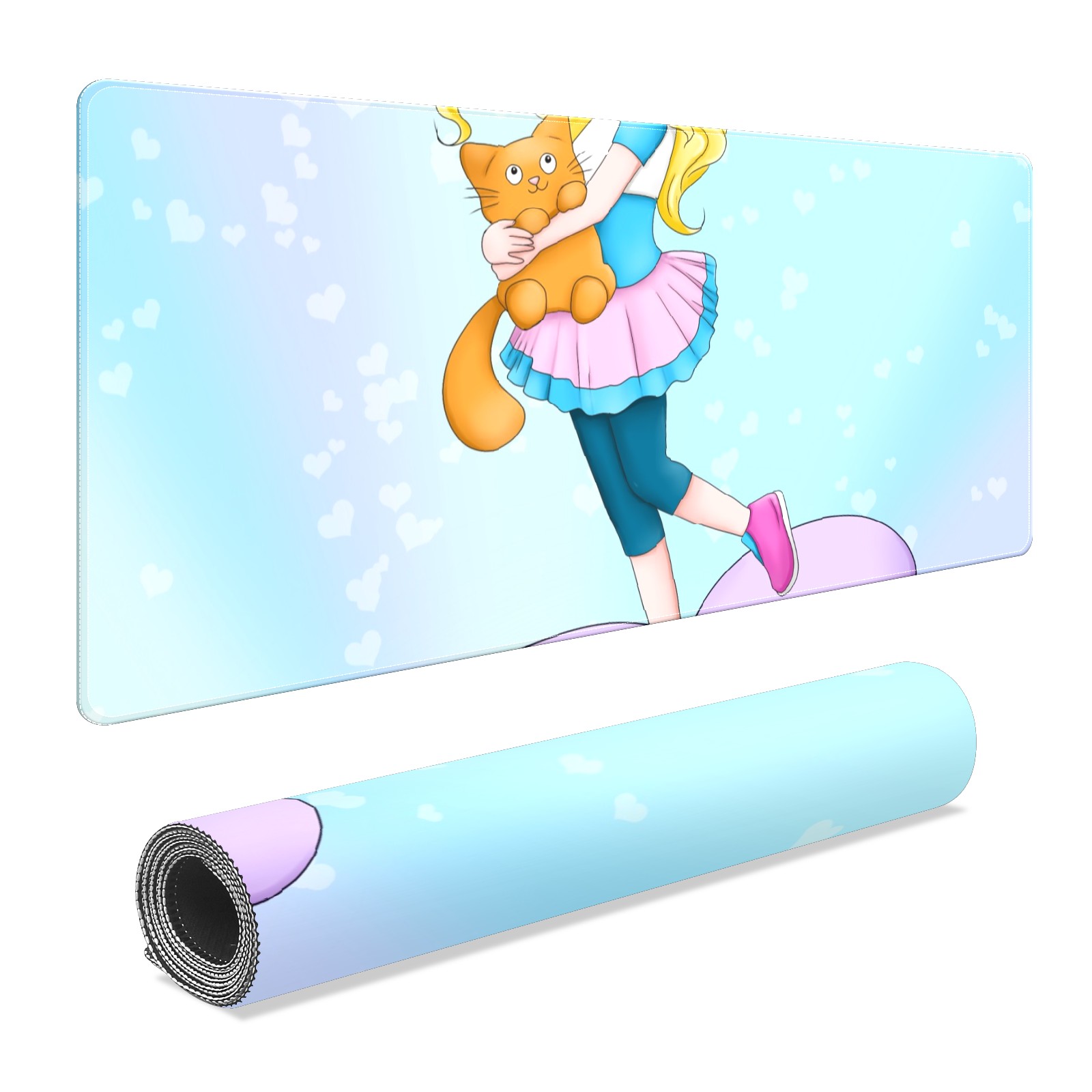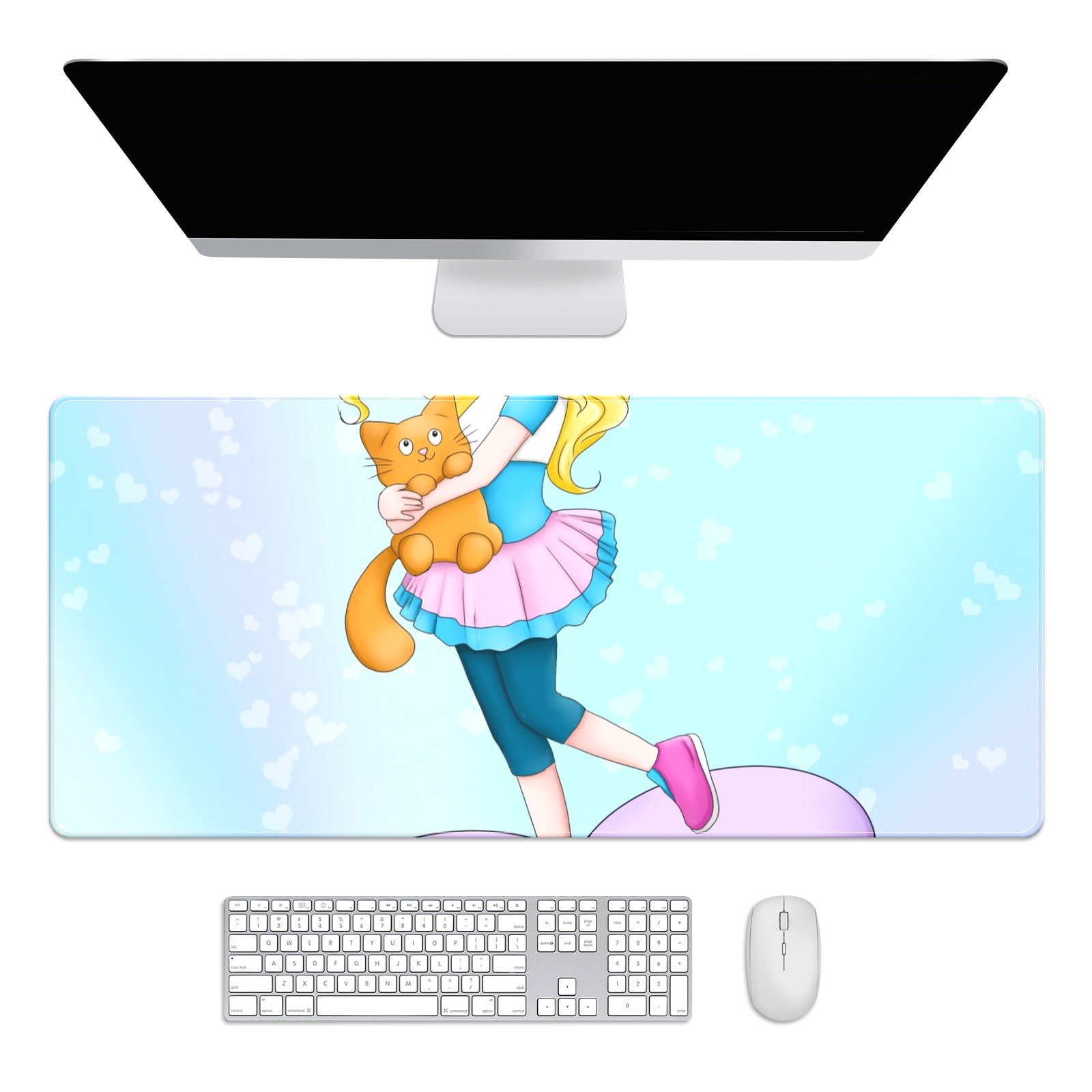 Large Mouse Pad for Desktop, Cute Desk Mat Pad Protector for Work & Gaming, Aesthetic Pretty Anti-Slip Laptop Blotter Cover for Office School Home Supplies, Blond Girl , 35.4inx15.7in