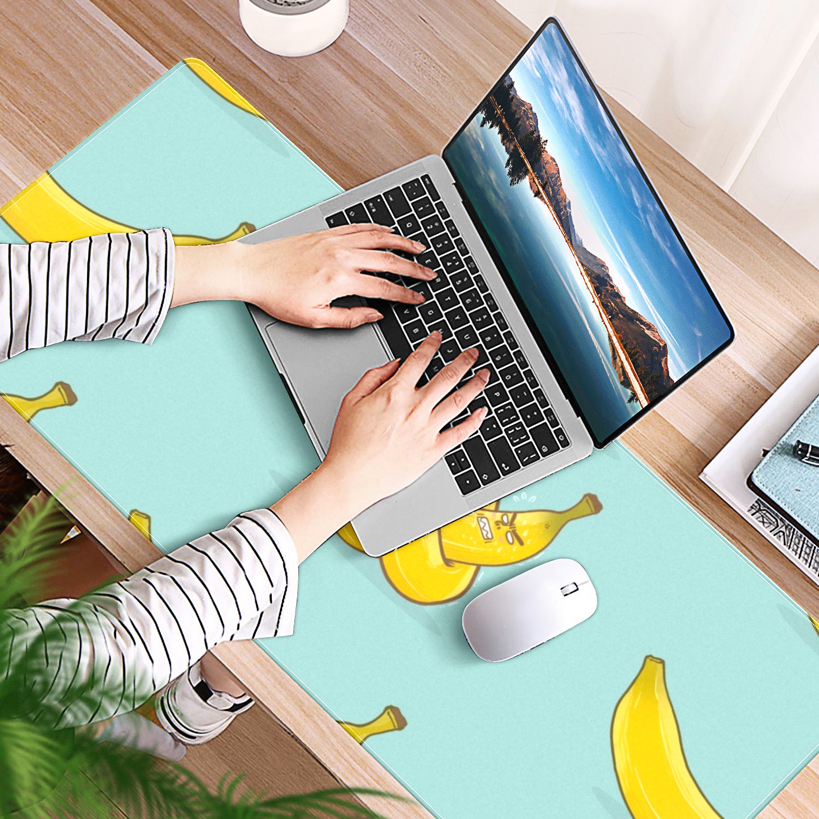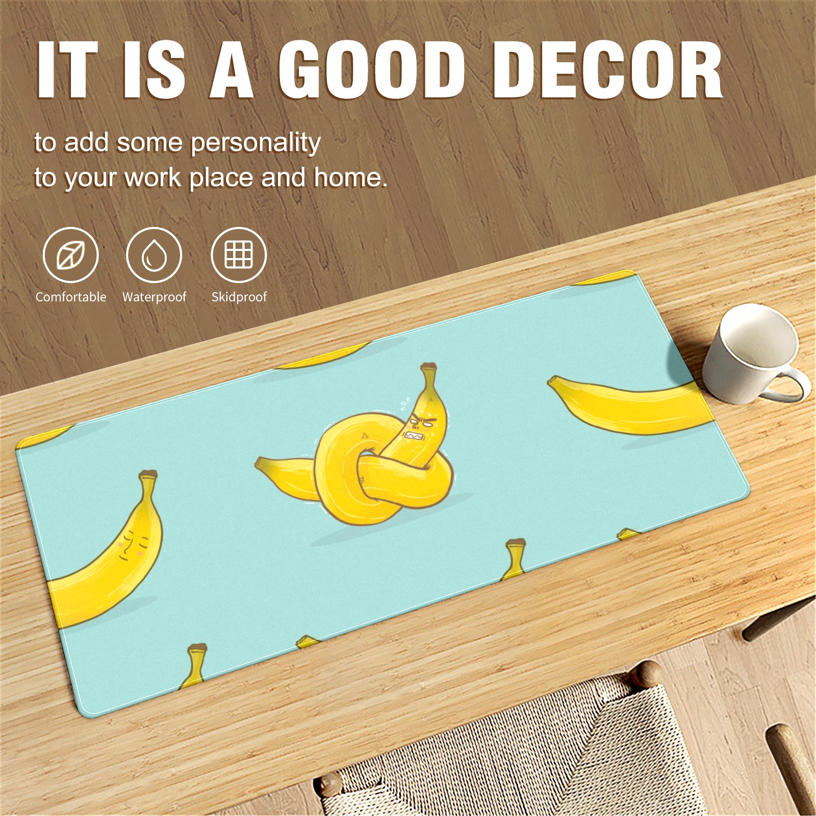Large Mouse Pad for Desktop, Cute Desk Mat Pad Protector for Work & Gaming, Aesthetic Pretty Anti-Slip Laptop Blotter Cover for Office School Home Supplies, Cartoon Fruit , 35.4inx15.7in