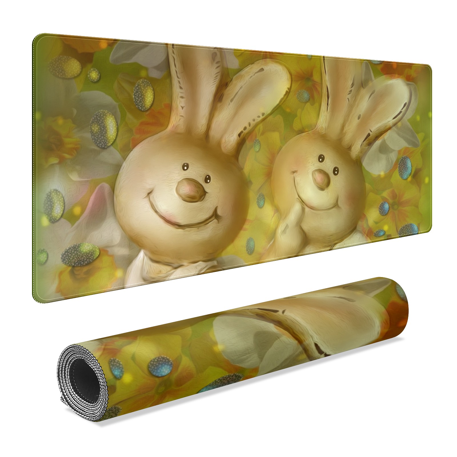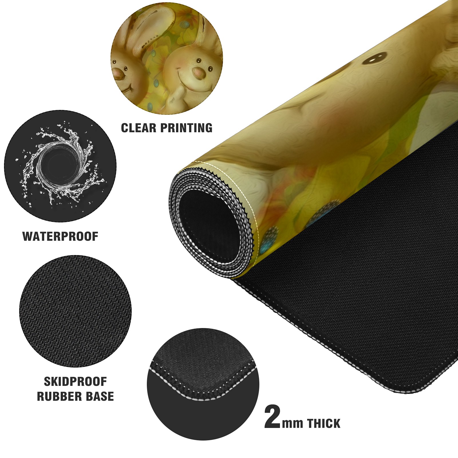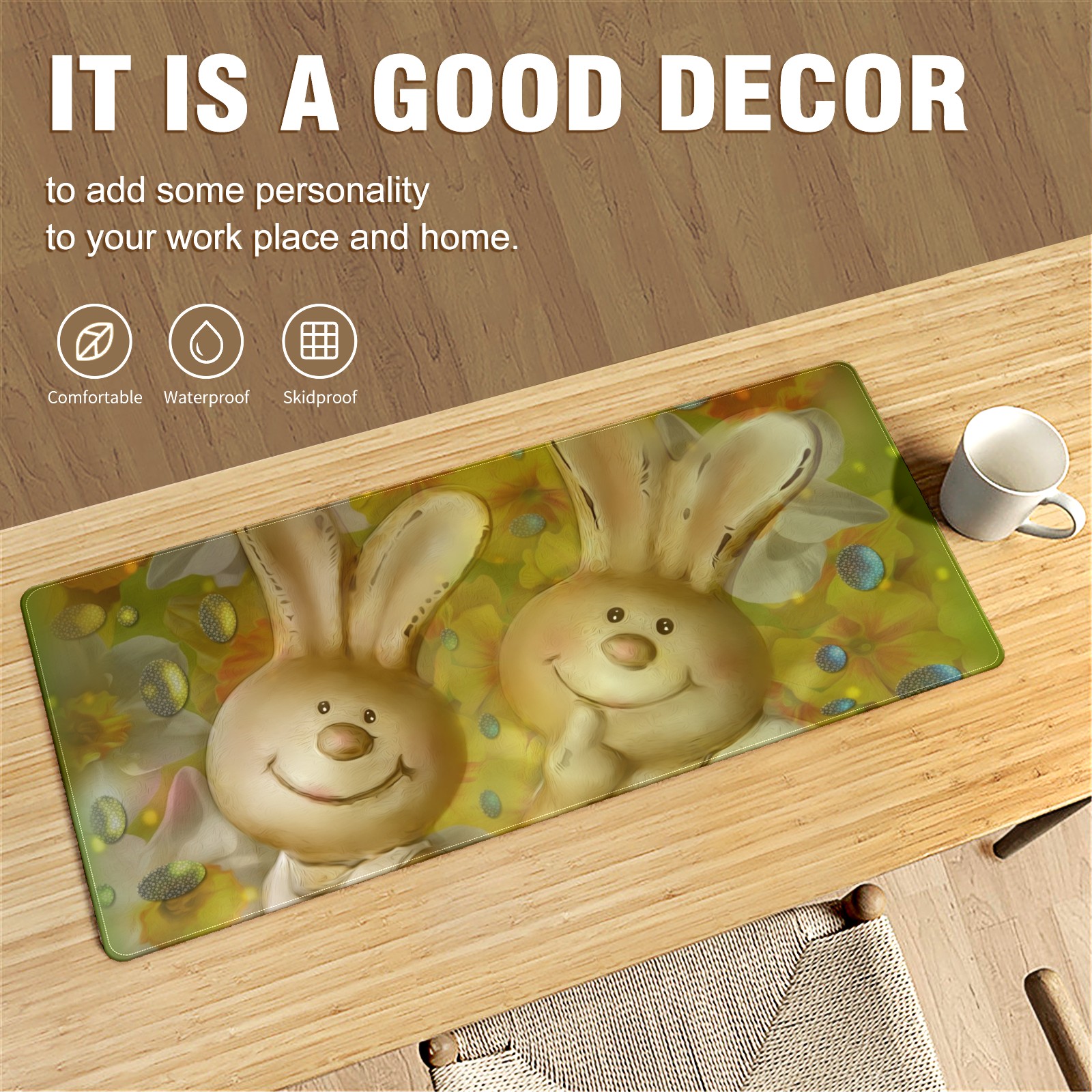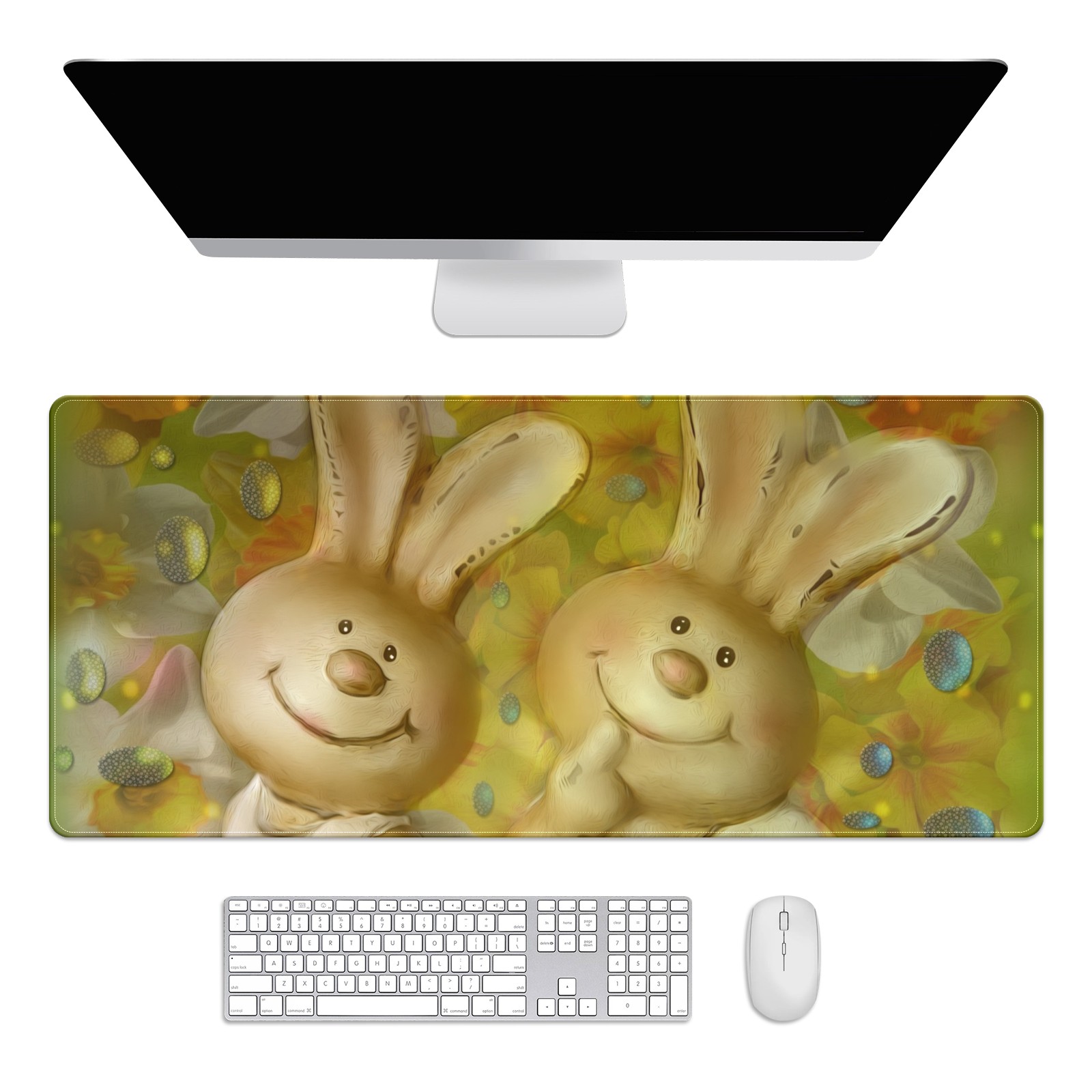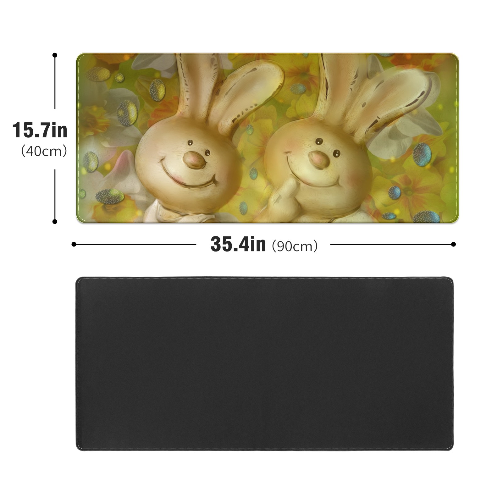 Large Mouse Pad for Desktop, Cute Desk Mat Pad Protector for Work & Gaming, Aesthetic Pretty Anti-Slip Laptop Blotter Cover for Office School Home Supplies, Easter Rabbit , 35.4inx15.7in