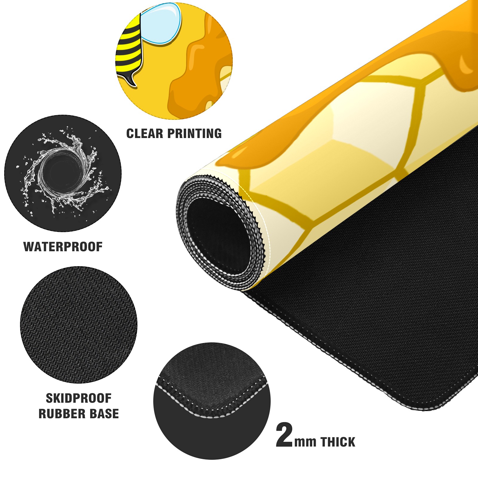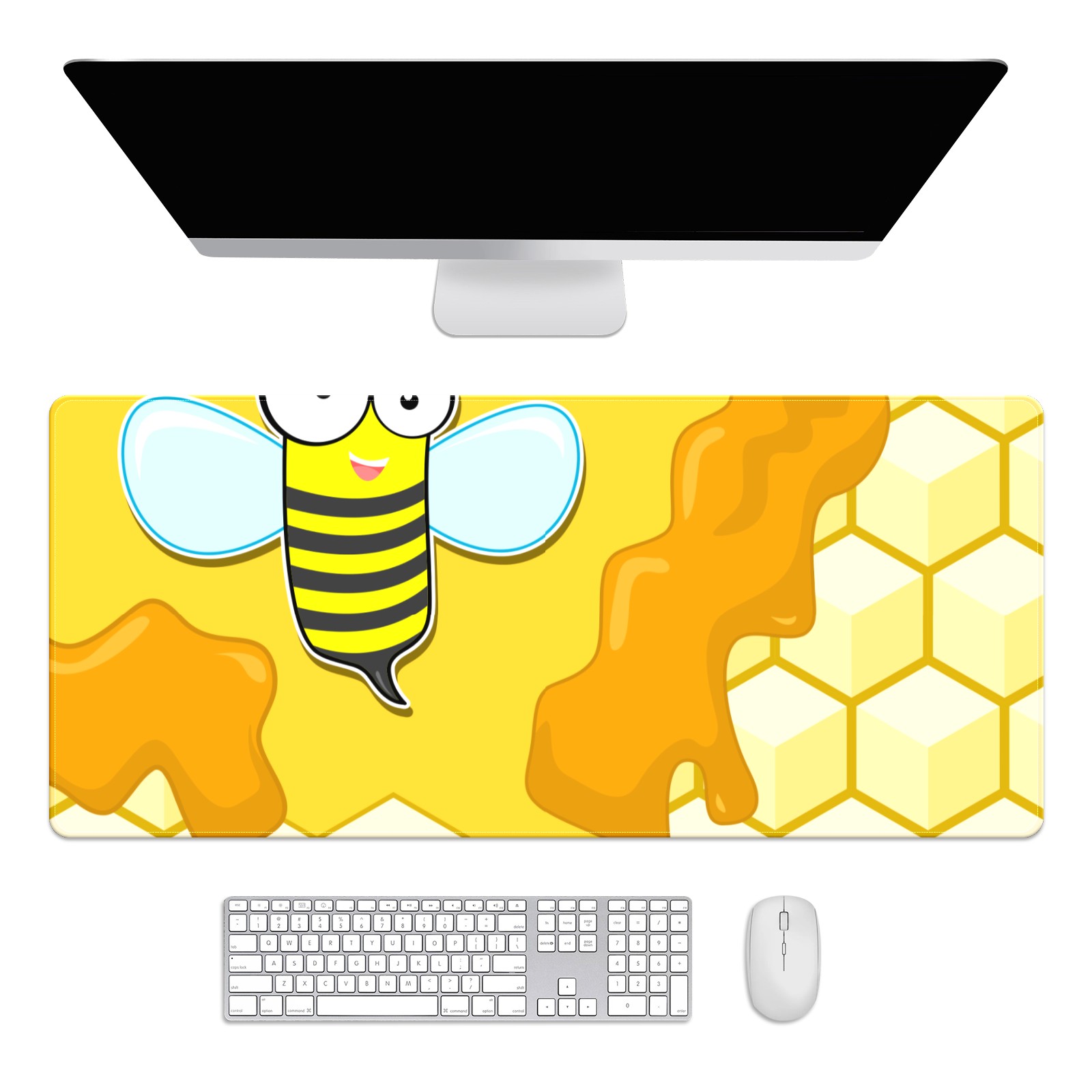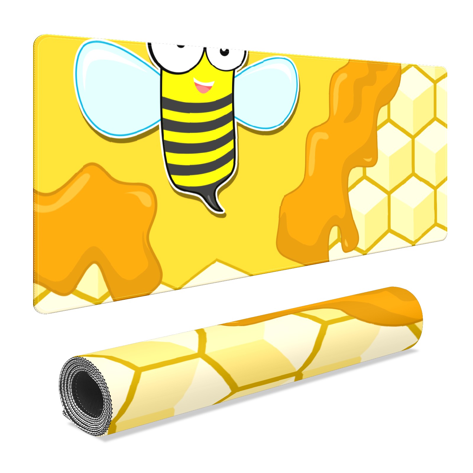Large Mouse Pad for Desktop, Cute Desk Mat Pad Protector for Work & Gaming, Aesthetic Pretty Anti-Slip Laptop Blotter Cover for Office School Home Supplies, Bee Honeycomb , 35.4inx15.7in