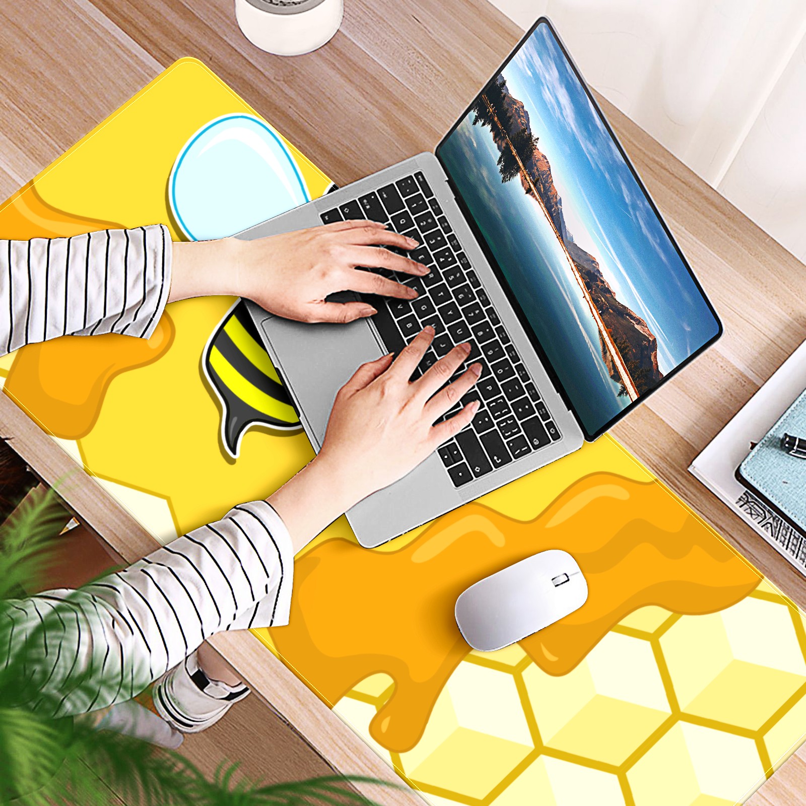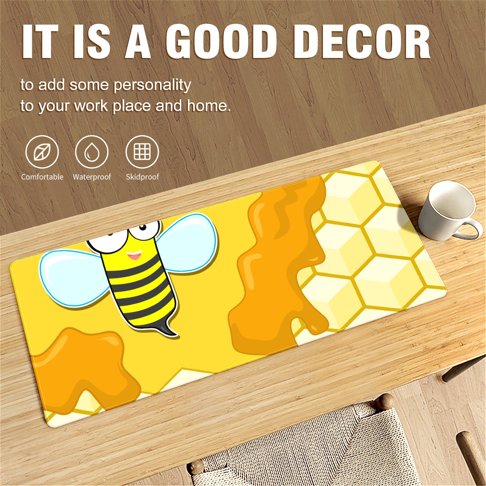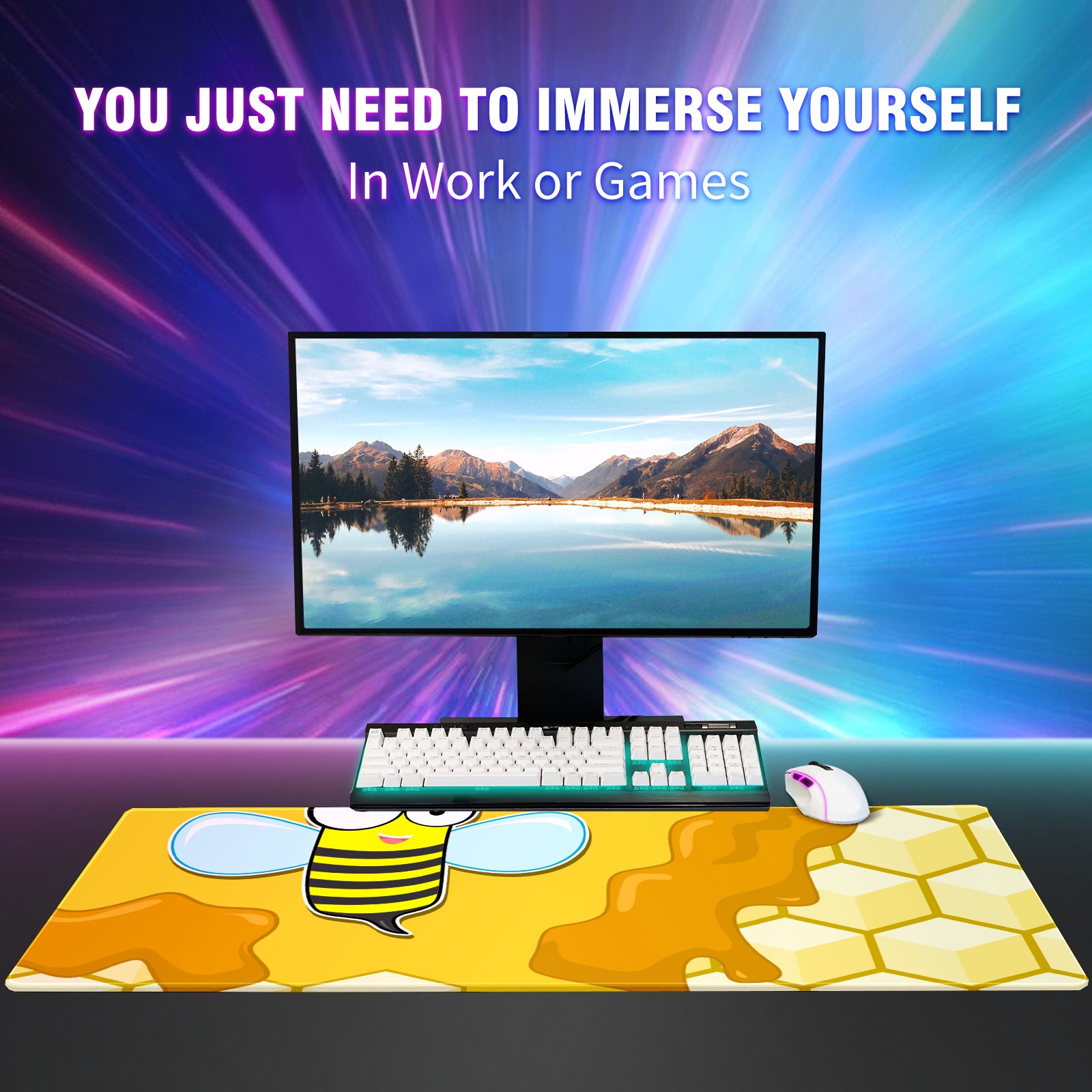 Large Mouse Pad for Desktop, Cute Desk Mat Pad Protector for Work & Gaming, Aesthetic Pretty Anti-Slip Laptop Blotter Cover for Office School Home Supplies, Bee Honeycomb , 35.4inx15.7in