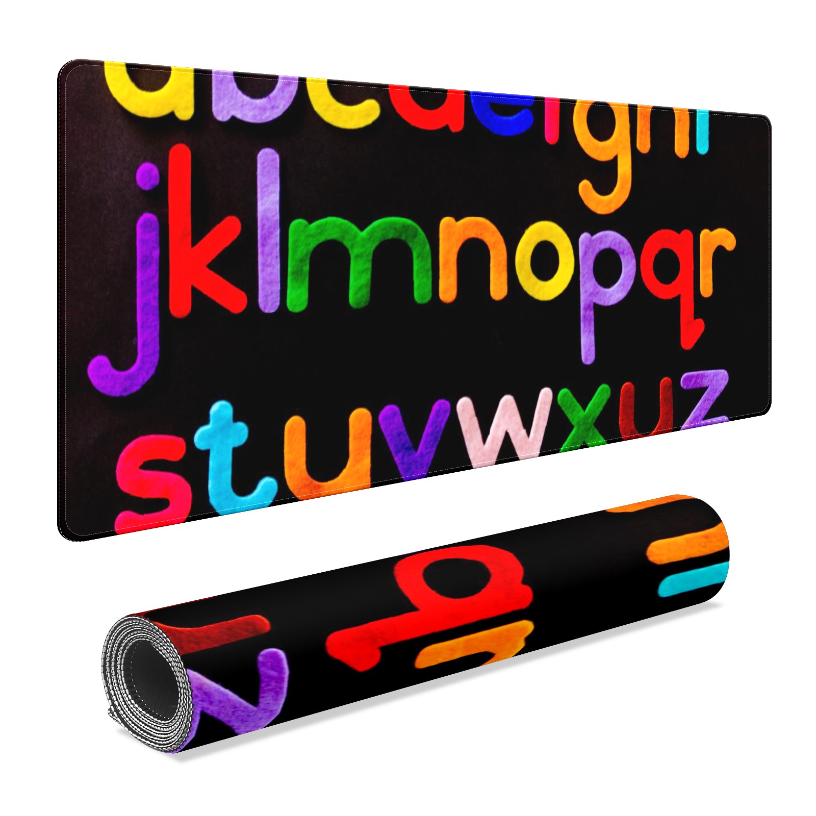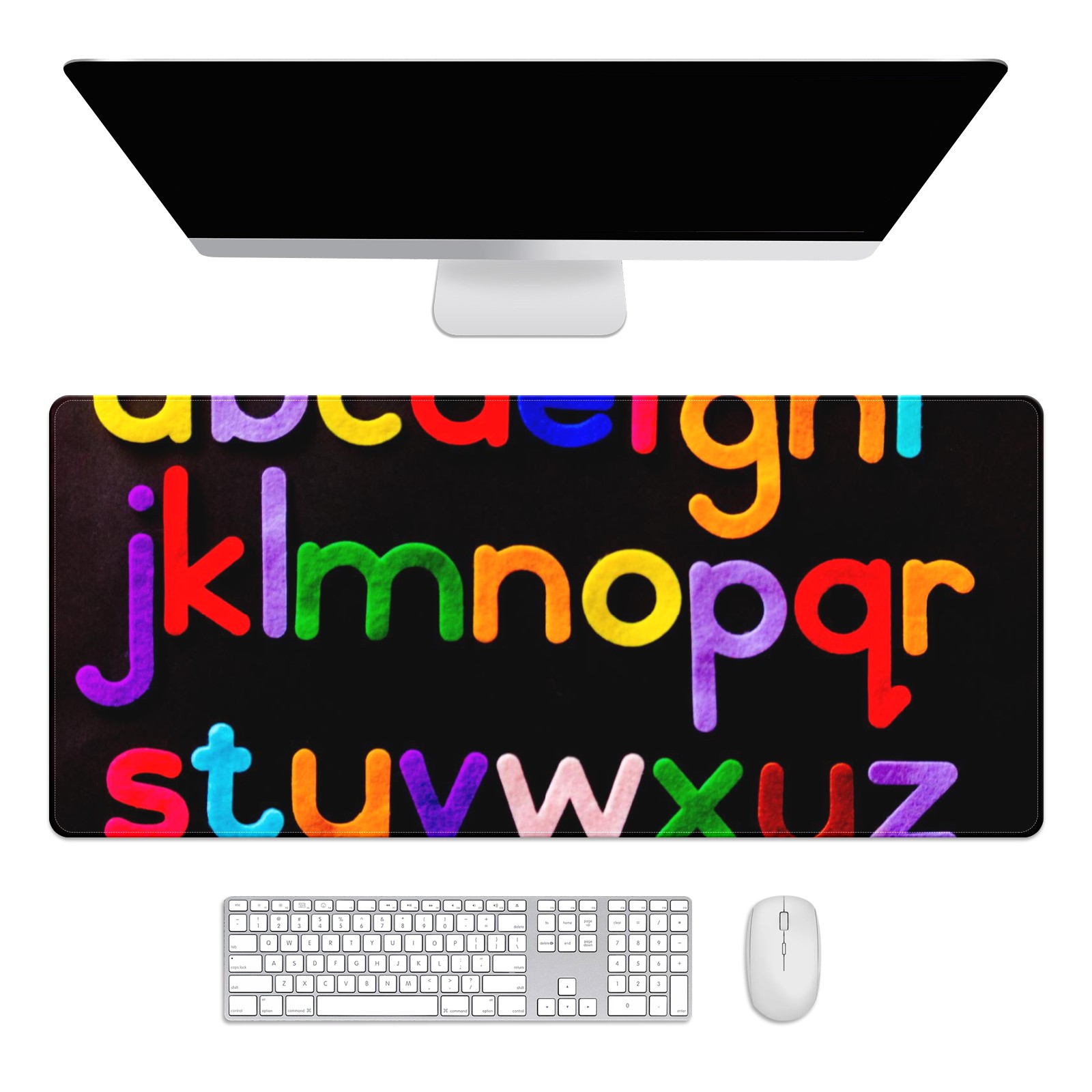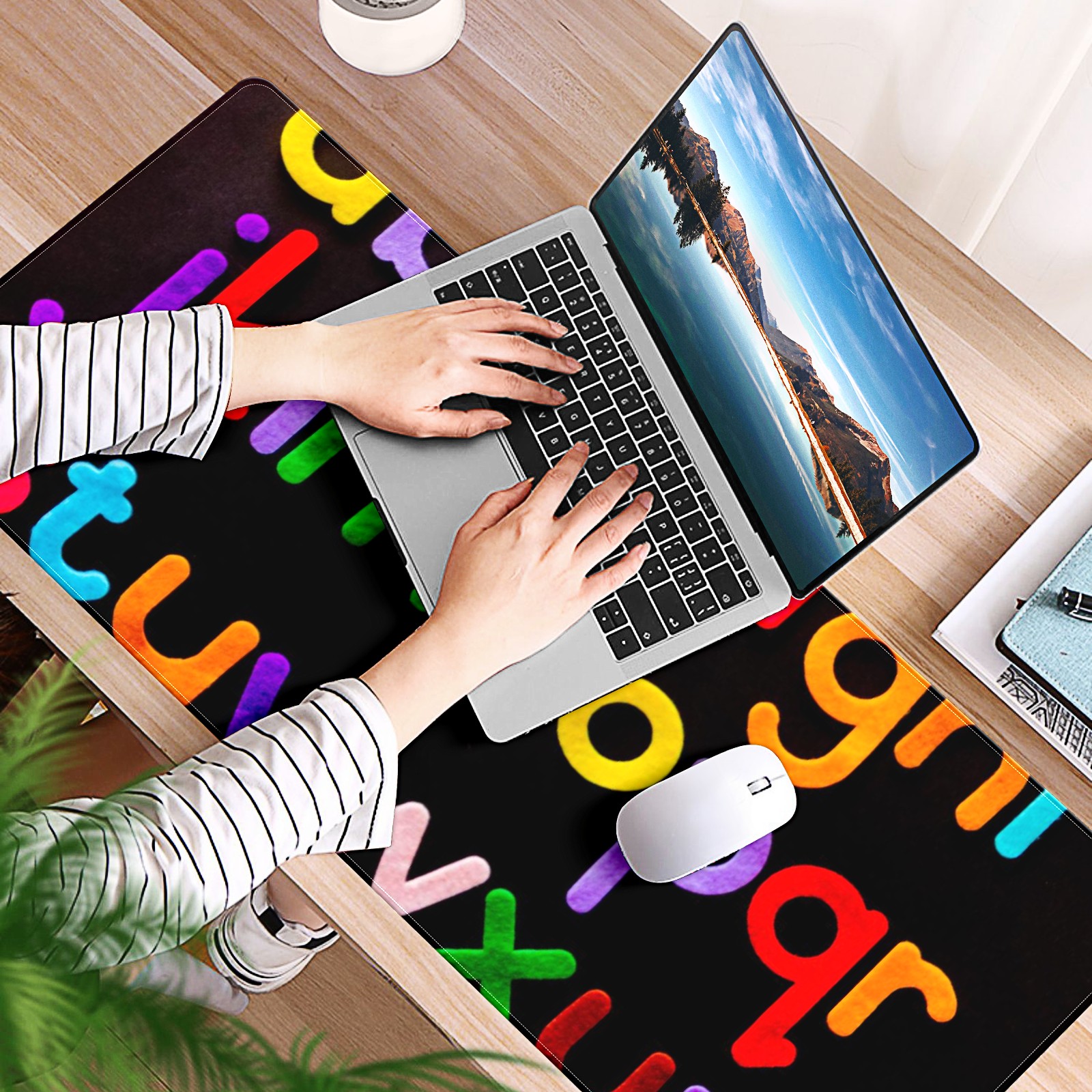 Large Mouse Pad for Desktop, Cute Desk Mat Pad Protector for Work & Gaming, Aesthetic Pretty Anti-Slip Laptop Blotter Cover for Office School Home Supplies, Alphabet Letter , 35.4inx15.7in