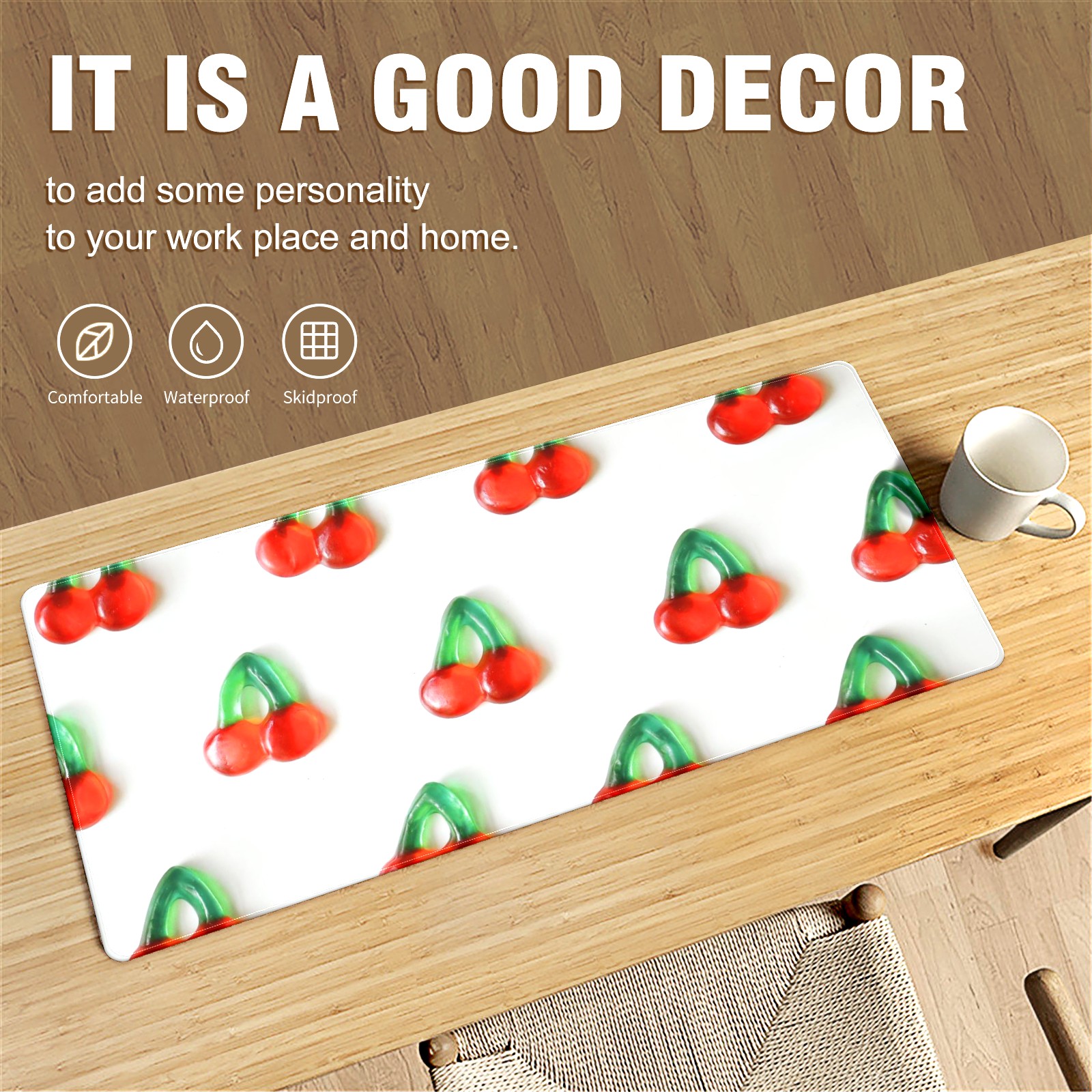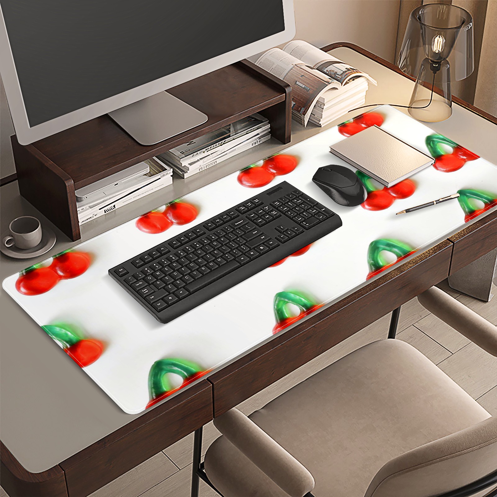 Large Mouse Pad for Desktop, Cute Desk Mat Pad Protector for Work & Gaming, Aesthetic Pretty Anti-Slip Laptop Blotter Cover for Office School Home Supplies, Assorted Cherry , 35.4inx15.7in