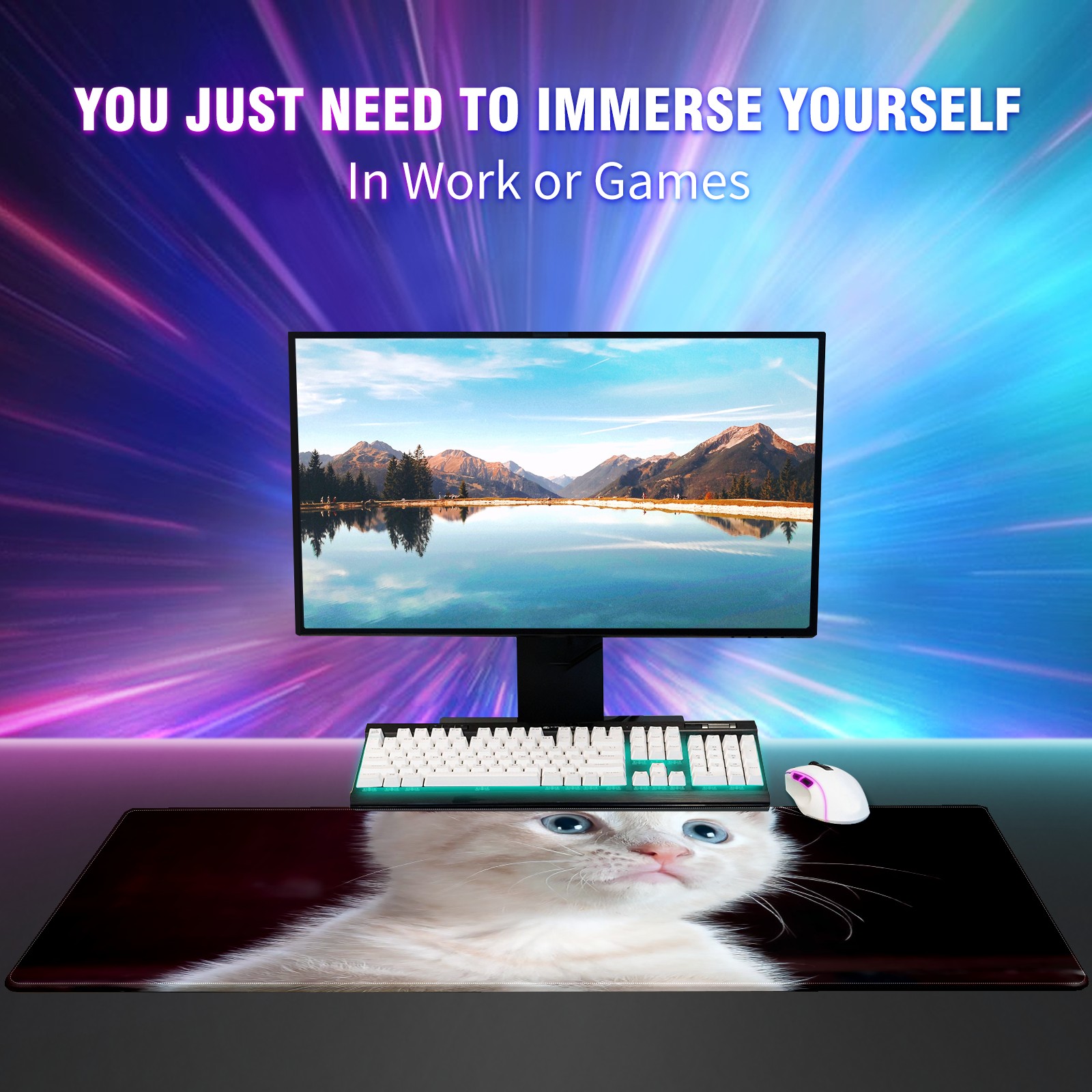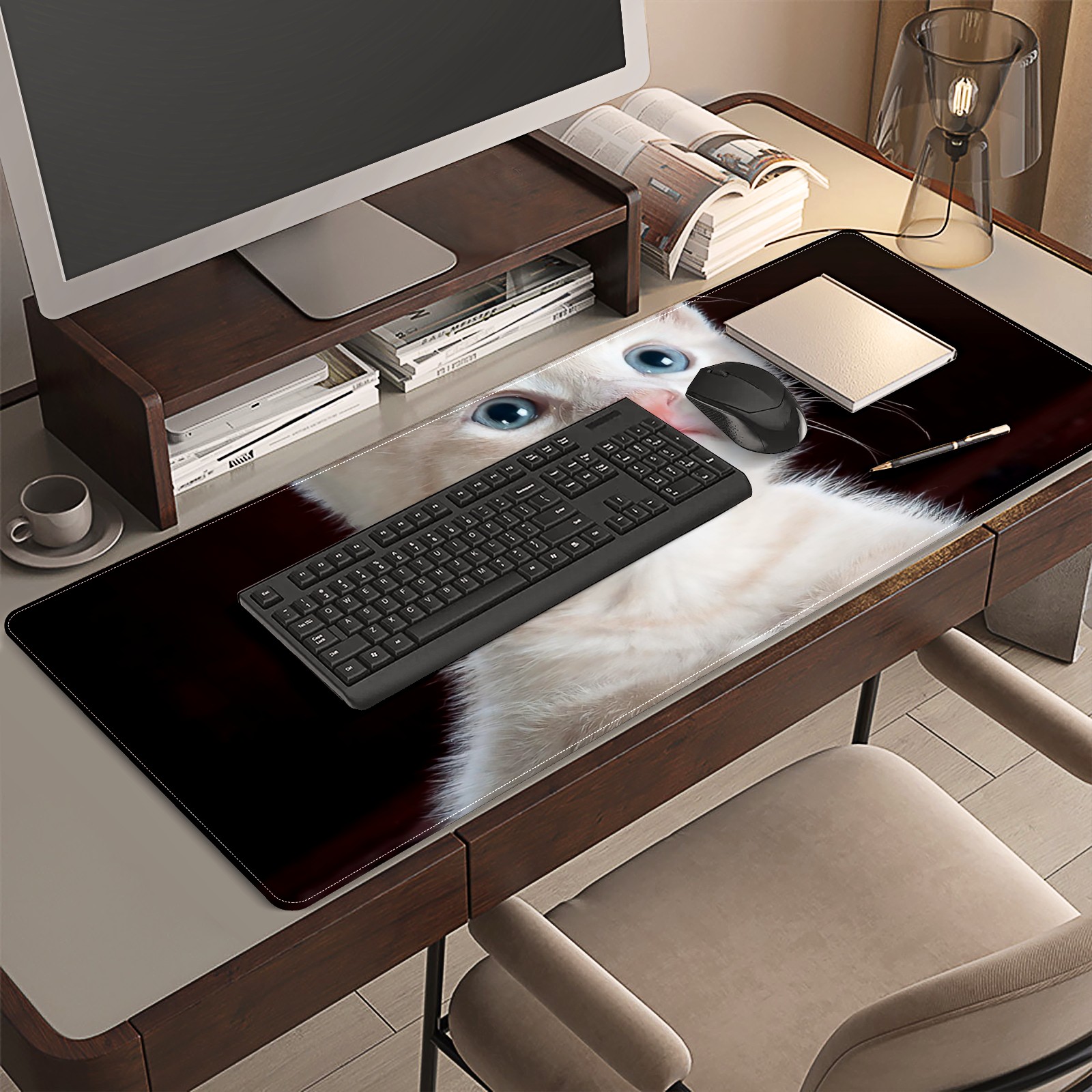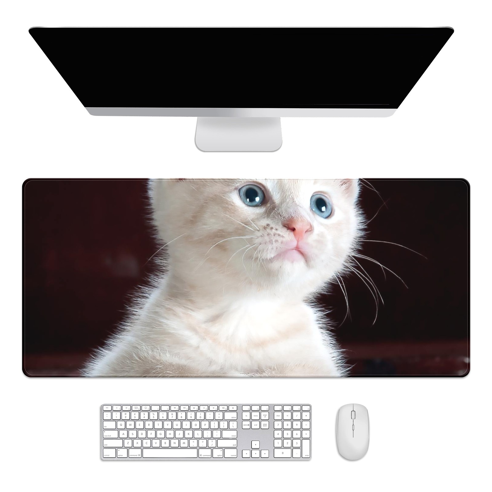Large Mouse Pad for Desktop, Cute Desk Mat Pad Protector for Work & Gaming, Aesthetic Pretty Anti-Slip Laptop Blotter Cover for Office School Home Supplies, Cute Kitten , 35.4inx15.7in