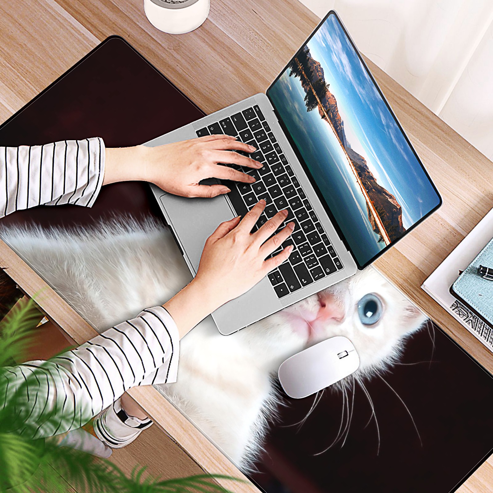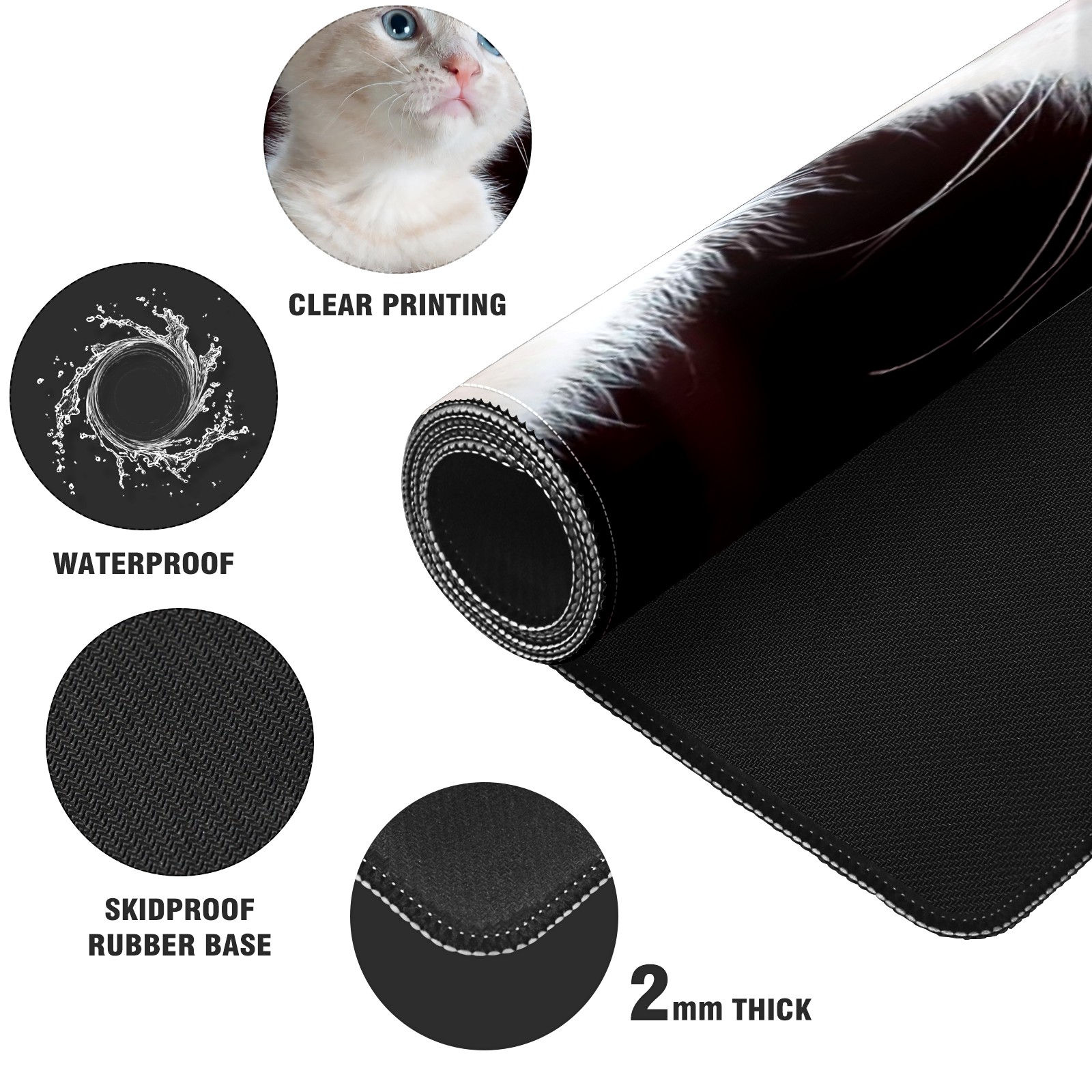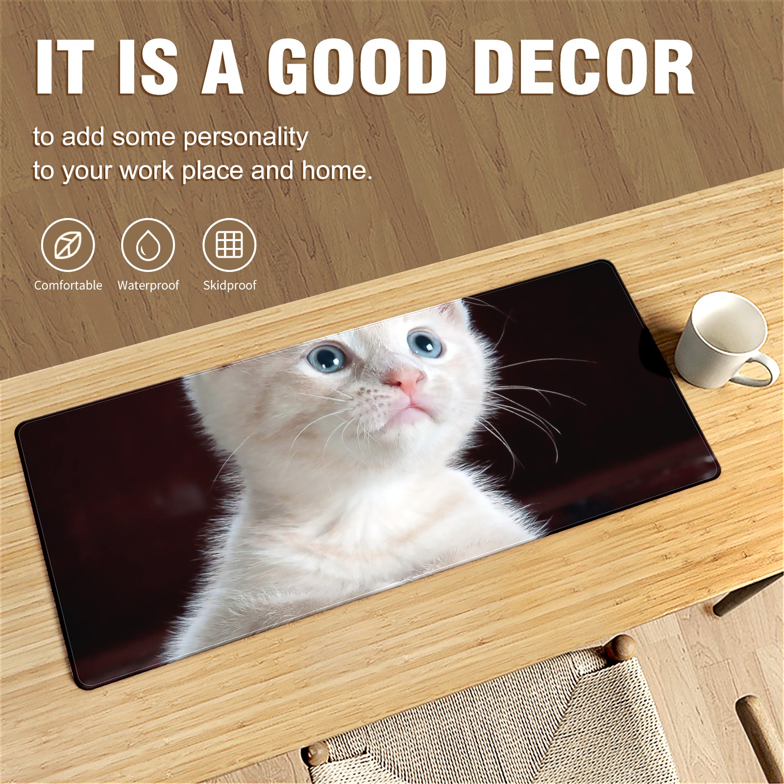 Large Mouse Pad for Desktop, Cute Desk Mat Pad Protector for Work & Gaming, Aesthetic Pretty Anti-Slip Laptop Blotter Cover for Office School Home Supplies, Cute Kitten , 35.4inx15.7in